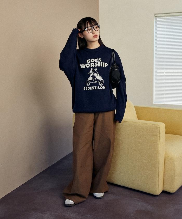 俏皮的針織衫,獨特的法國鬥牛犬背部提花設計。
