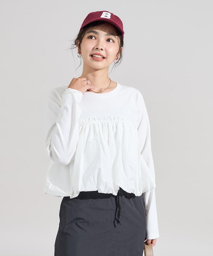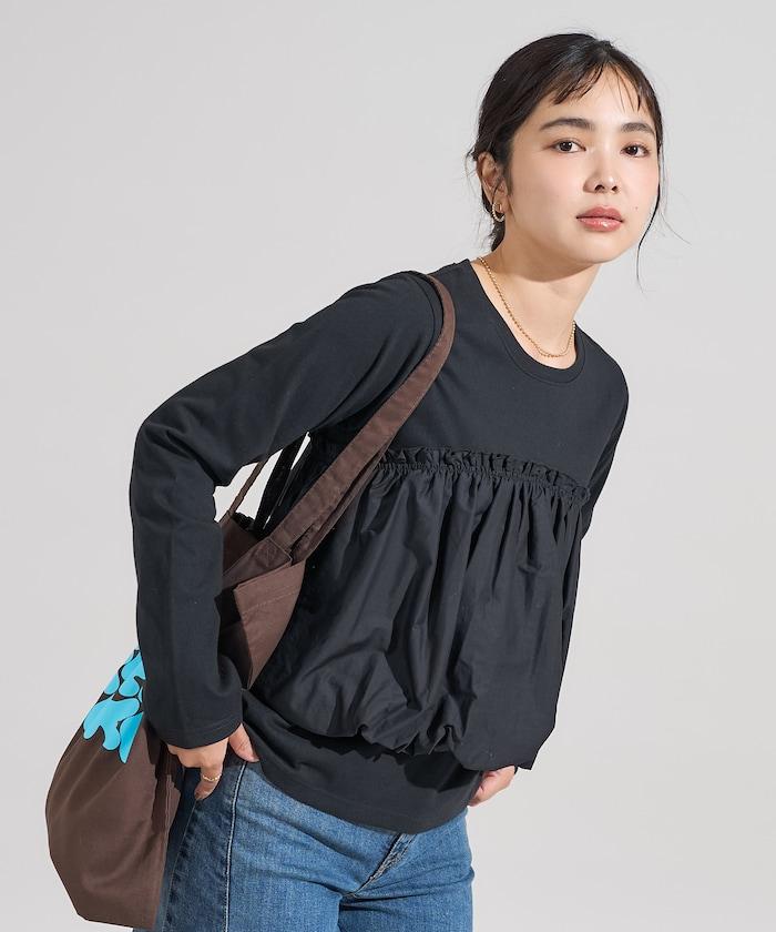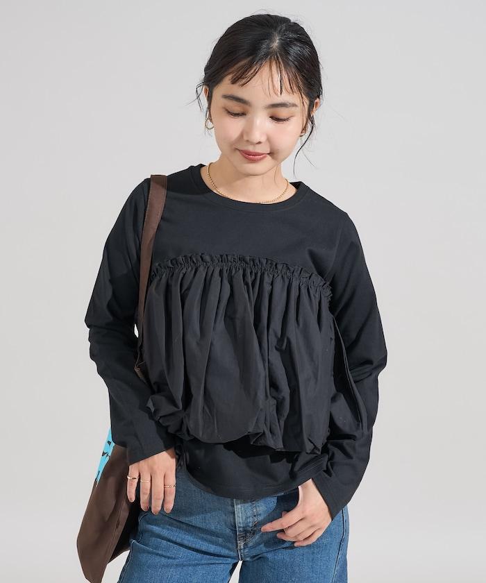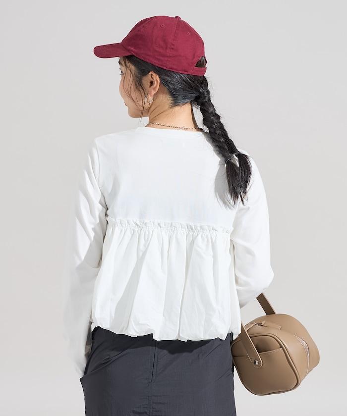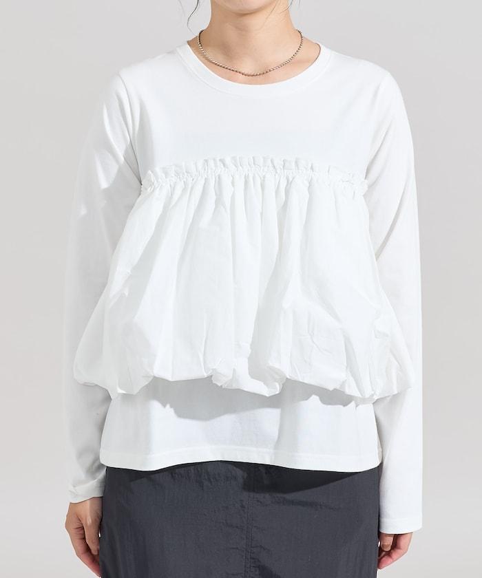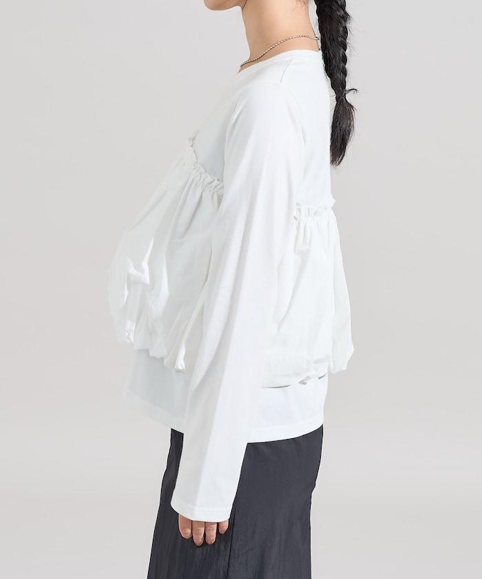 泡泡袖束身上衣風拼接長袖T恤