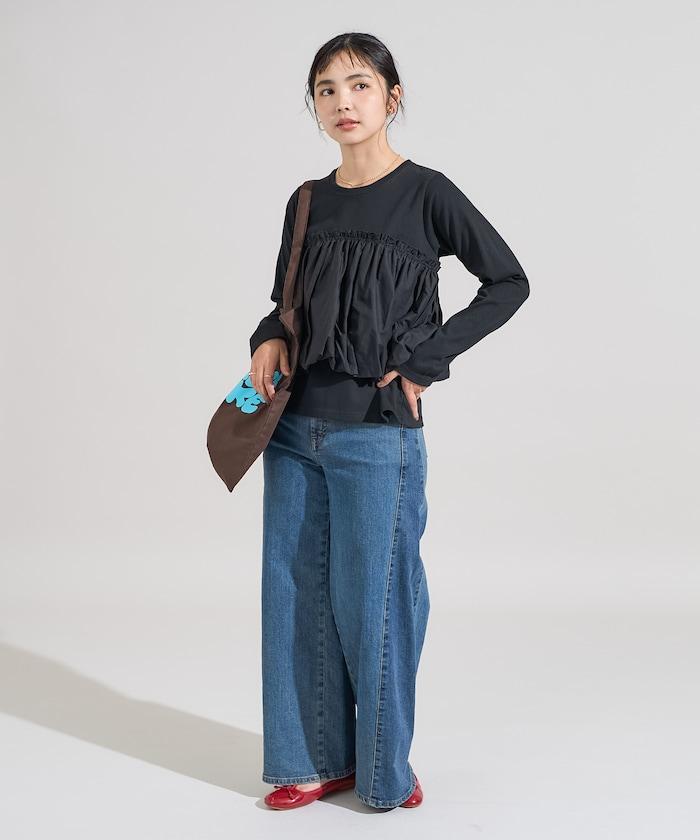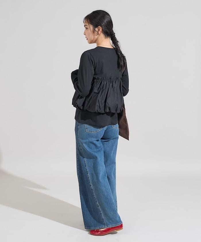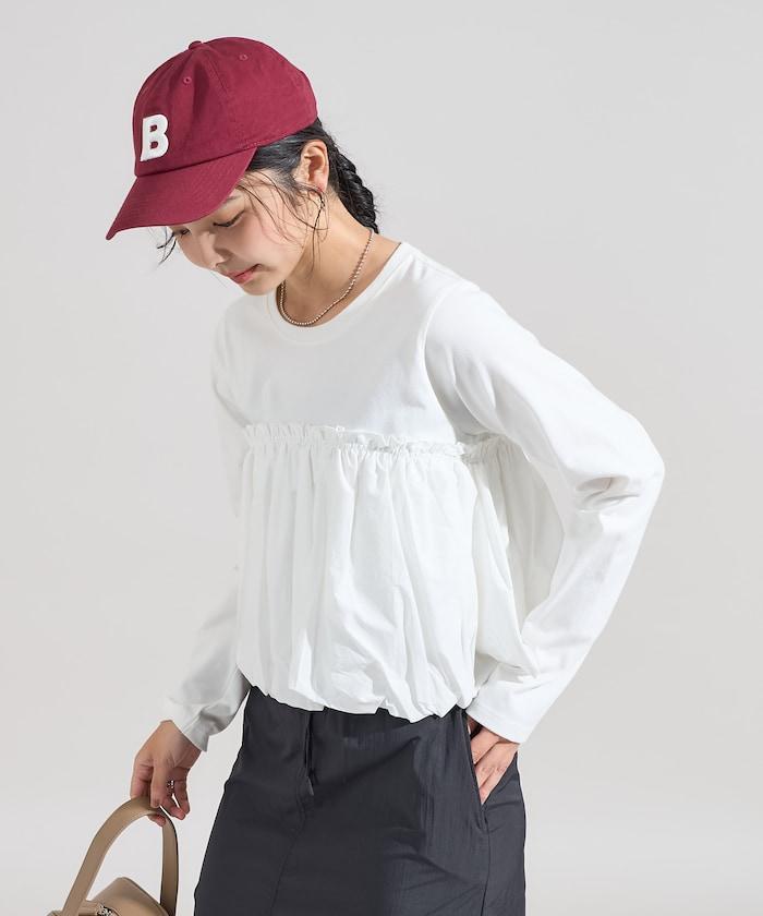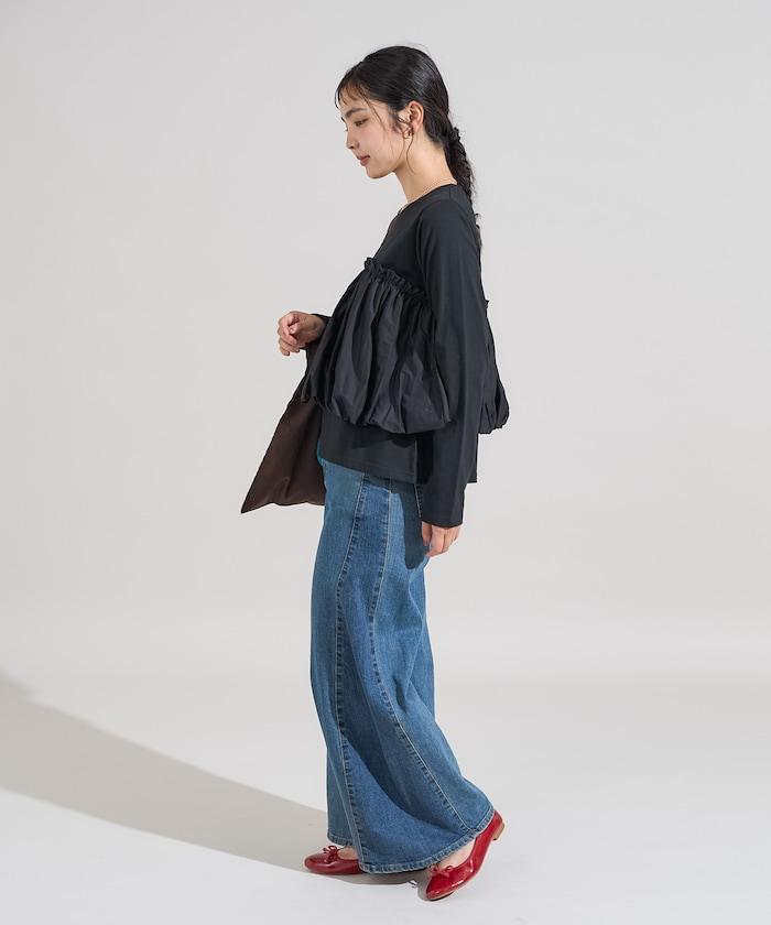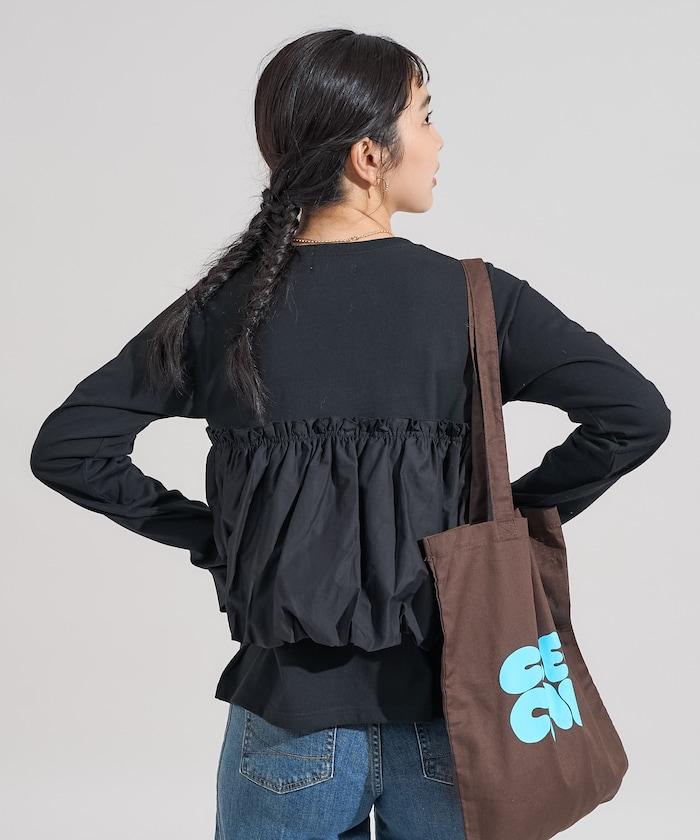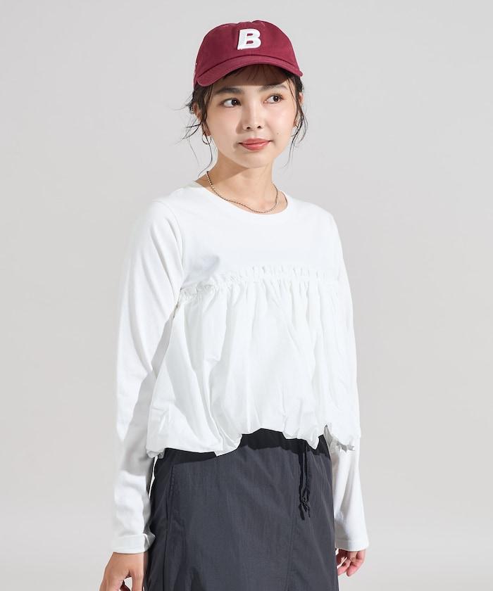 泡泡袖束身上衣風拼接長袖T恤