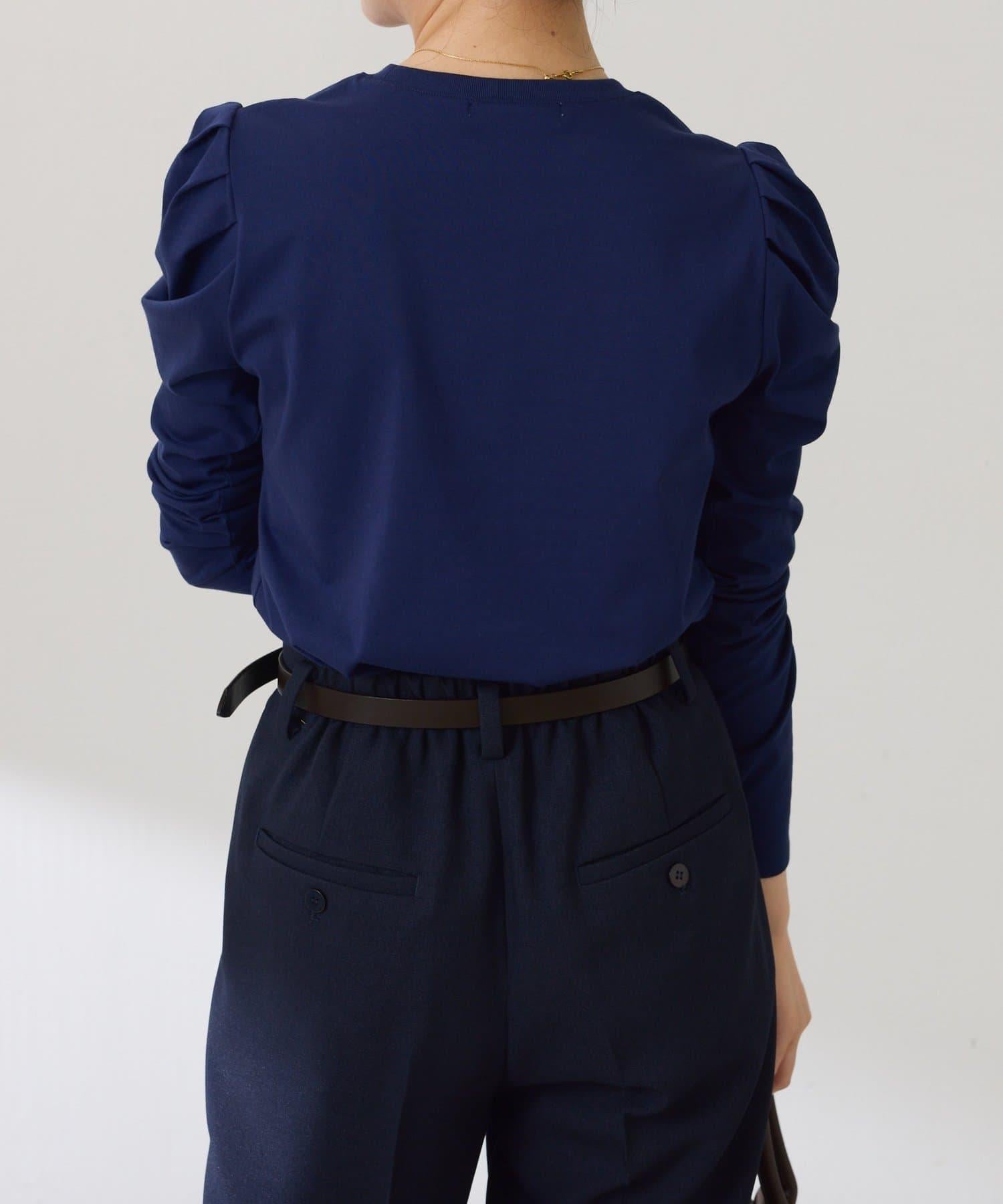 這款剪裁縫製的上衣肩部蓬鬆,體積適中。