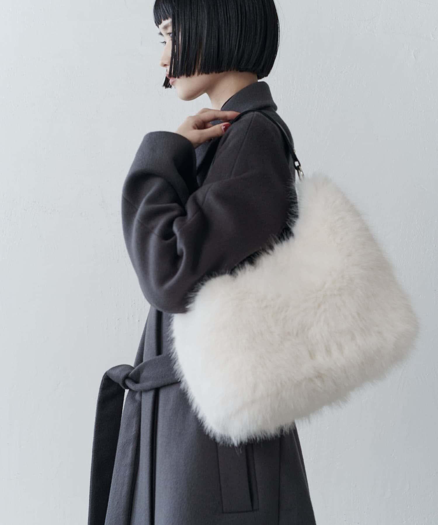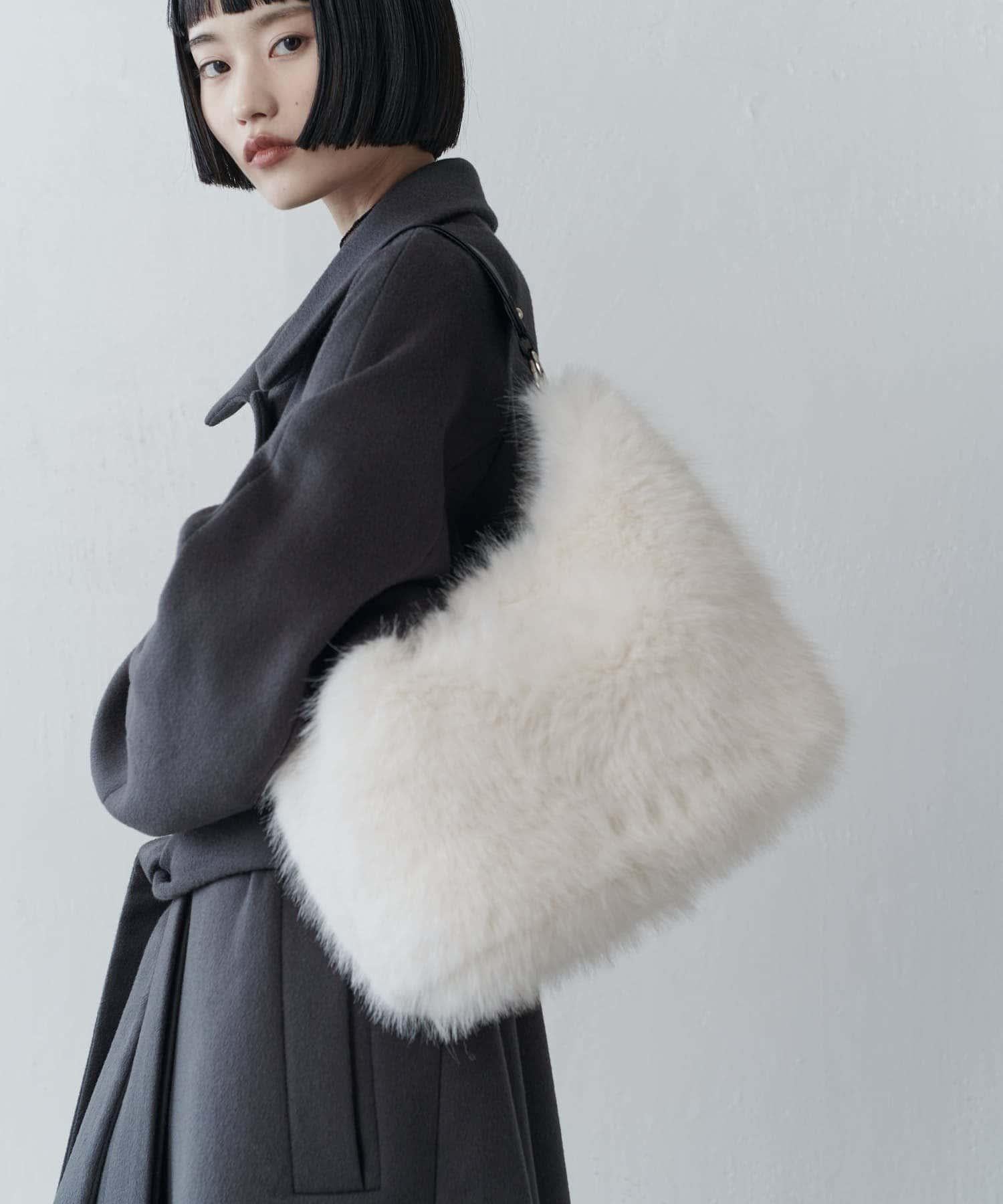蓬鬆的絨毛只需拿在手裡就能增添女性元素,合成革手柄也很可愛!