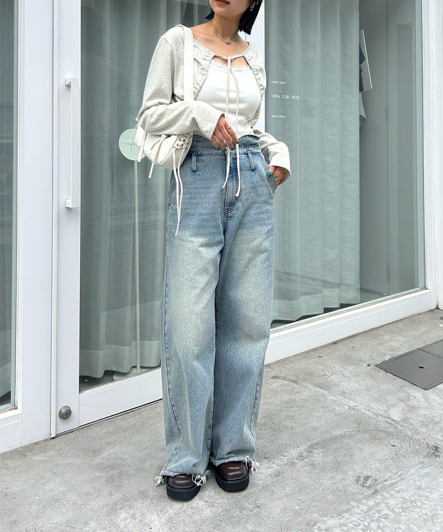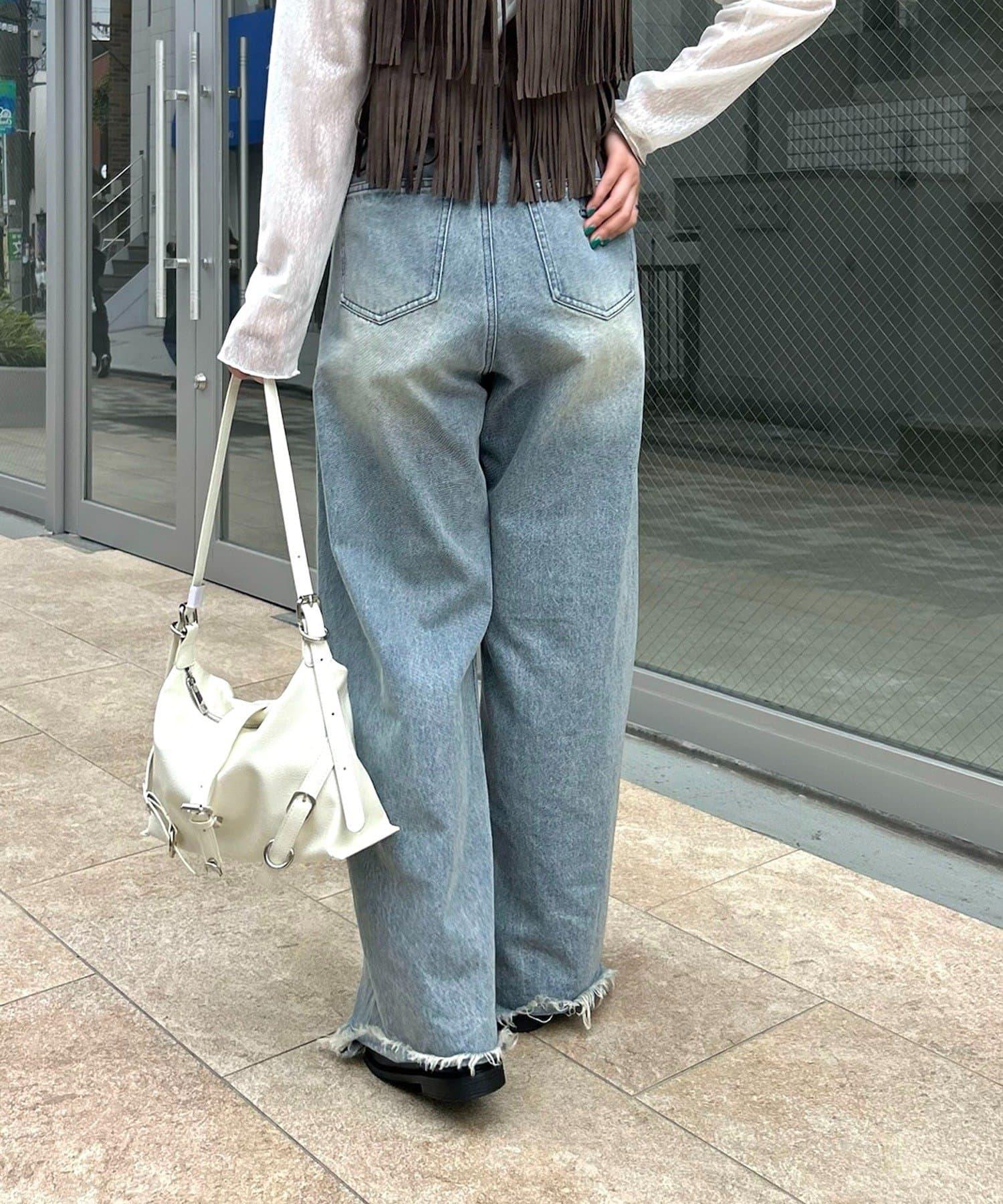 波浪形的部分很時尚,這樣的設計讓你即使搭配簡單的上衣也能穿出牛仔風。