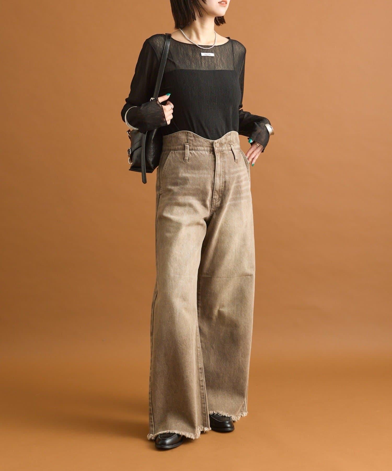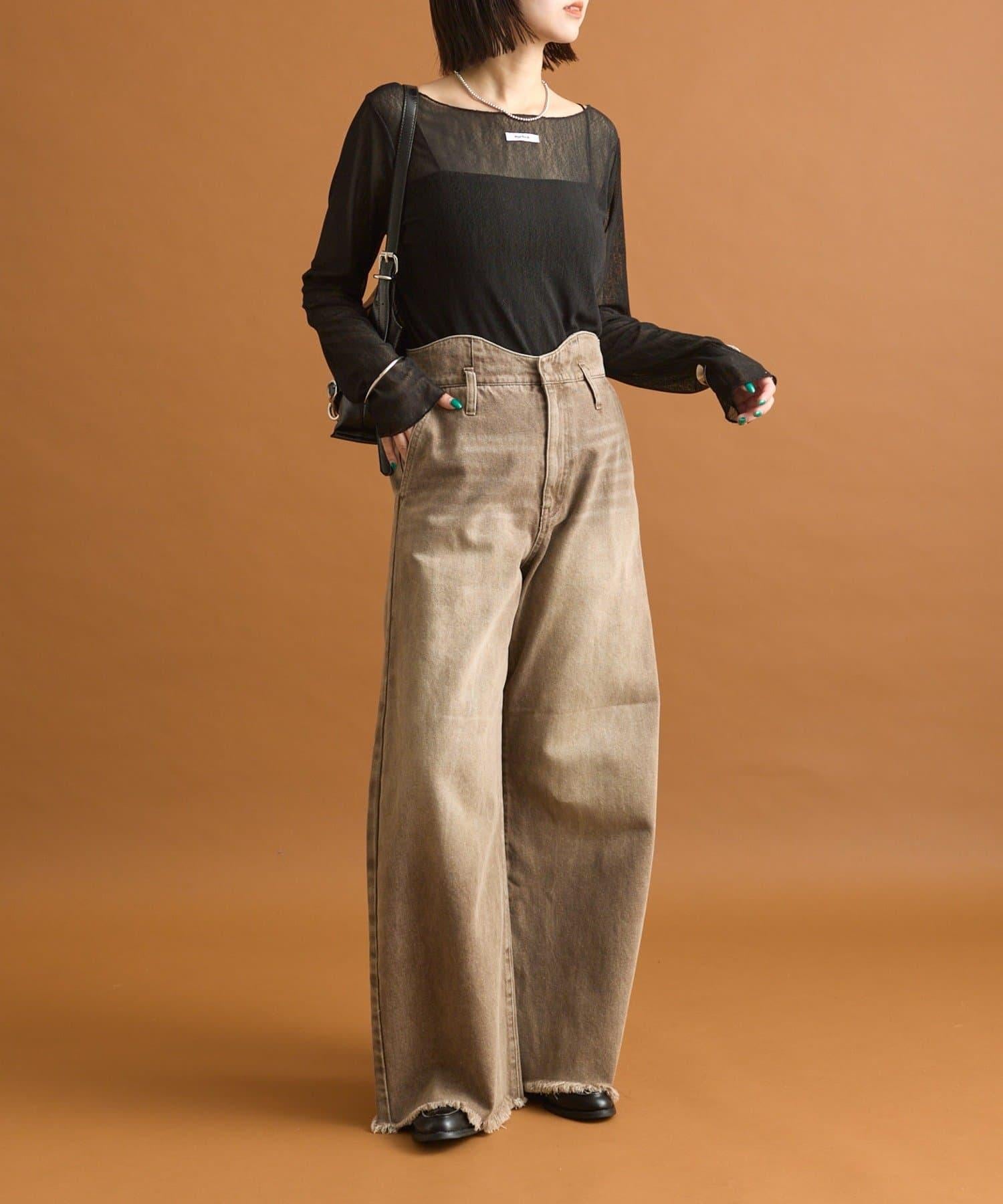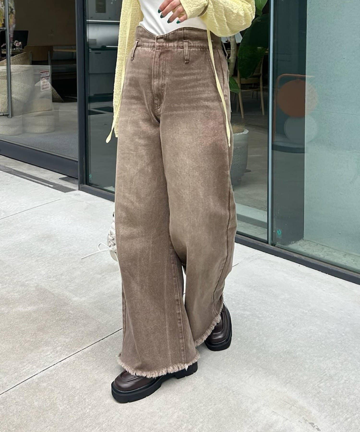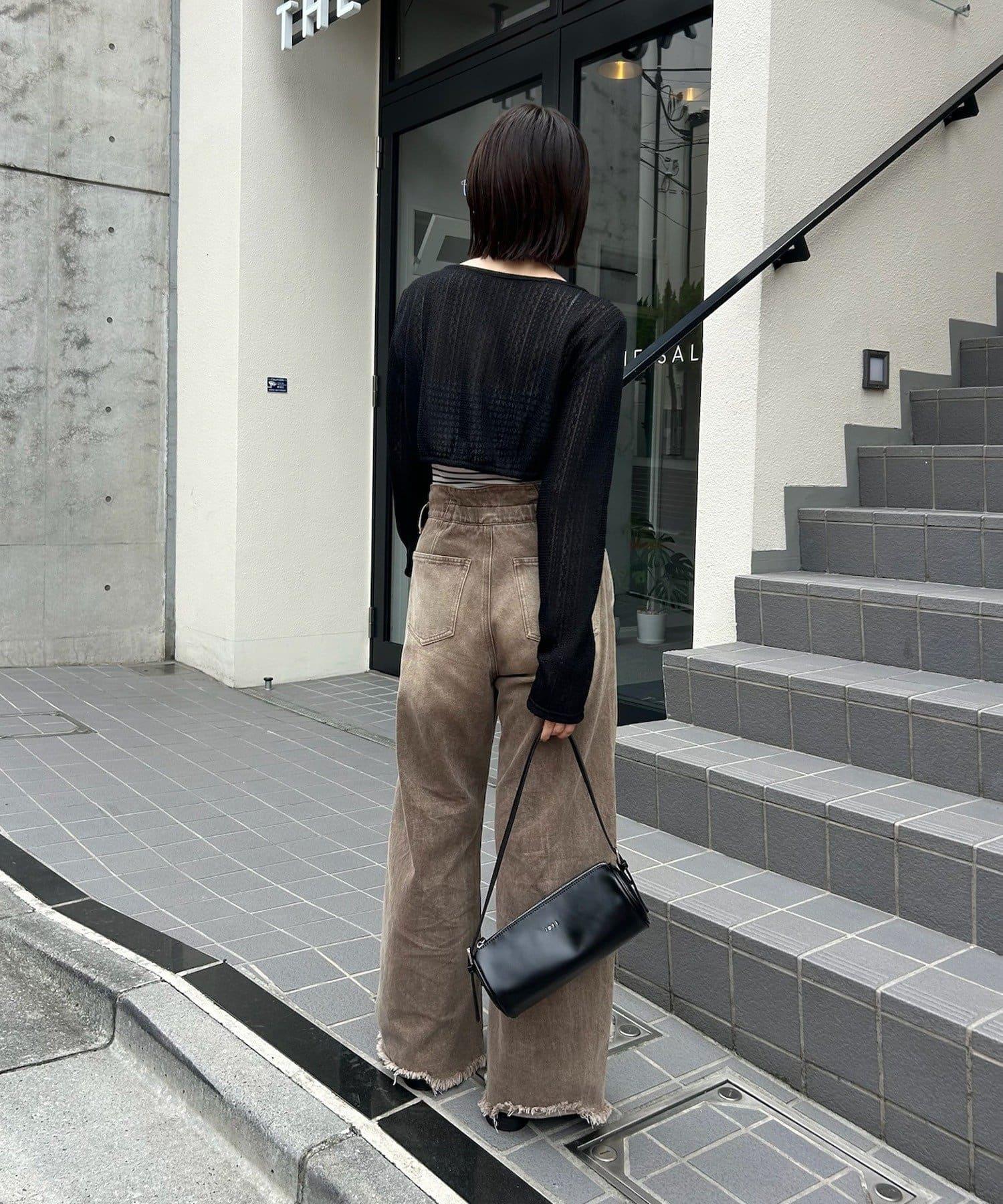 高腰設計讓雙腿看起來更修長,將骨架直筒的風格發揮得淋漓盡致。