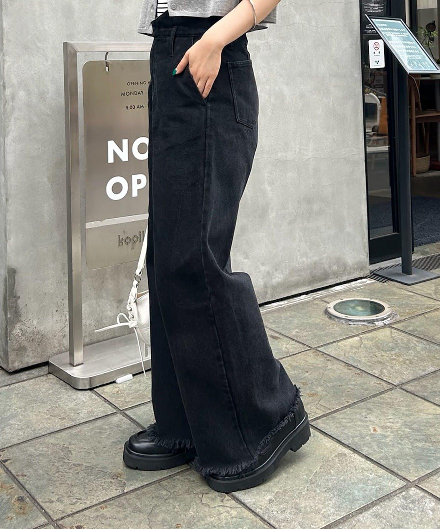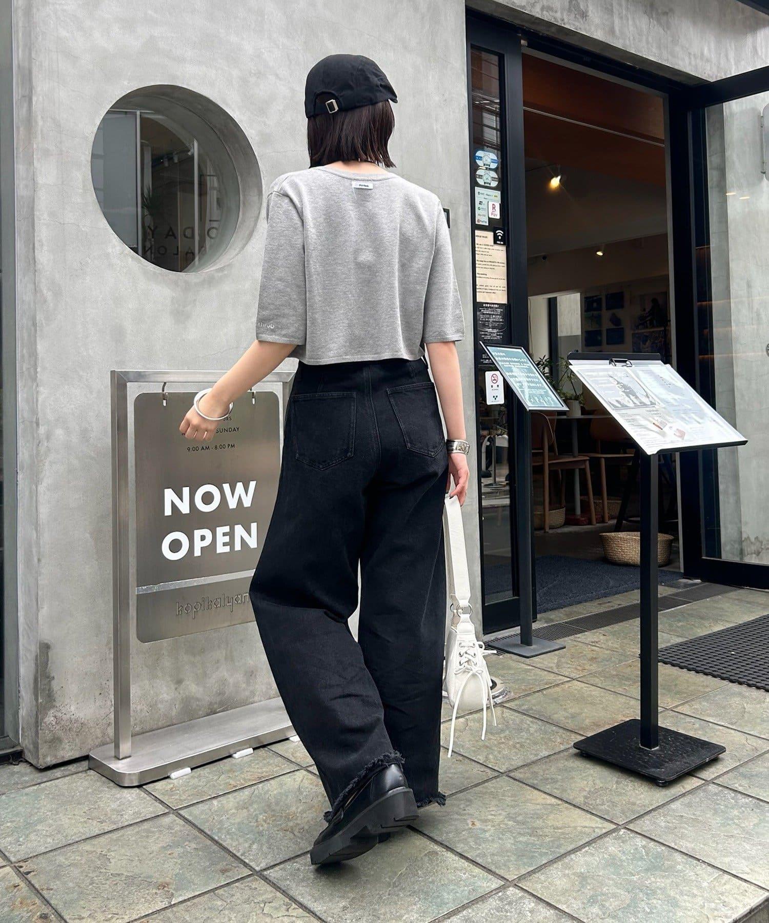 下襬採用剪裁,適度的寬鬆感和高腰設計不會挑起腿部線條、