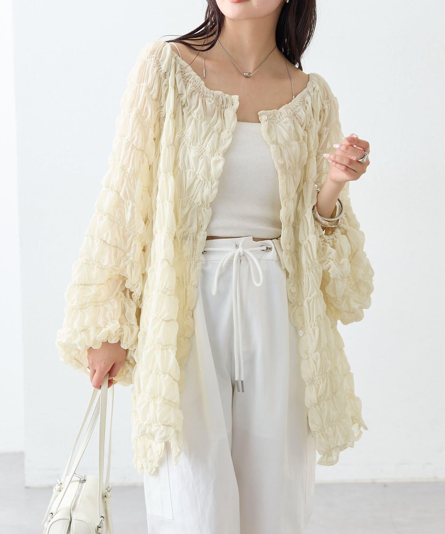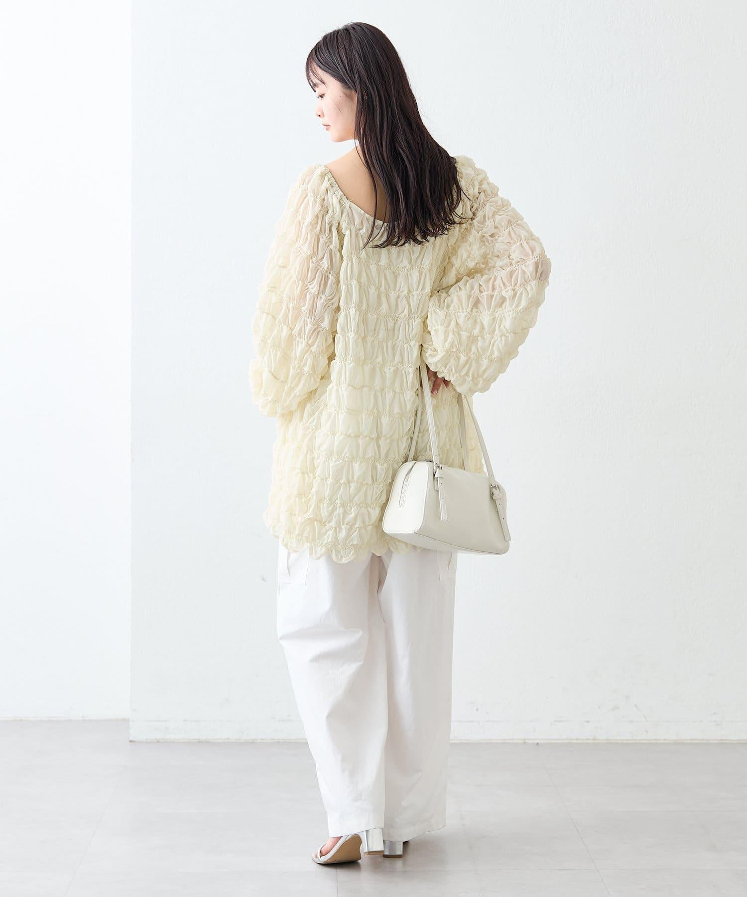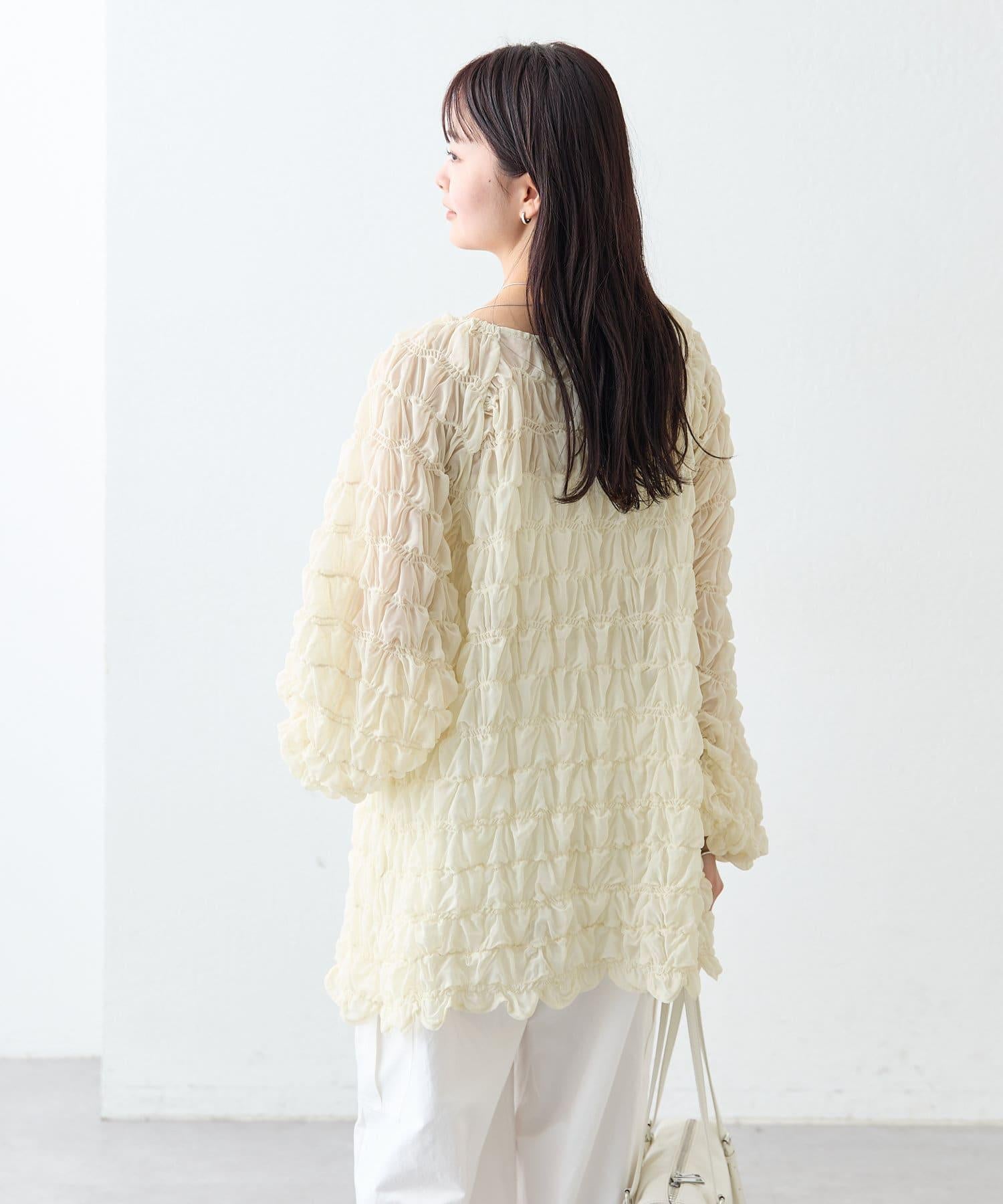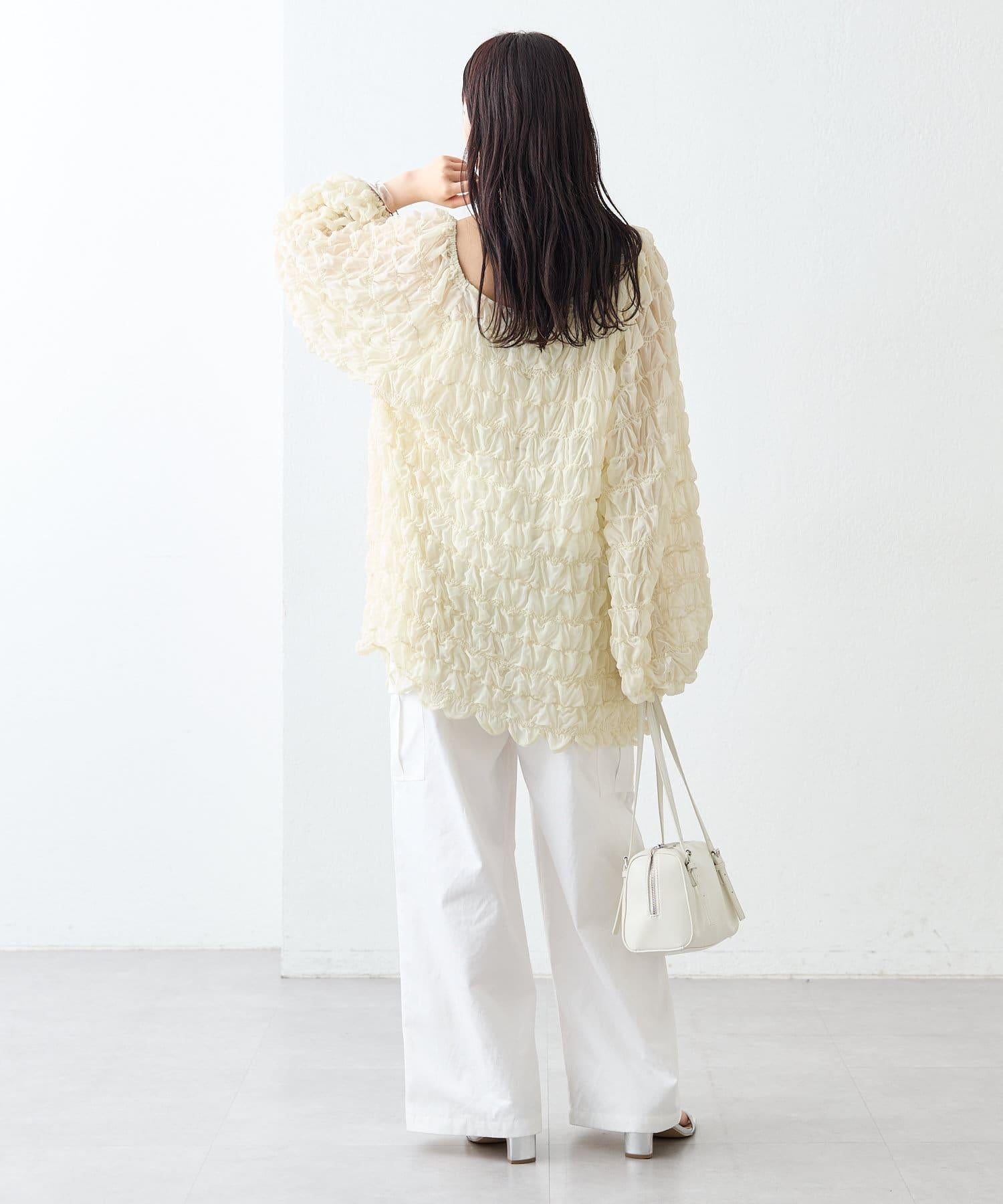 這款上衣的輪廓寬鬆,但薄紗材質給人一種可愛、寬鬆的感覺。