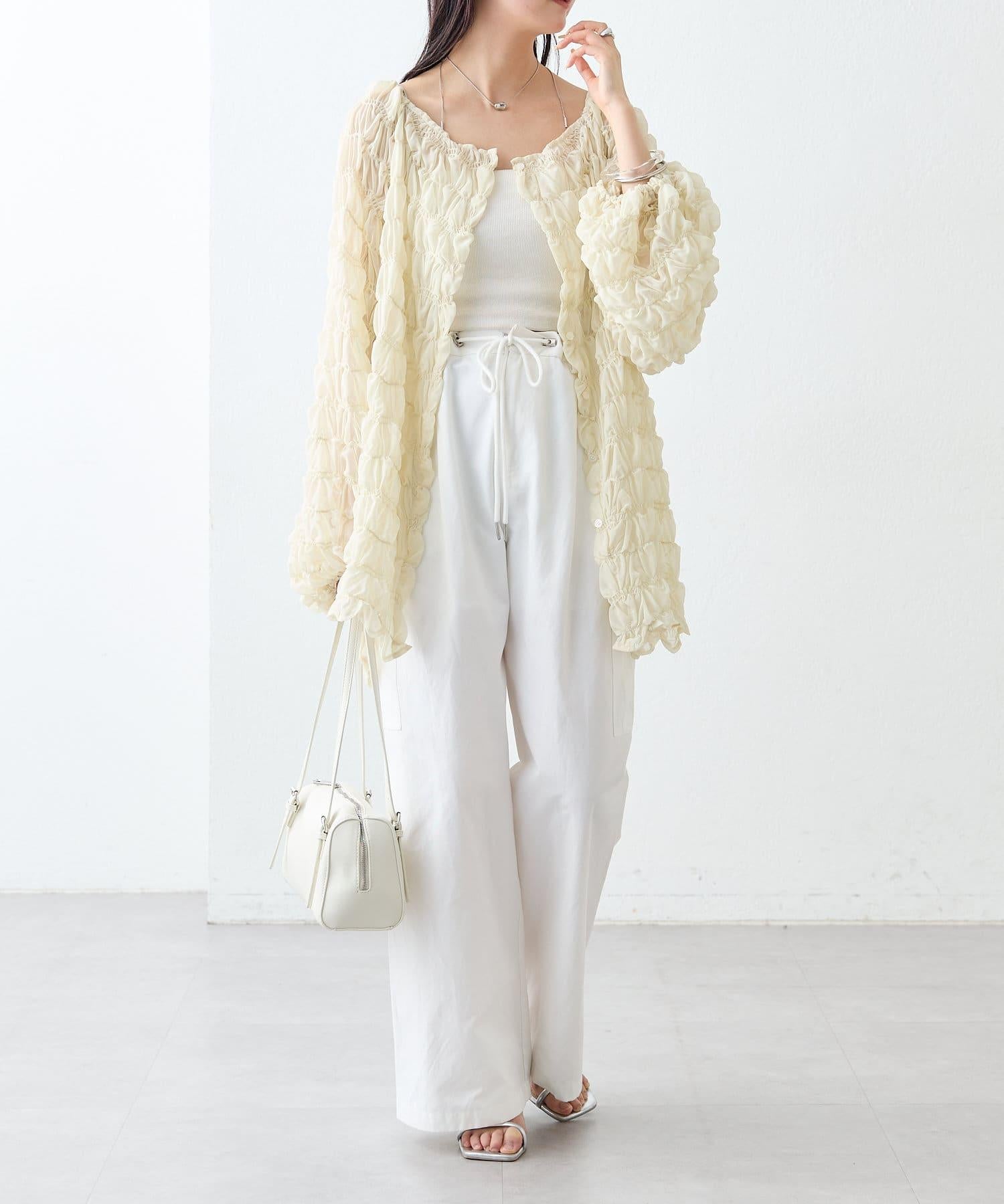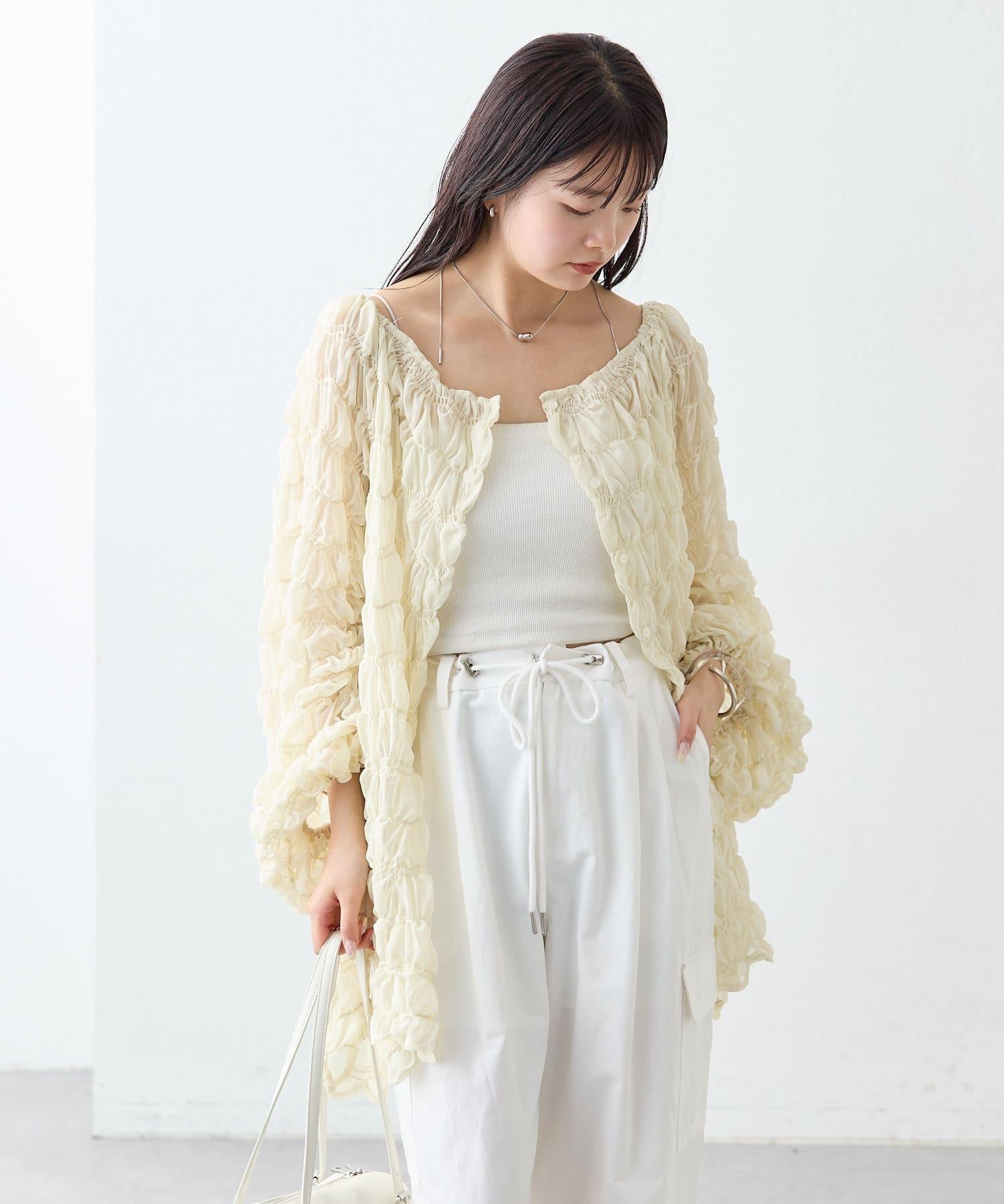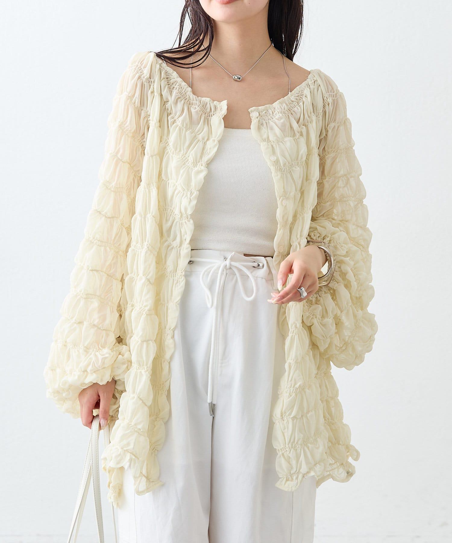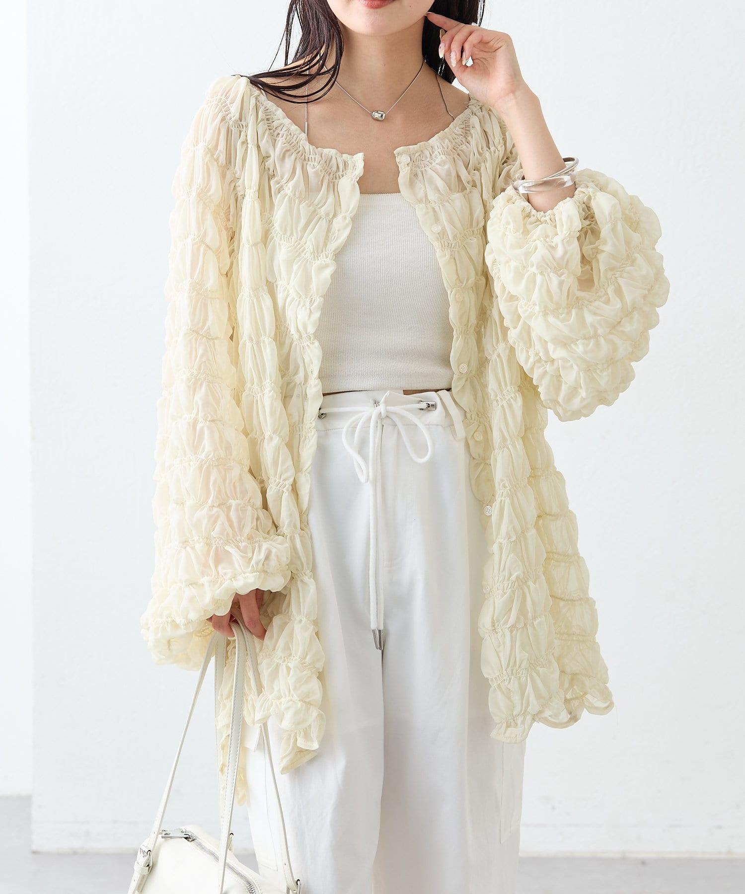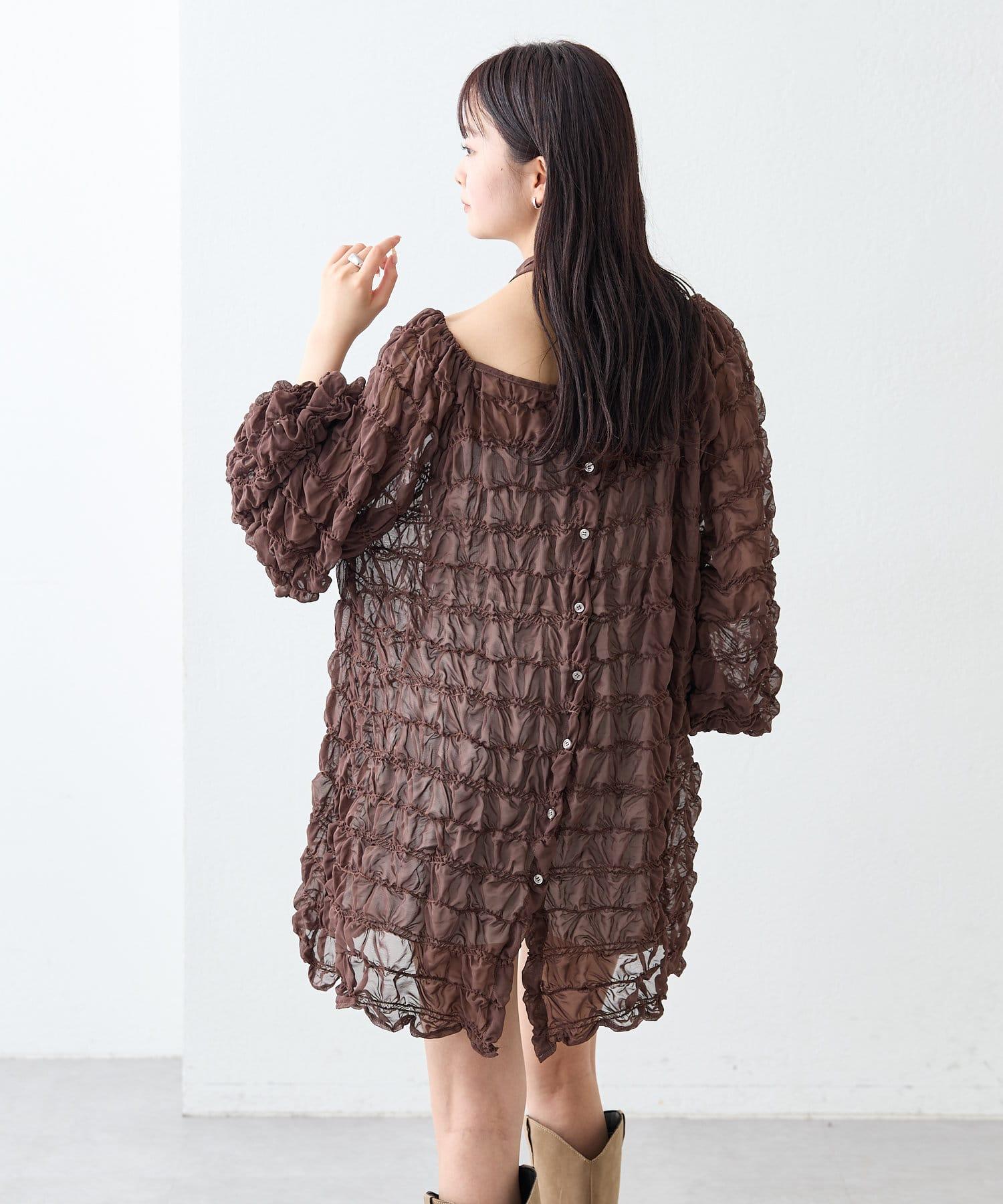 這款上衣的輪廓寬鬆,但薄紗材質給人一種可愛、寬鬆的感覺。