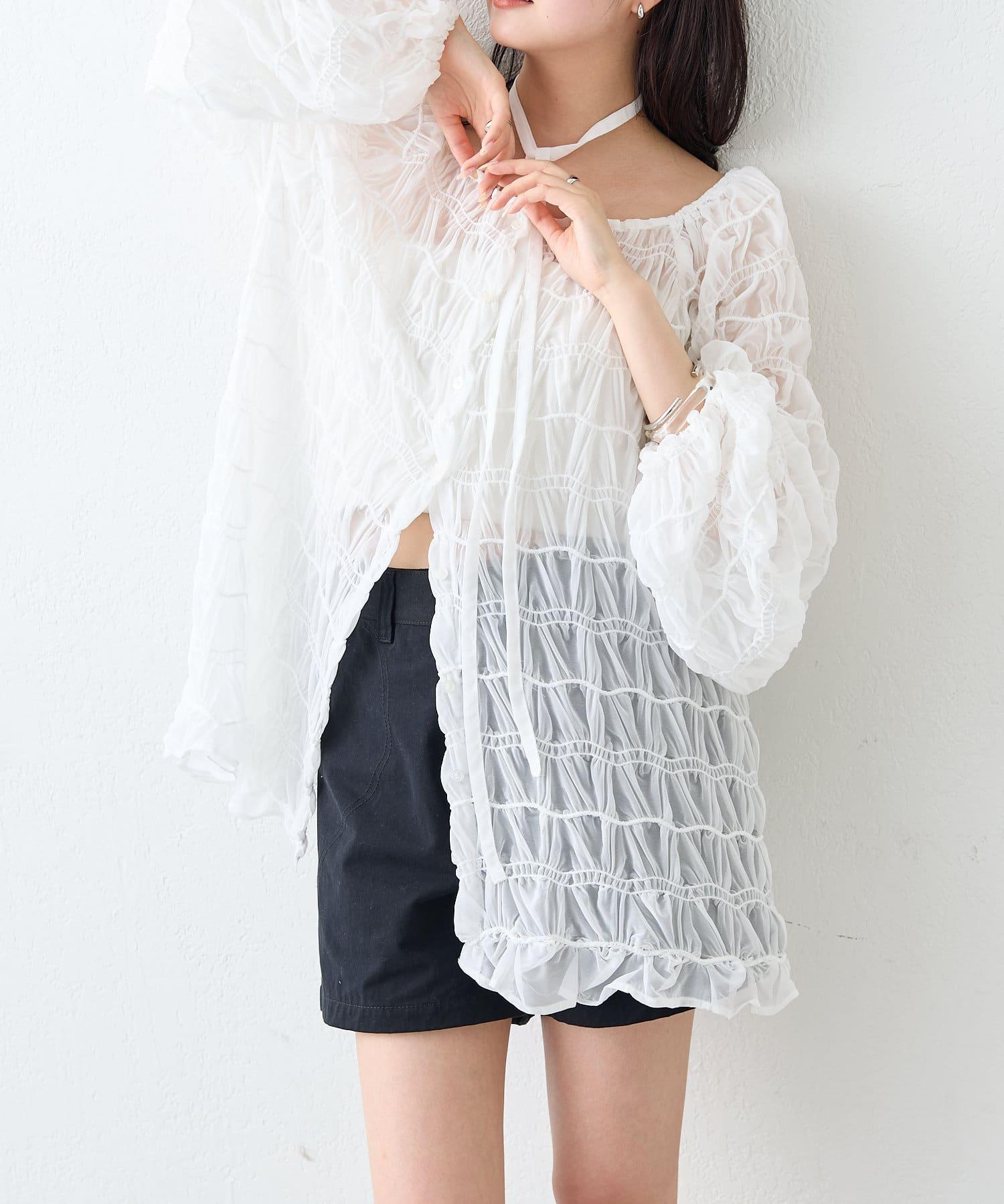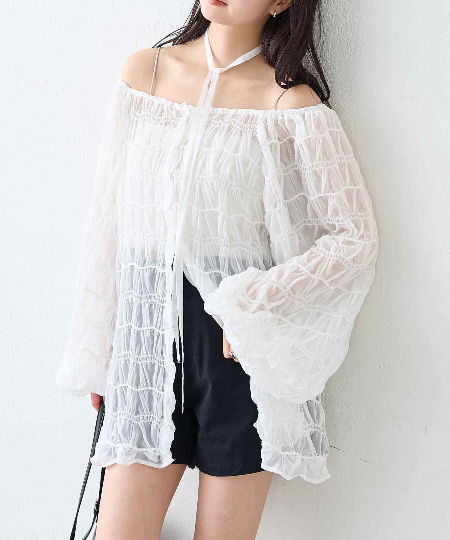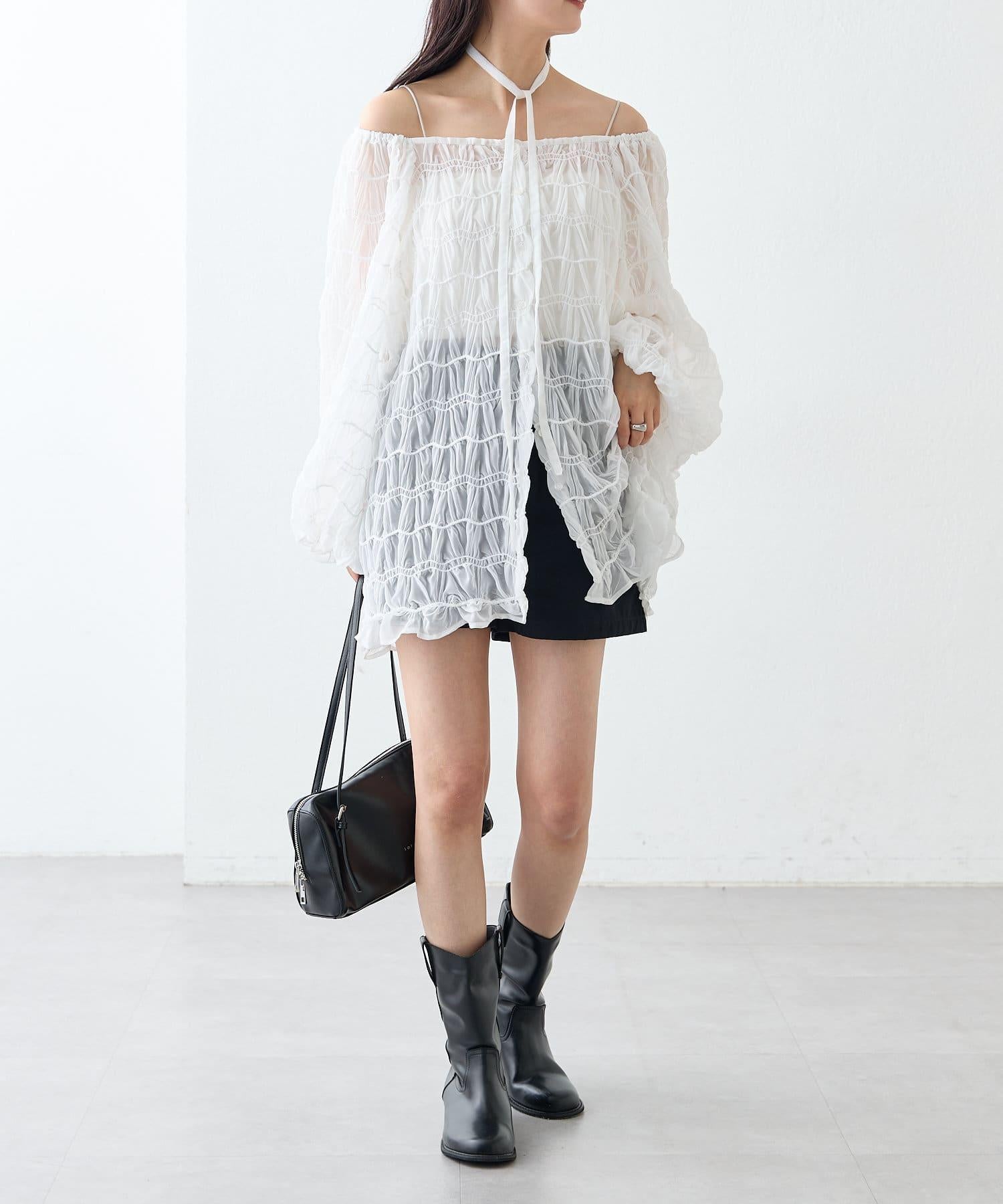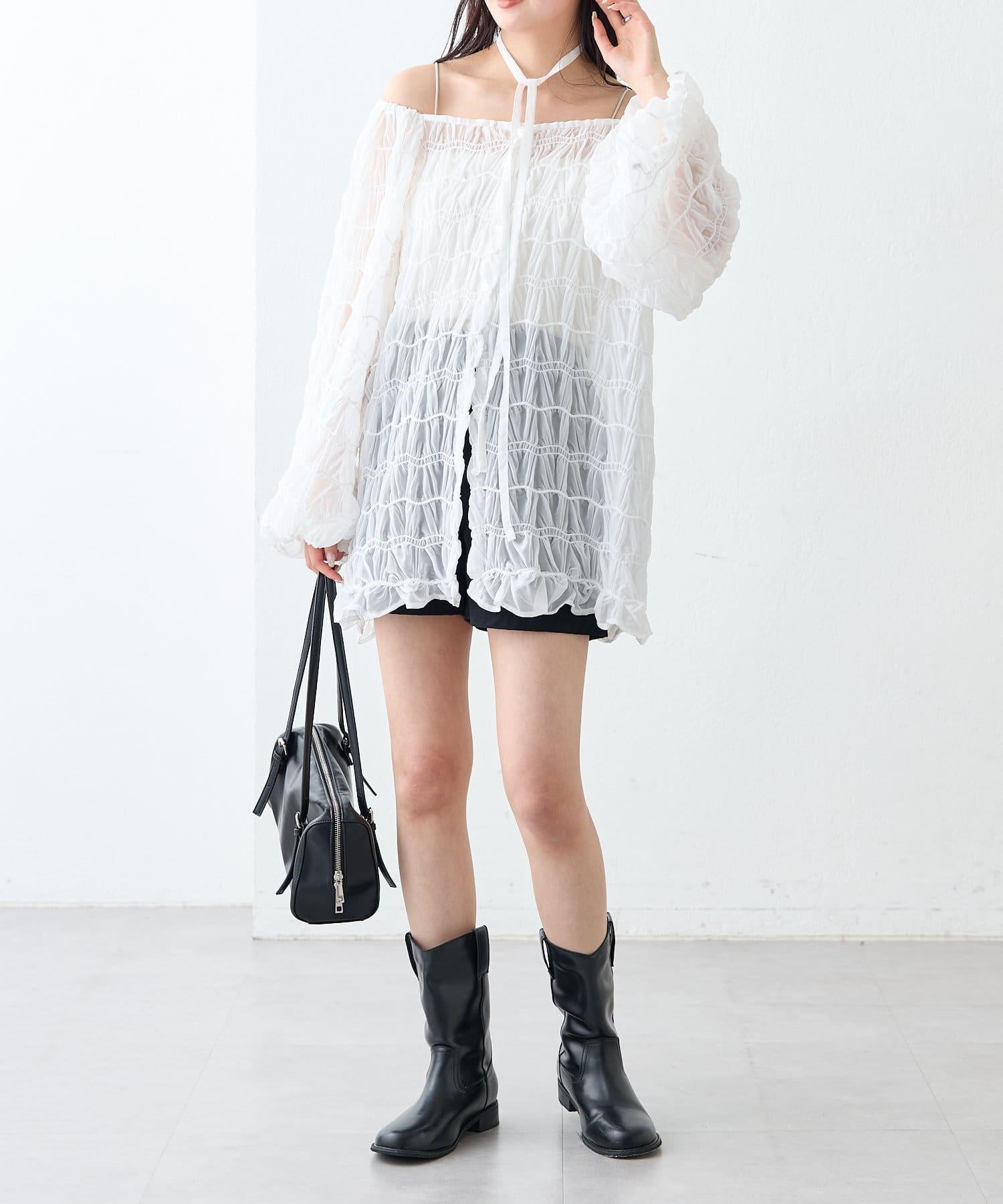 帥氣的上衣,配有可用於多種用途的choker,可愛的薄紗材質,具有寬鬆感!