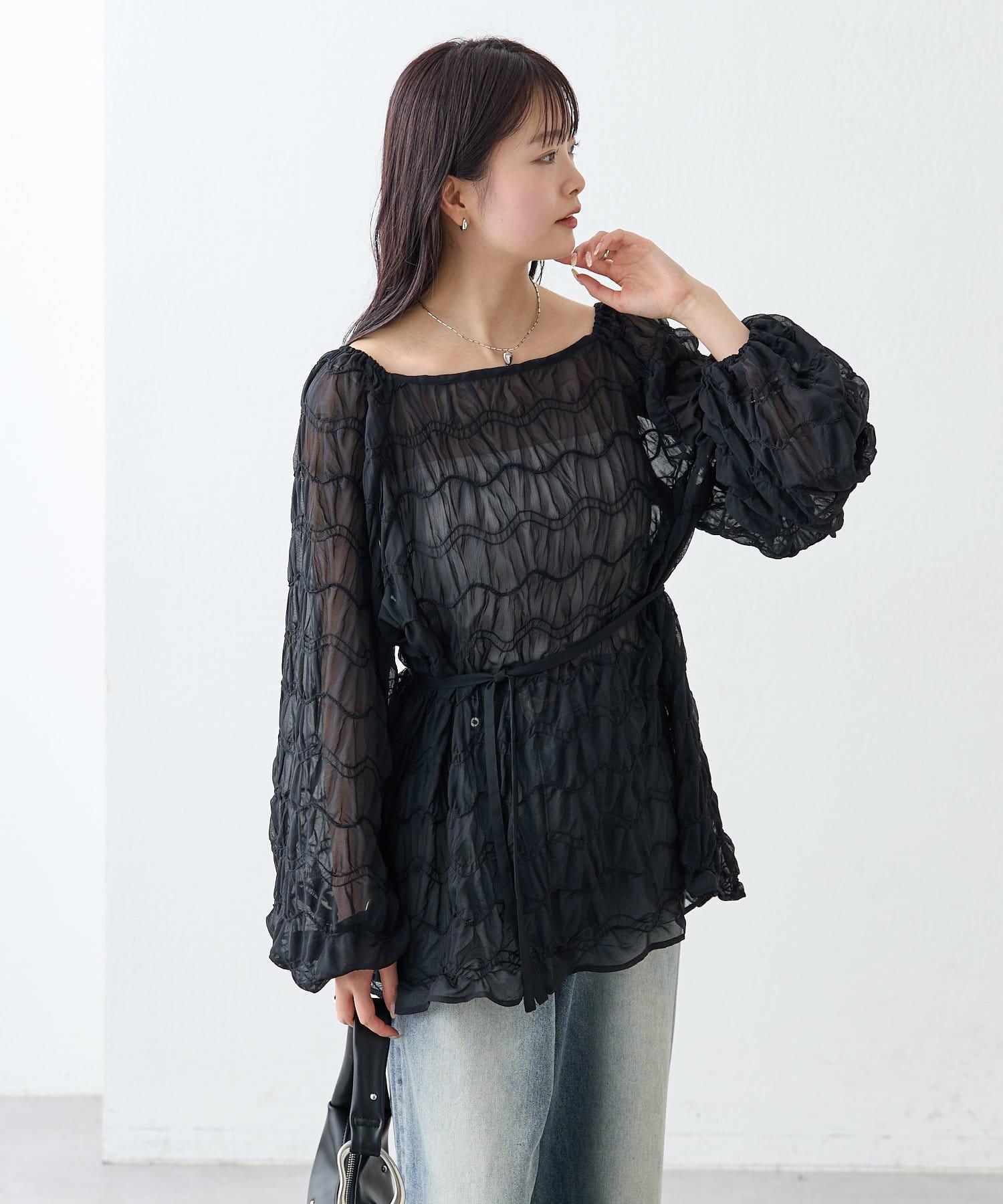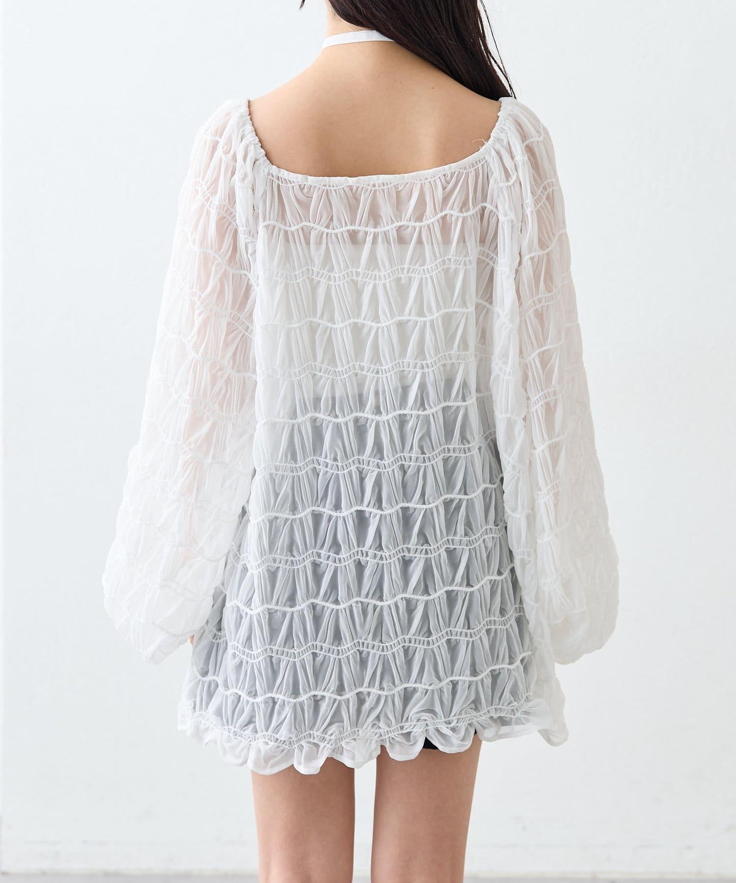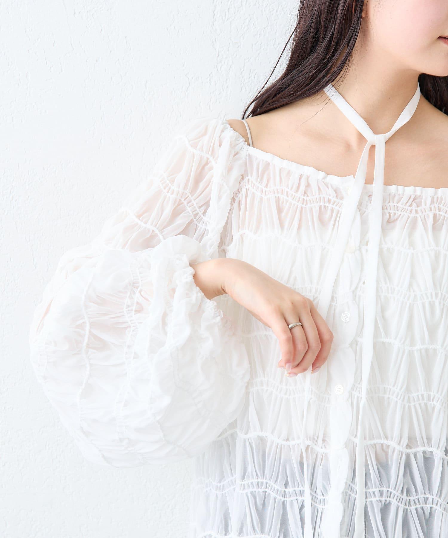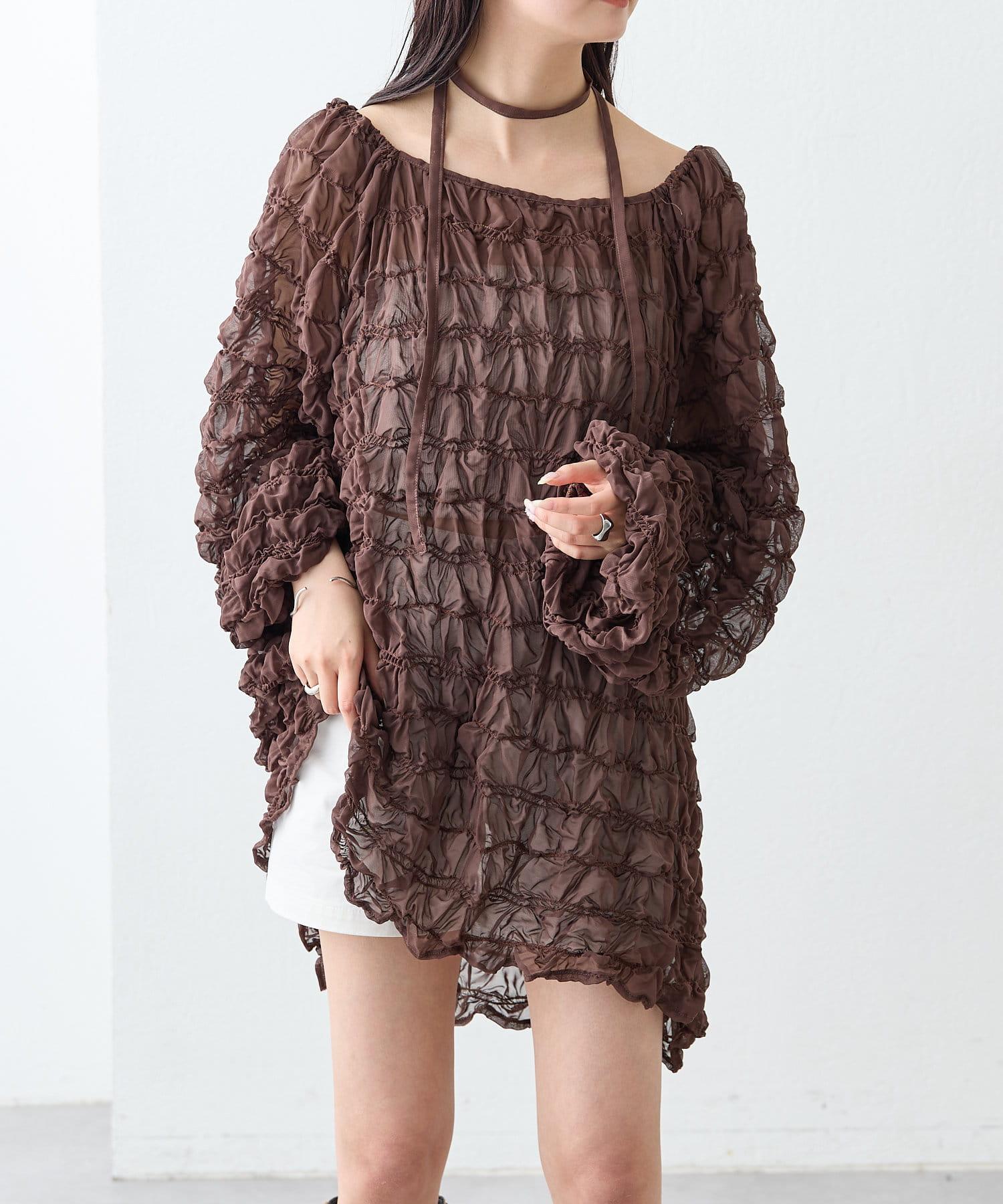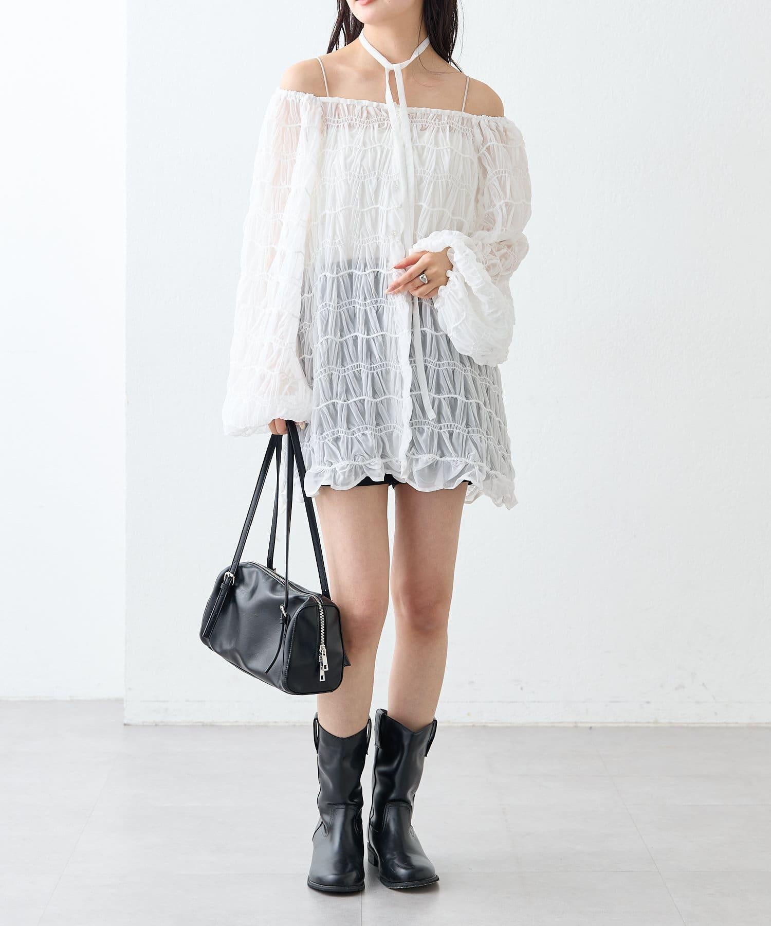 帥氣的上衣,配有可用於多種用途的choker,可愛的薄紗材質,具有寬鬆感!