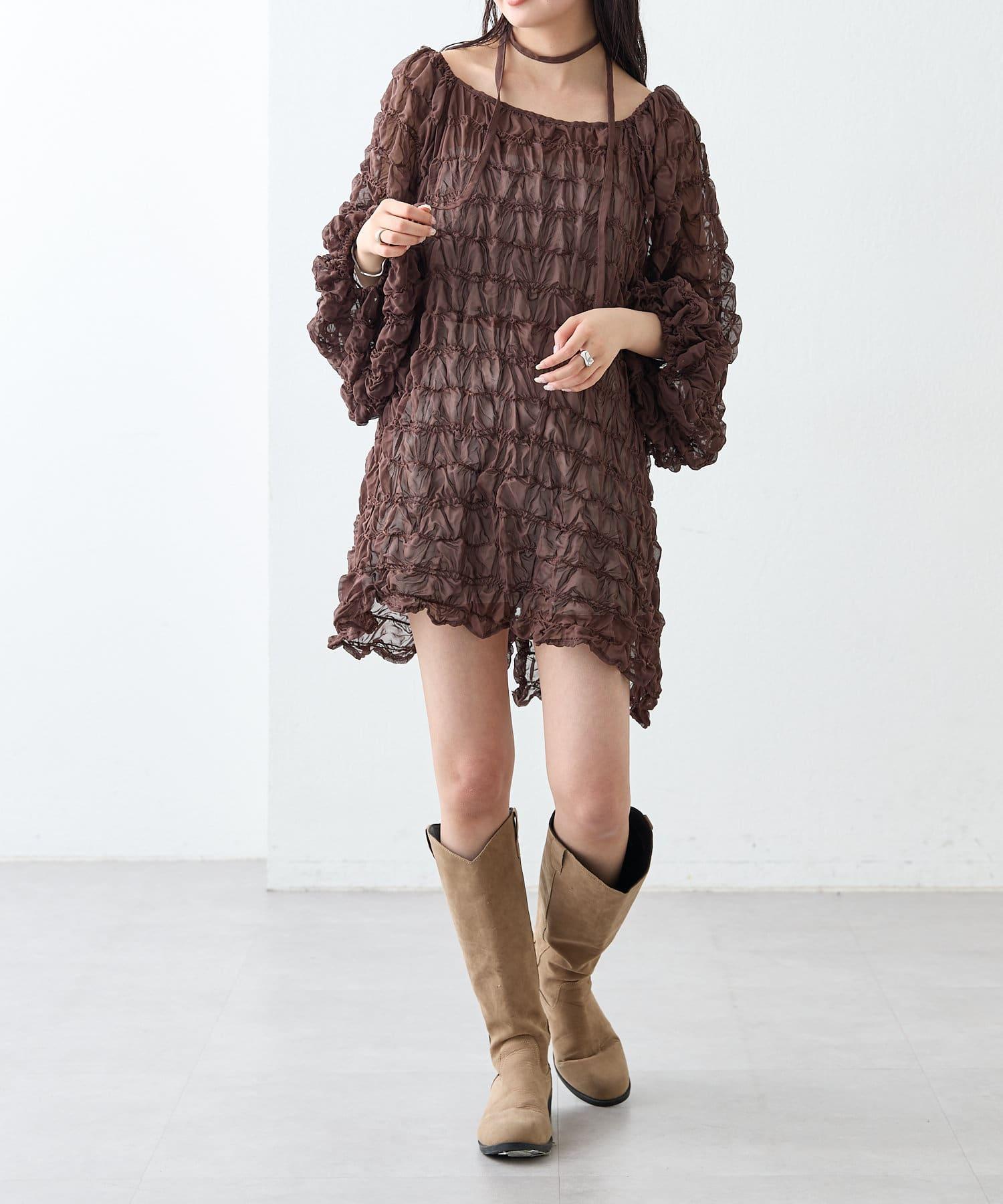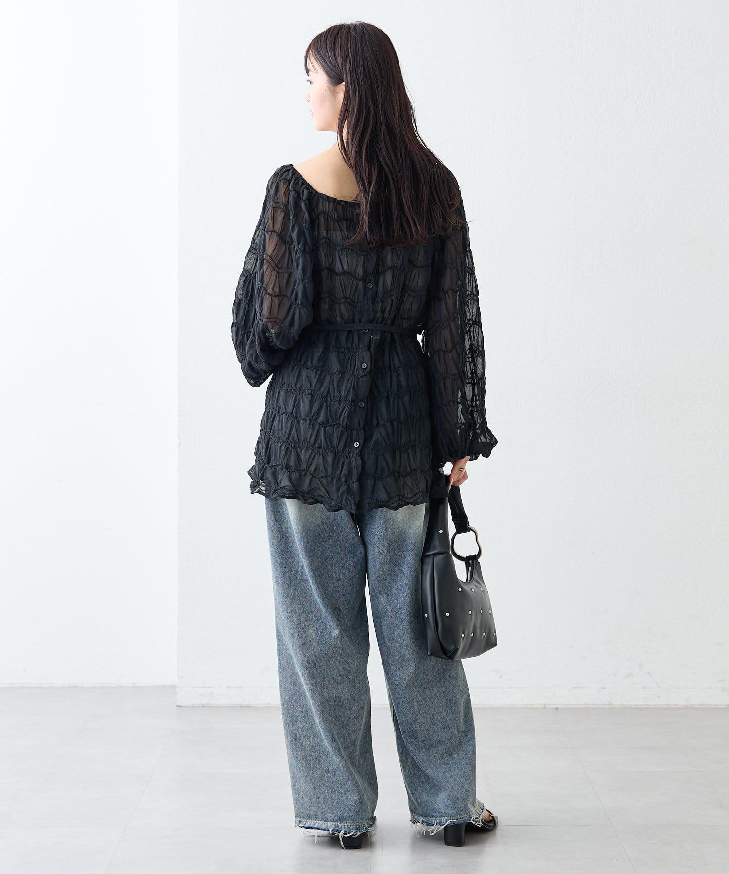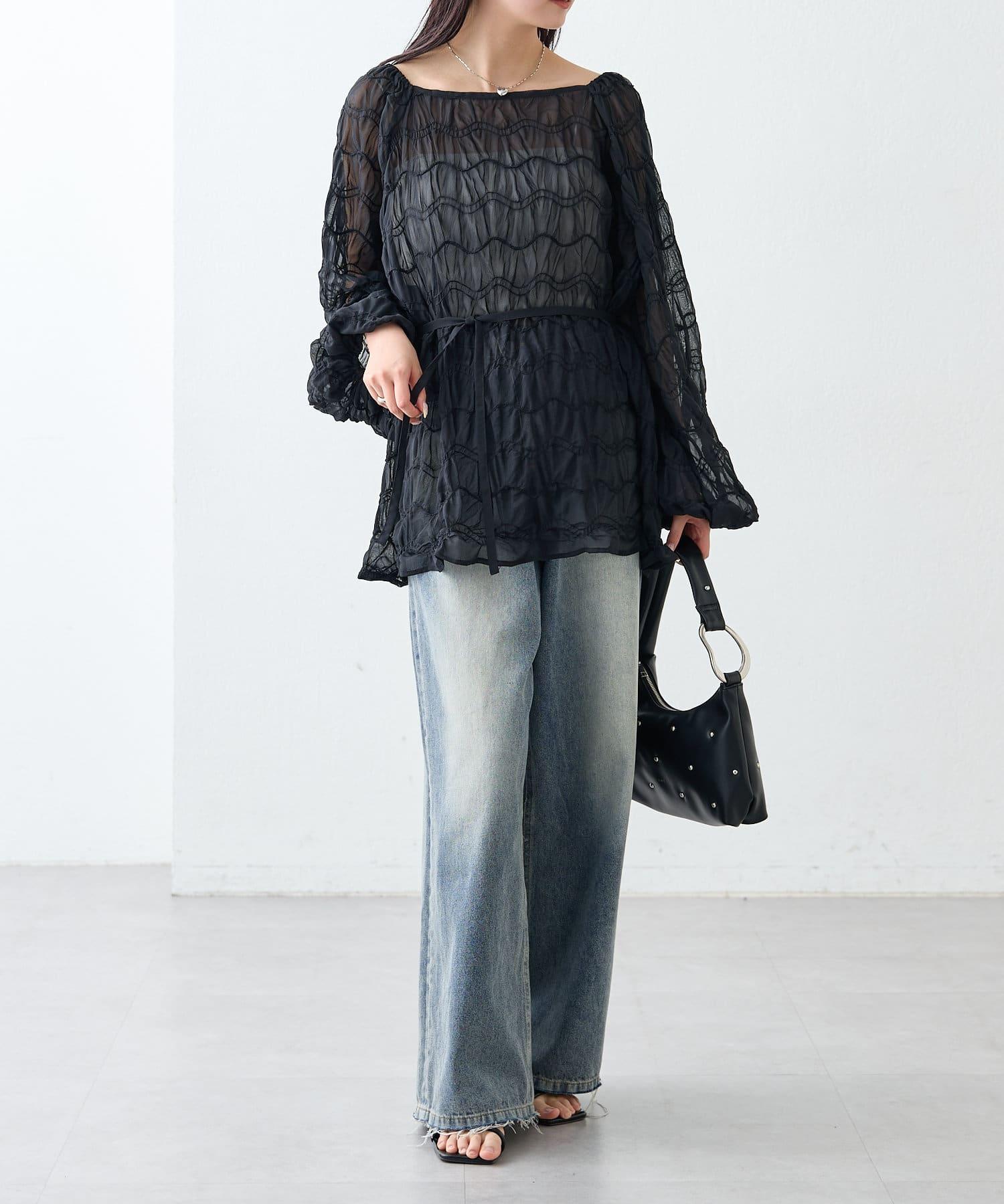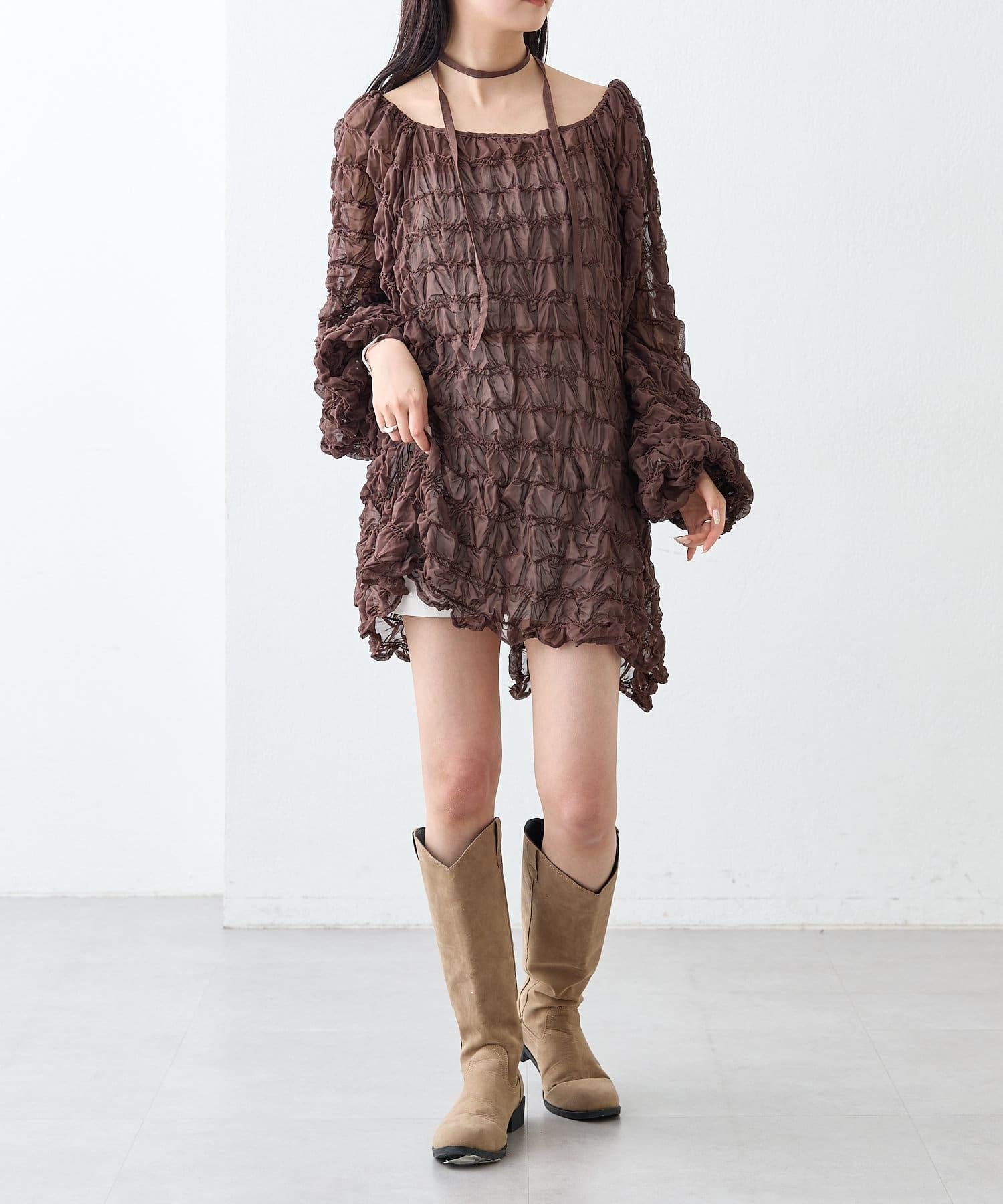 帥氣的上衣,配有可用於多種用途的choker,可愛的薄紗材質,具有寬鬆感!