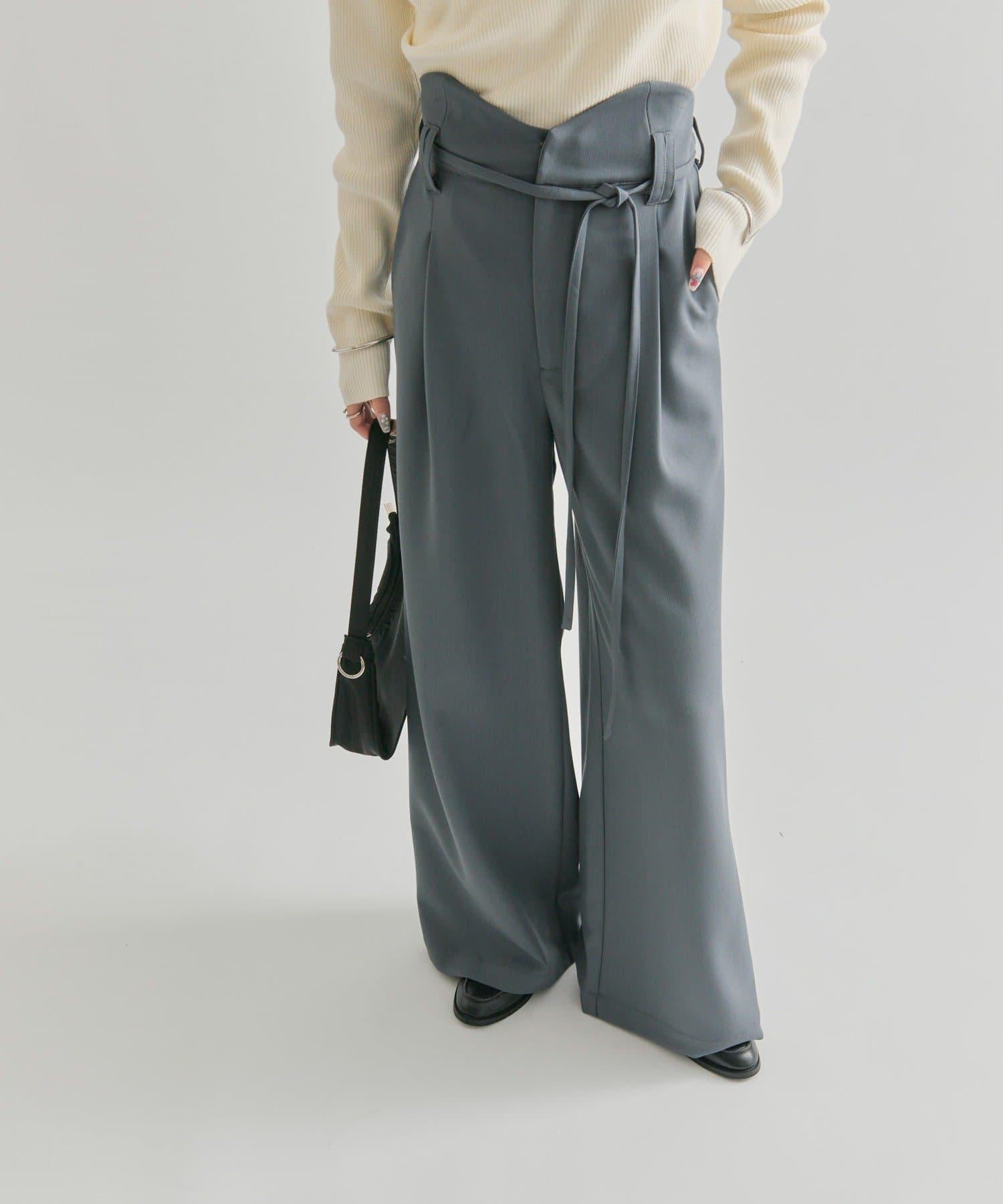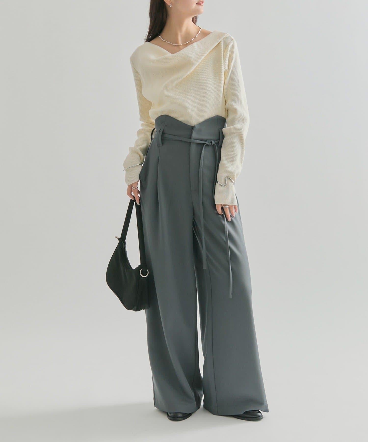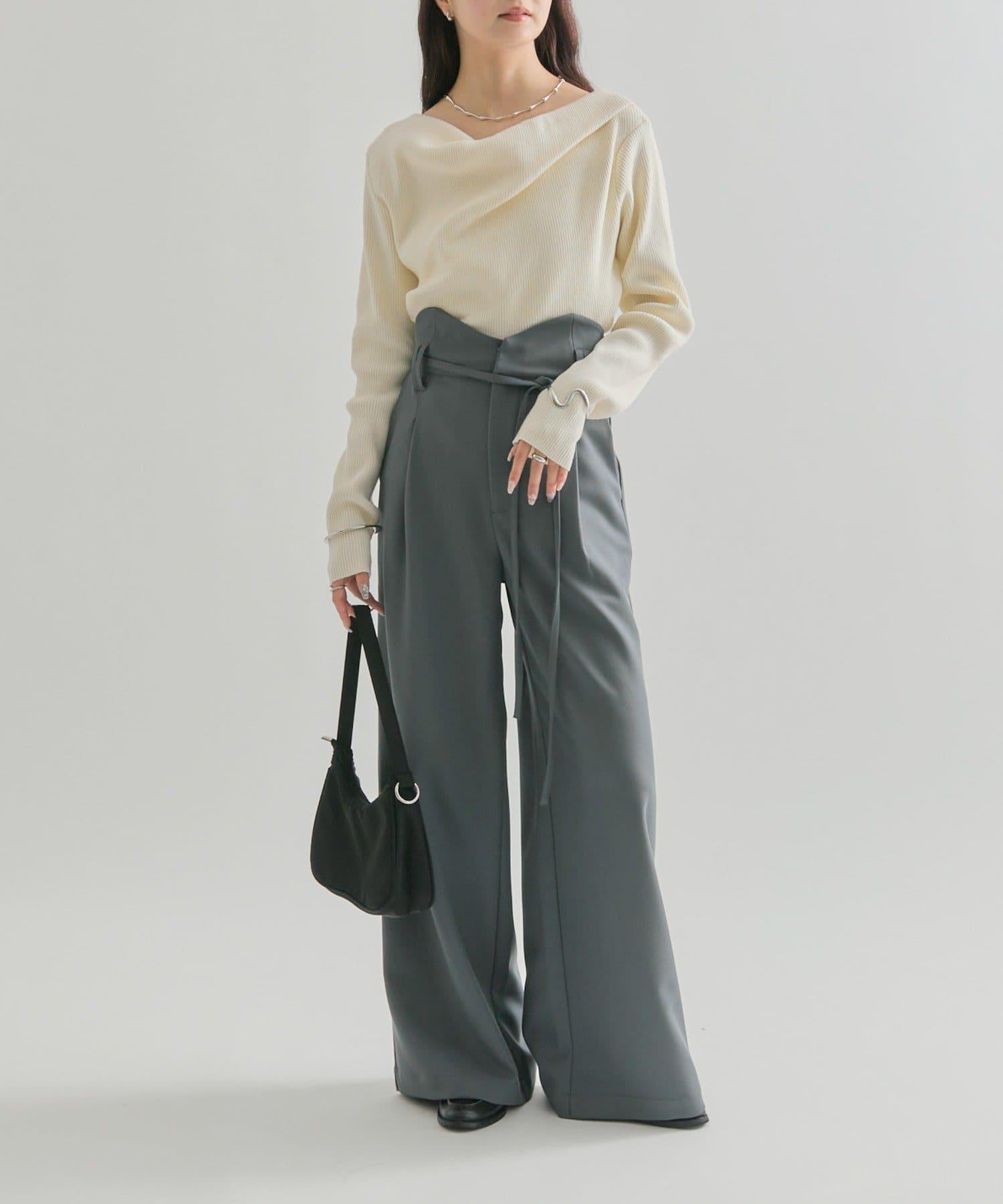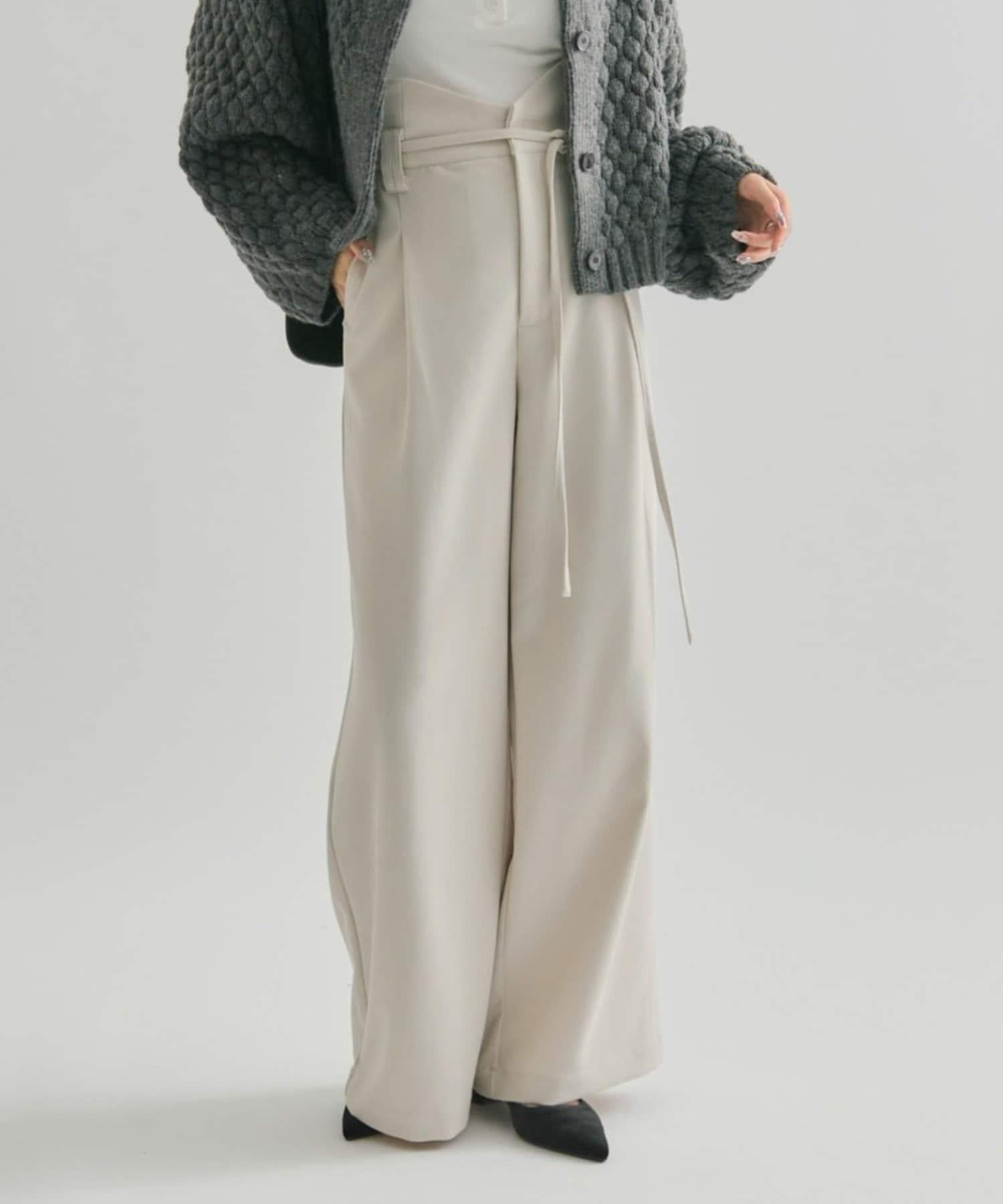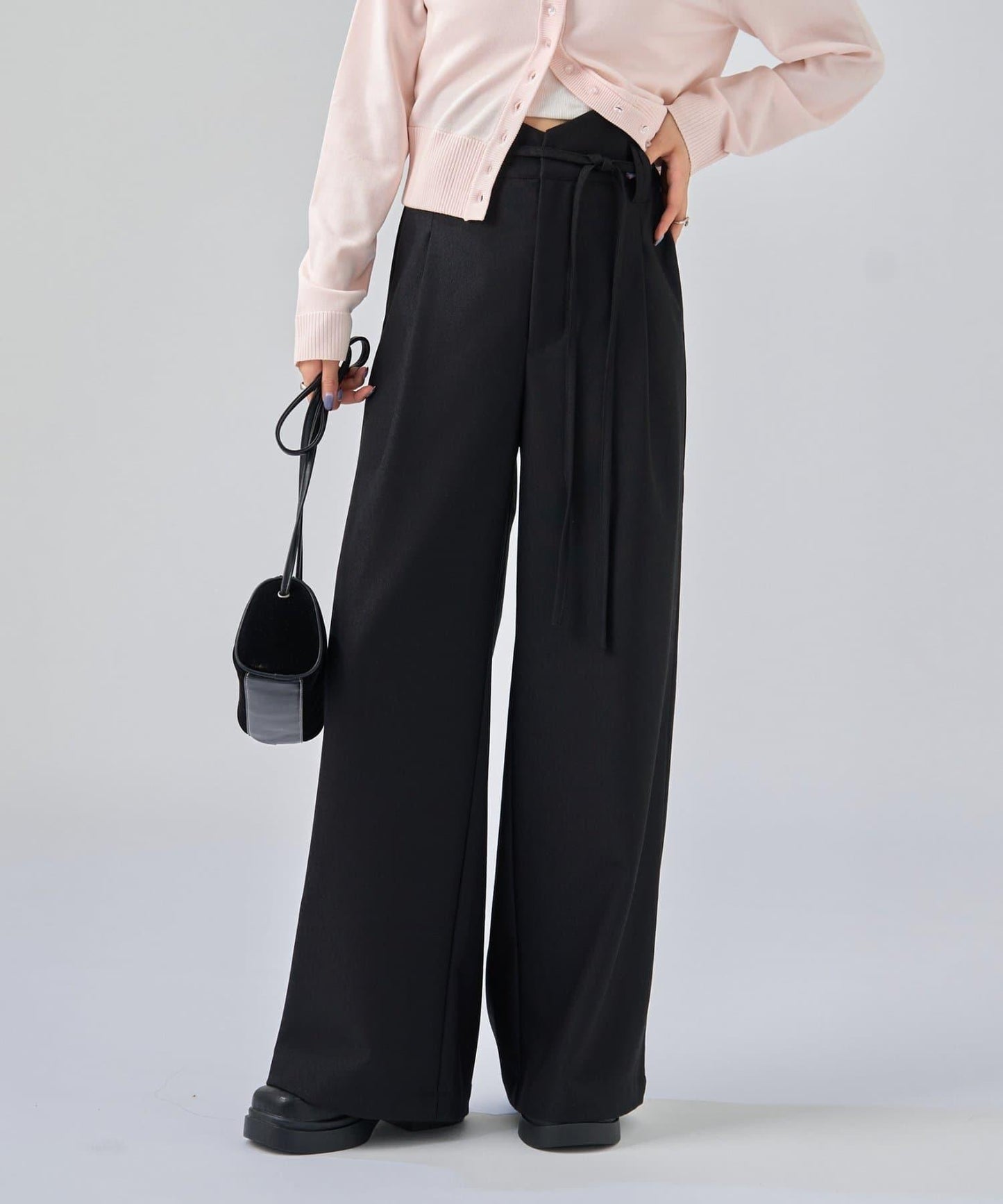 腰部的波浪形設計使這款休閒褲即使穿著也很時尚。兩個腰帶環的設計也很時尚。