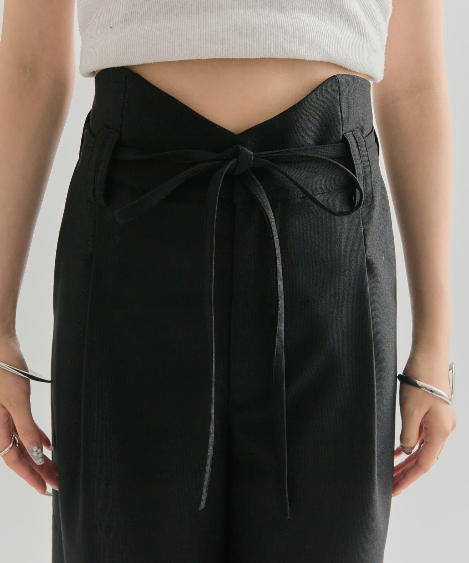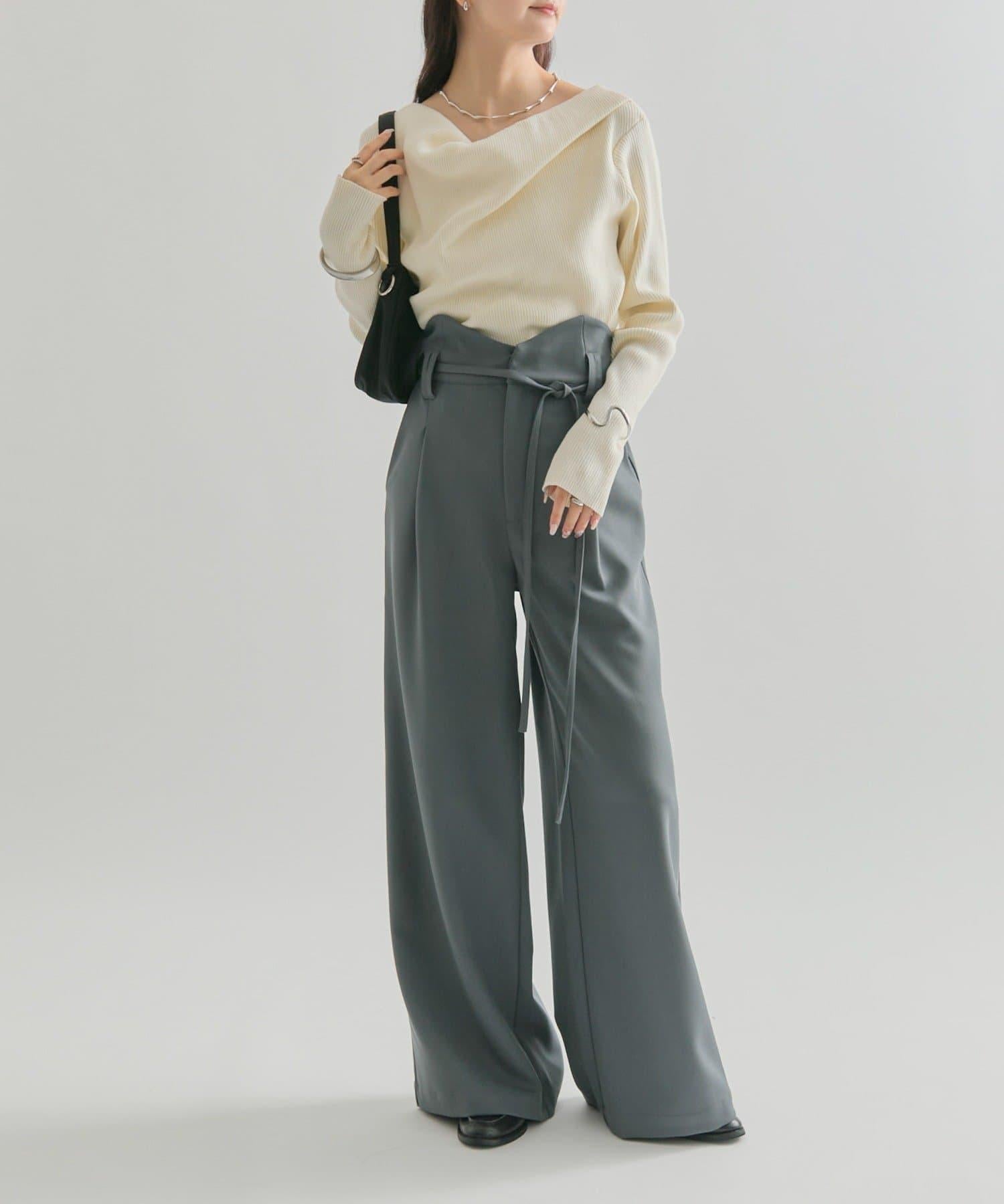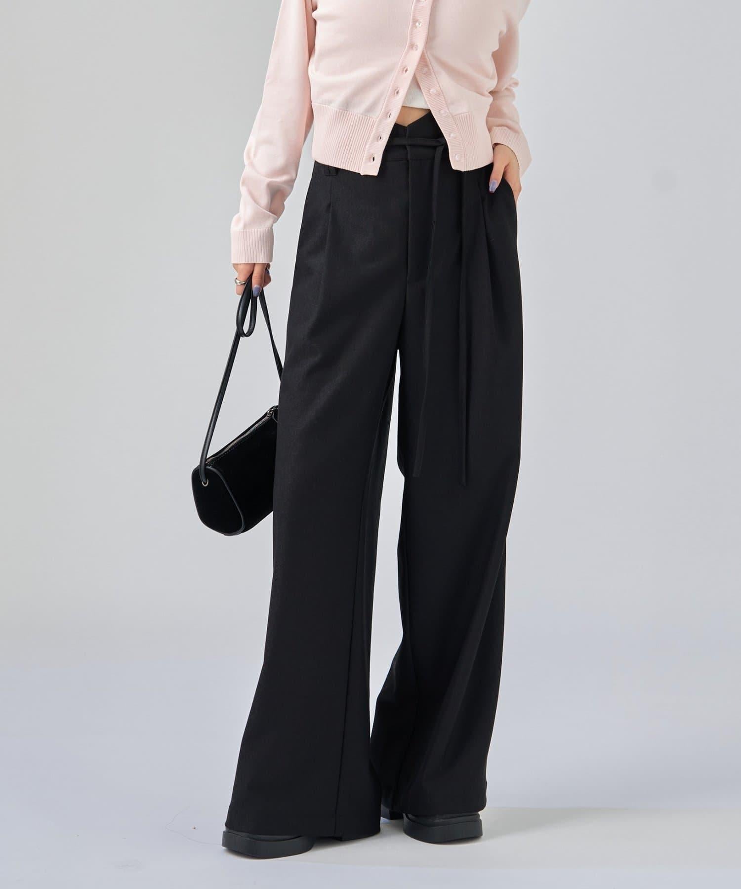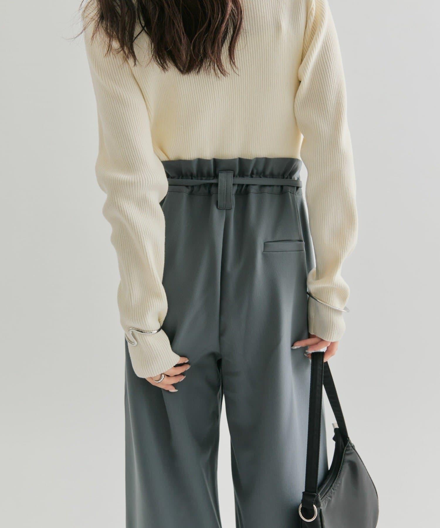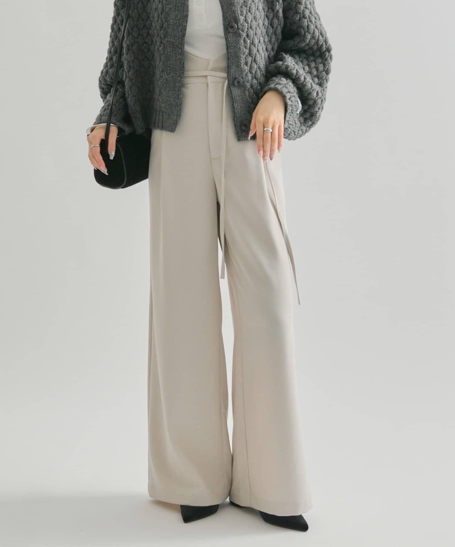 腰部的波浪形設計使這款休閒褲即使穿著也很時尚。兩個腰帶環的設計也很時尚。