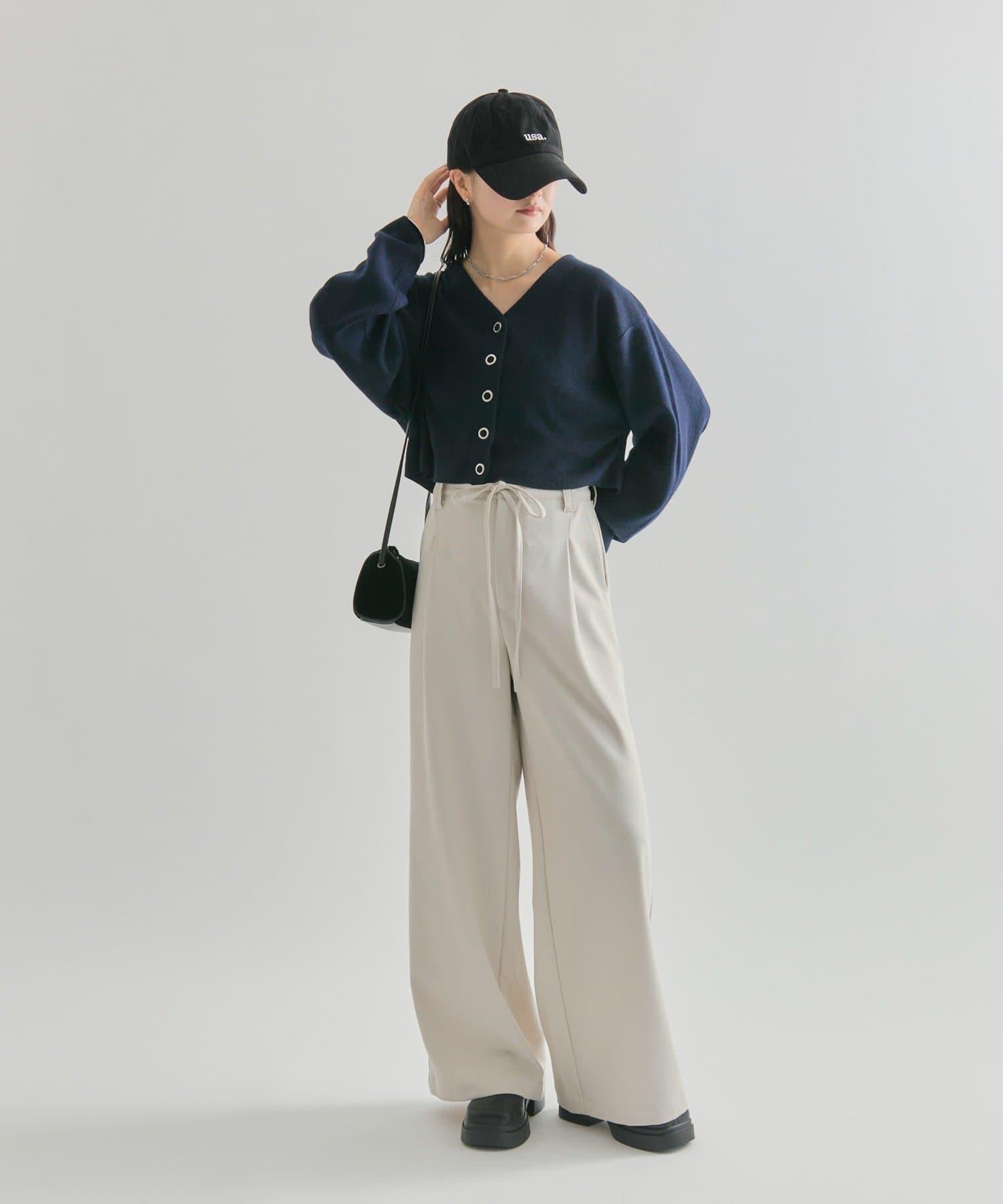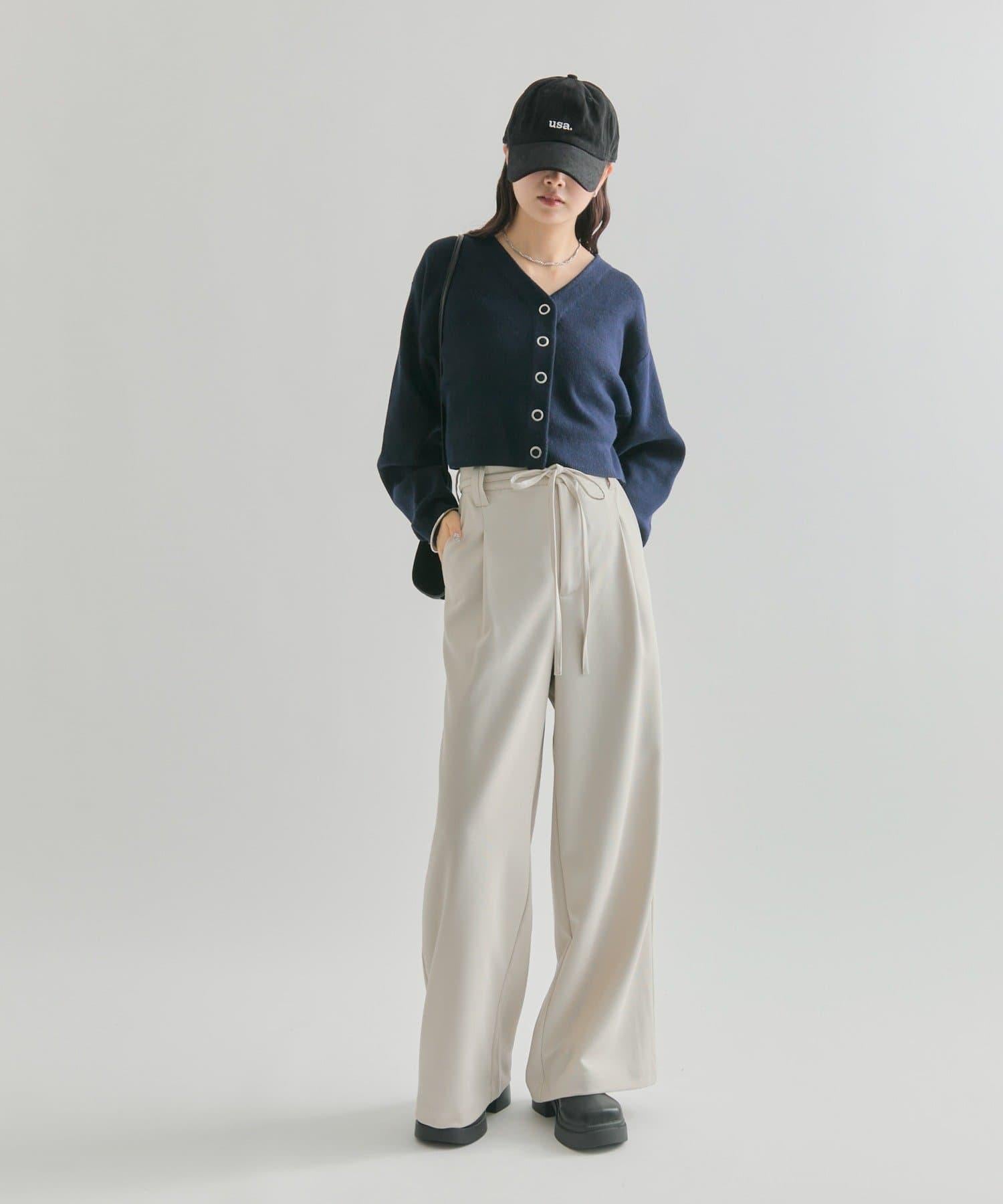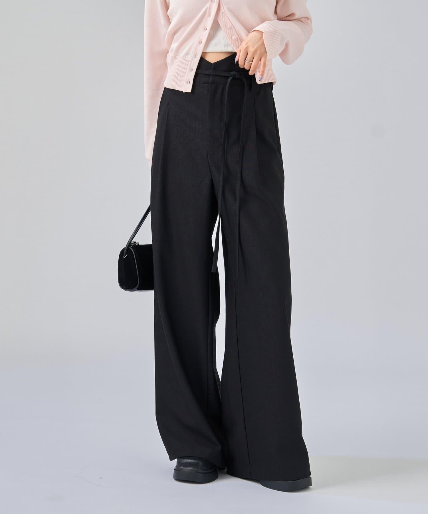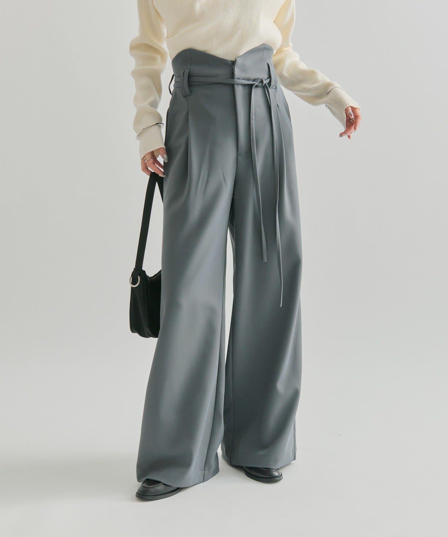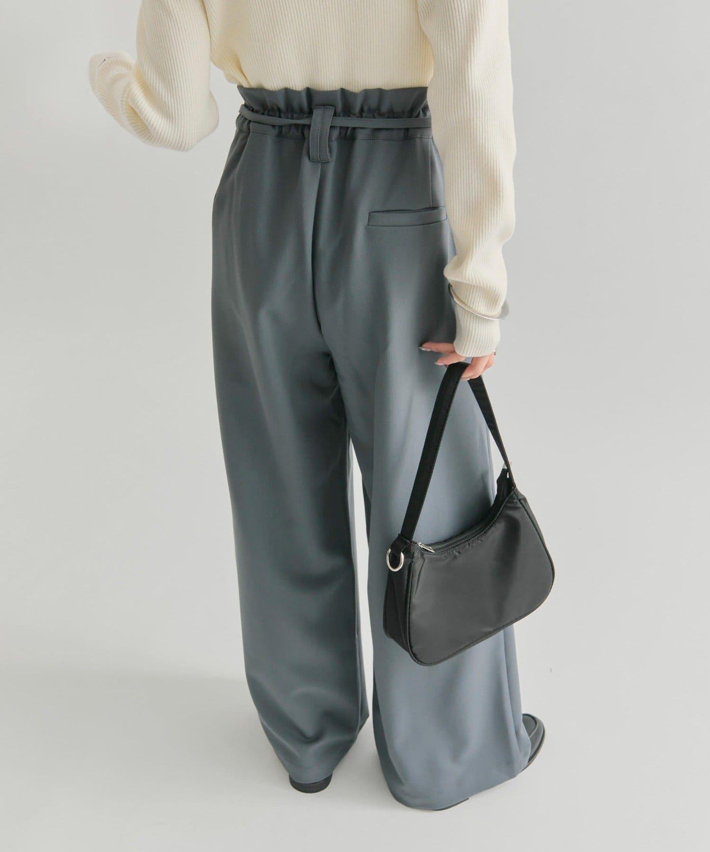 腰部的波浪形設計使這款休閒褲即使穿著也很時尚。兩個腰帶環的設計也很時尚。