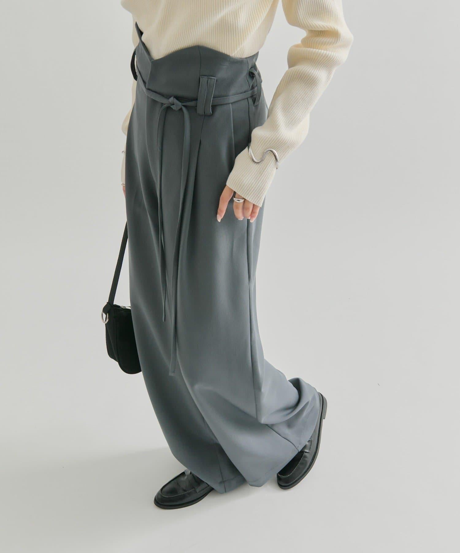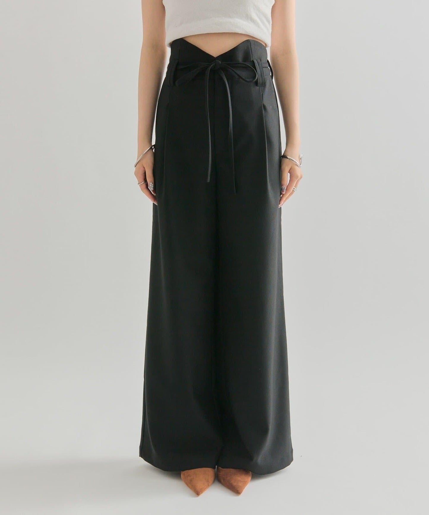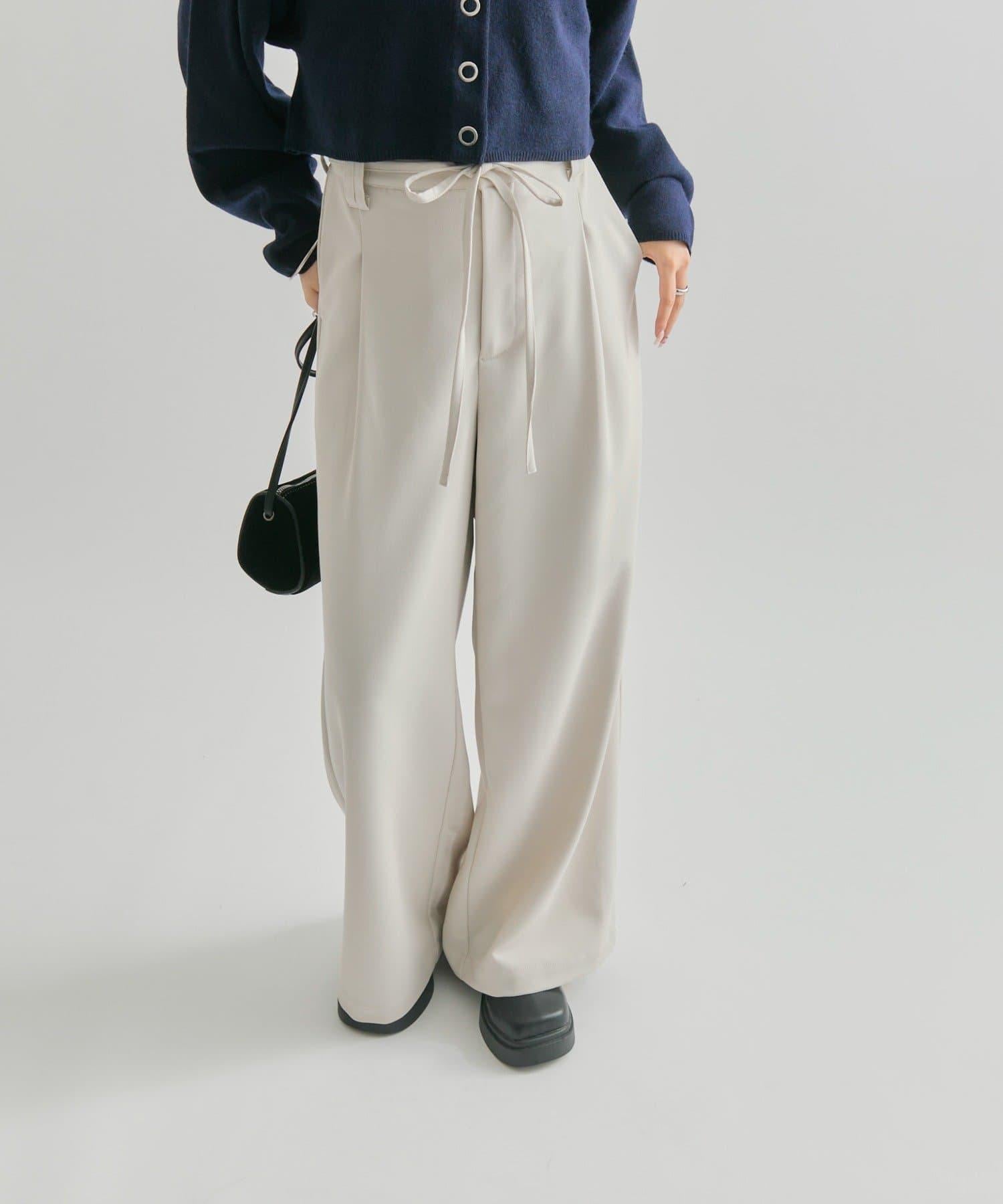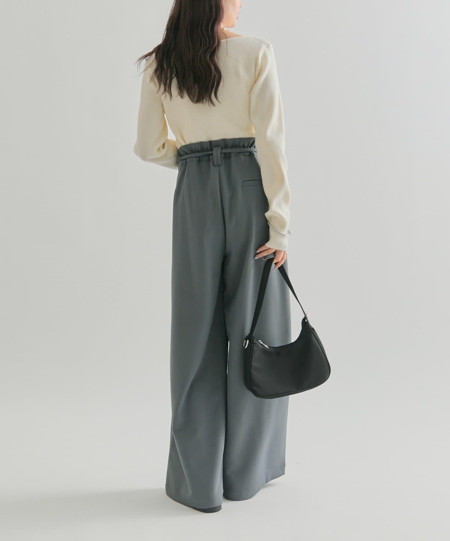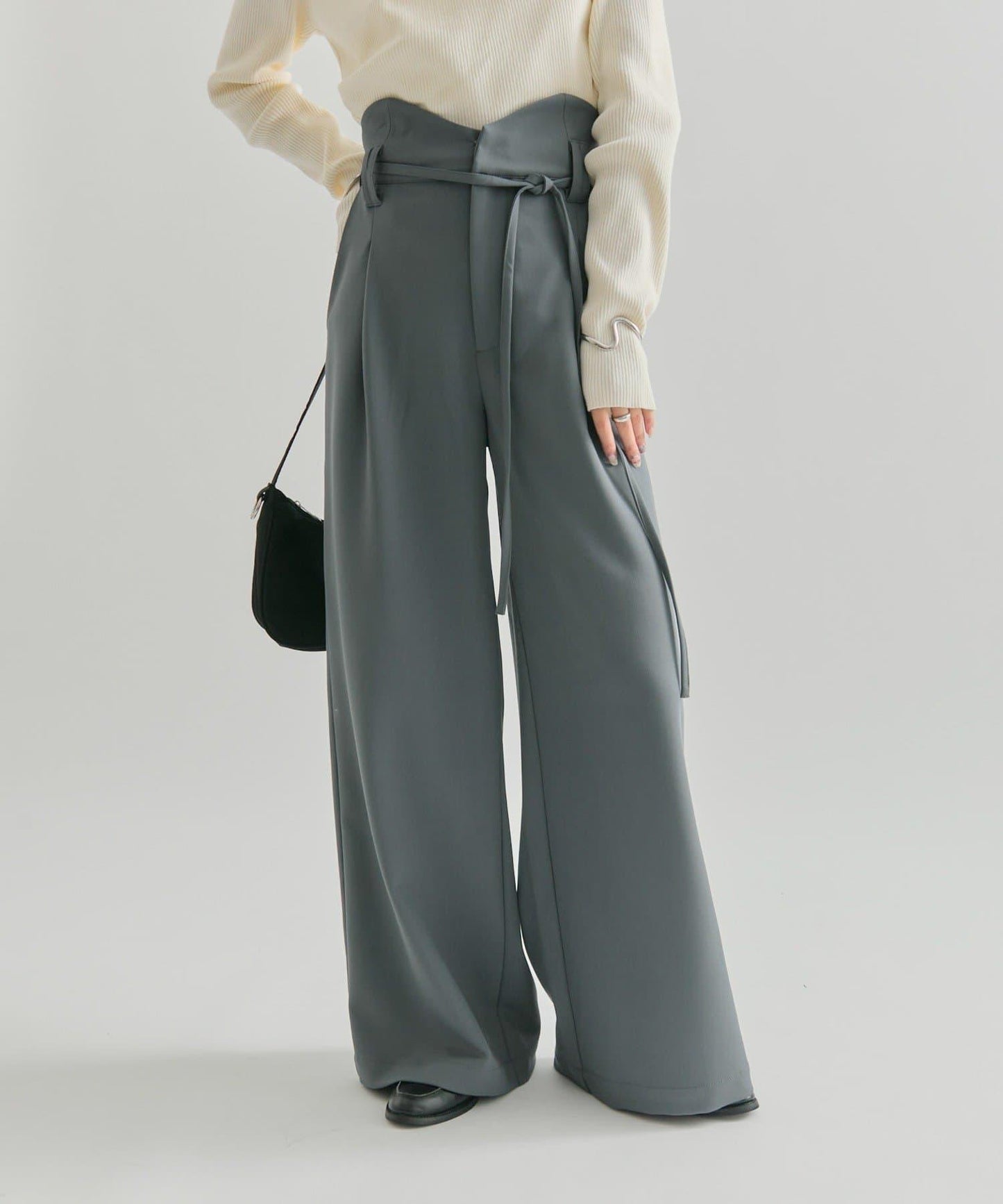 腰部的波浪形設計使這款休閒褲即使穿著也很時尚。兩個腰帶環的設計也很時尚。