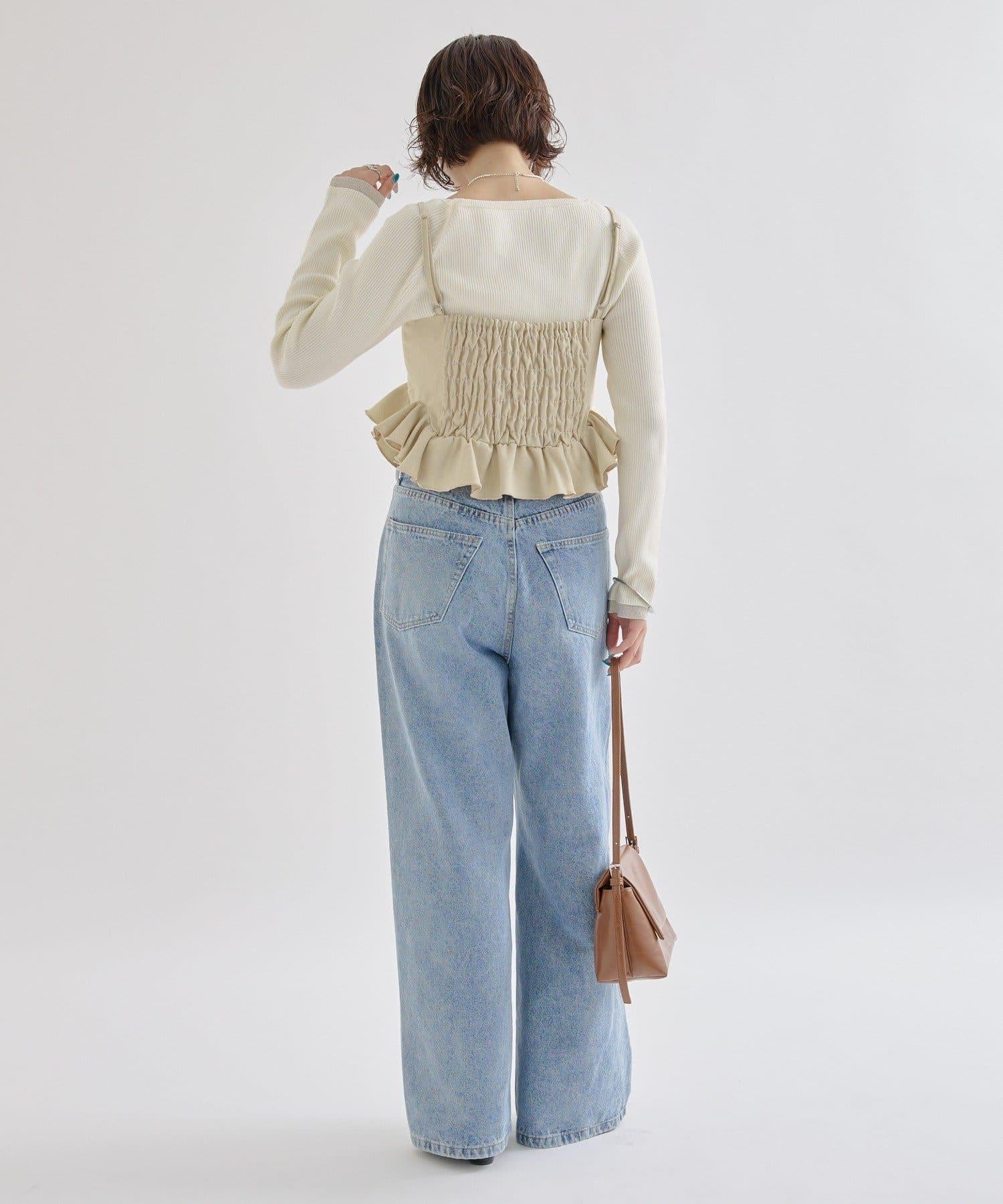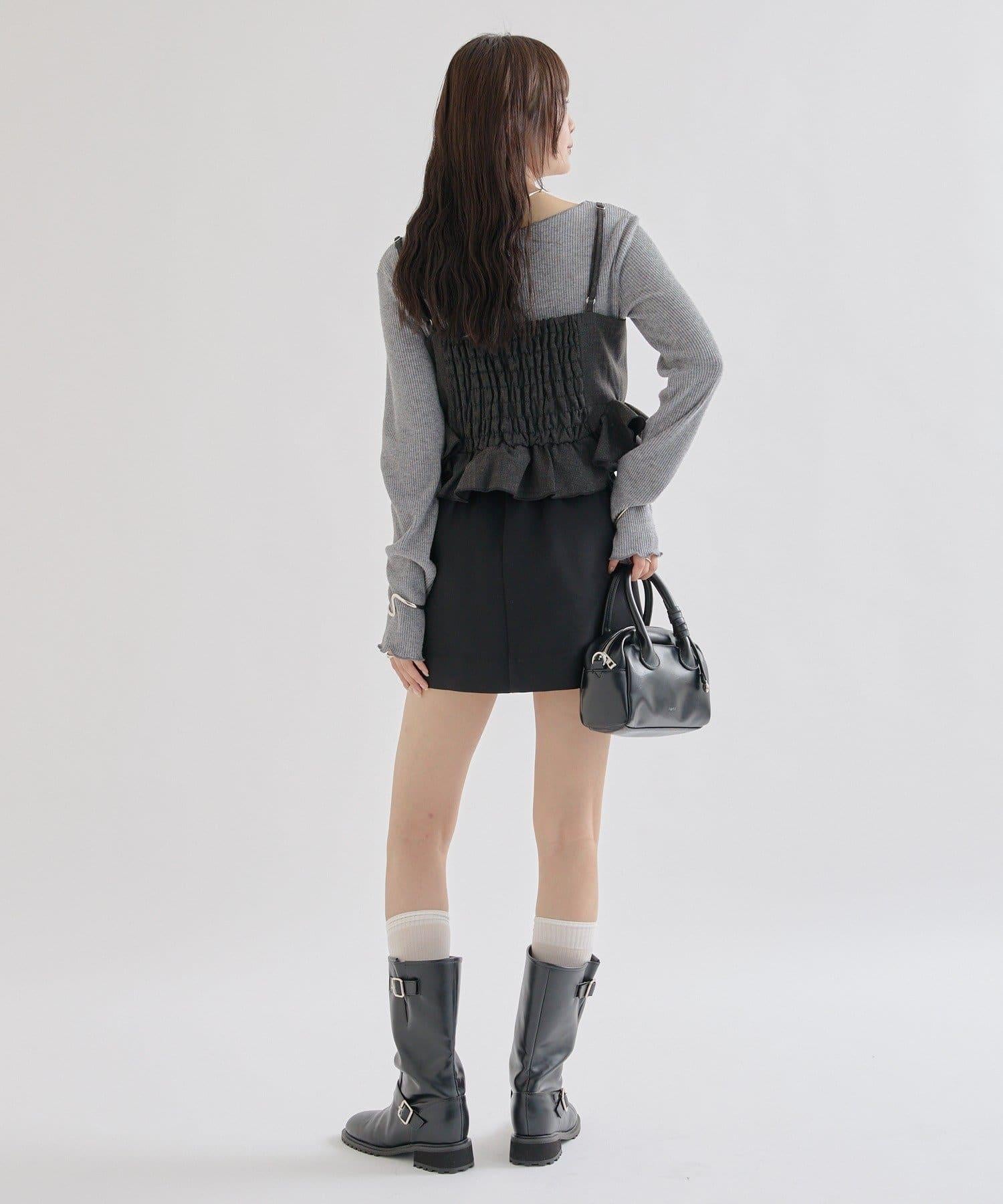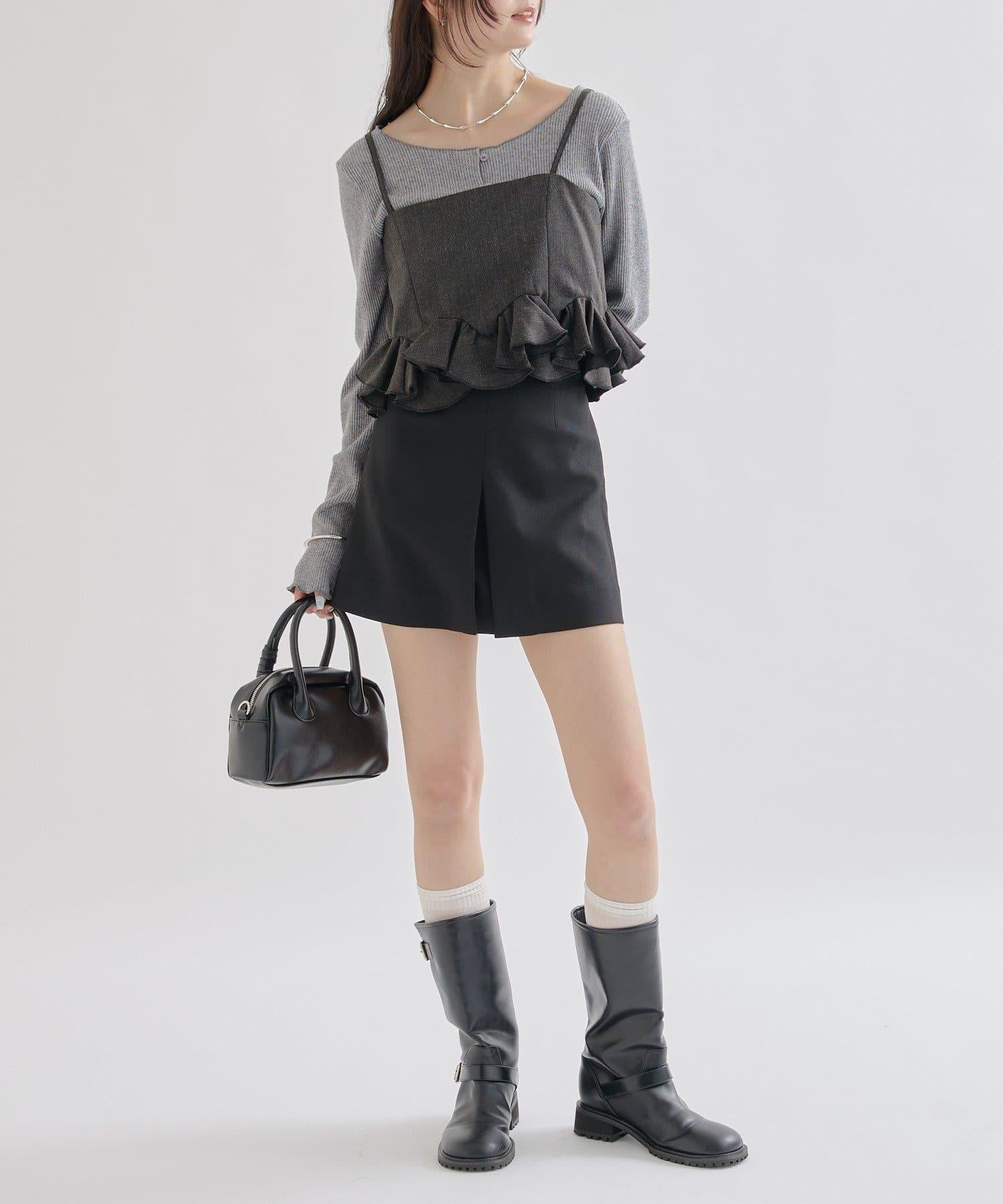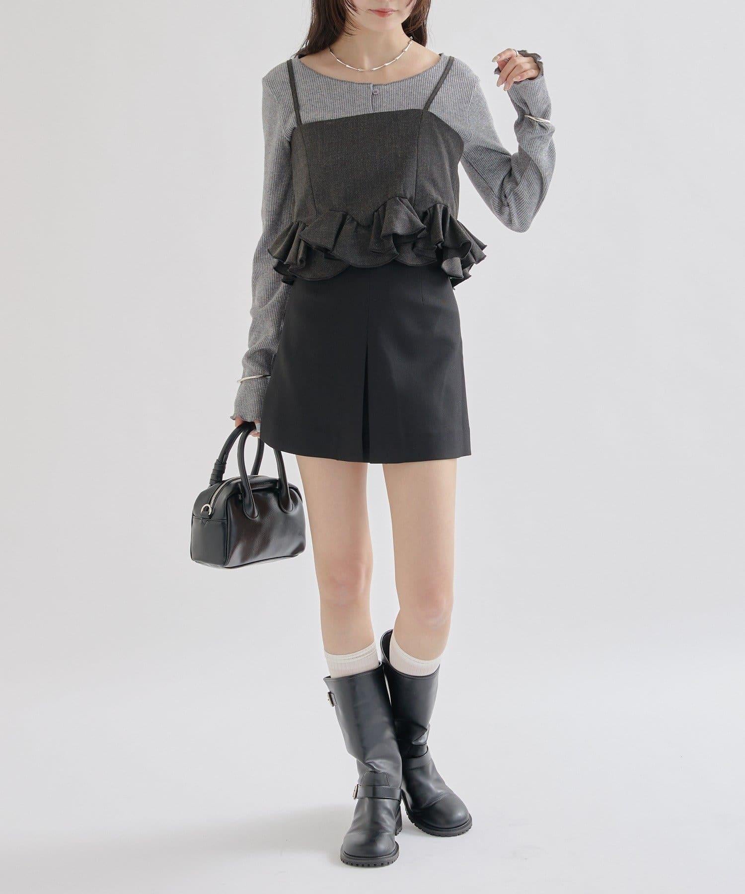 荷葉邊給人一種蓬鬆感,所以我想搭配迷你下裝,保持乾淨利落!