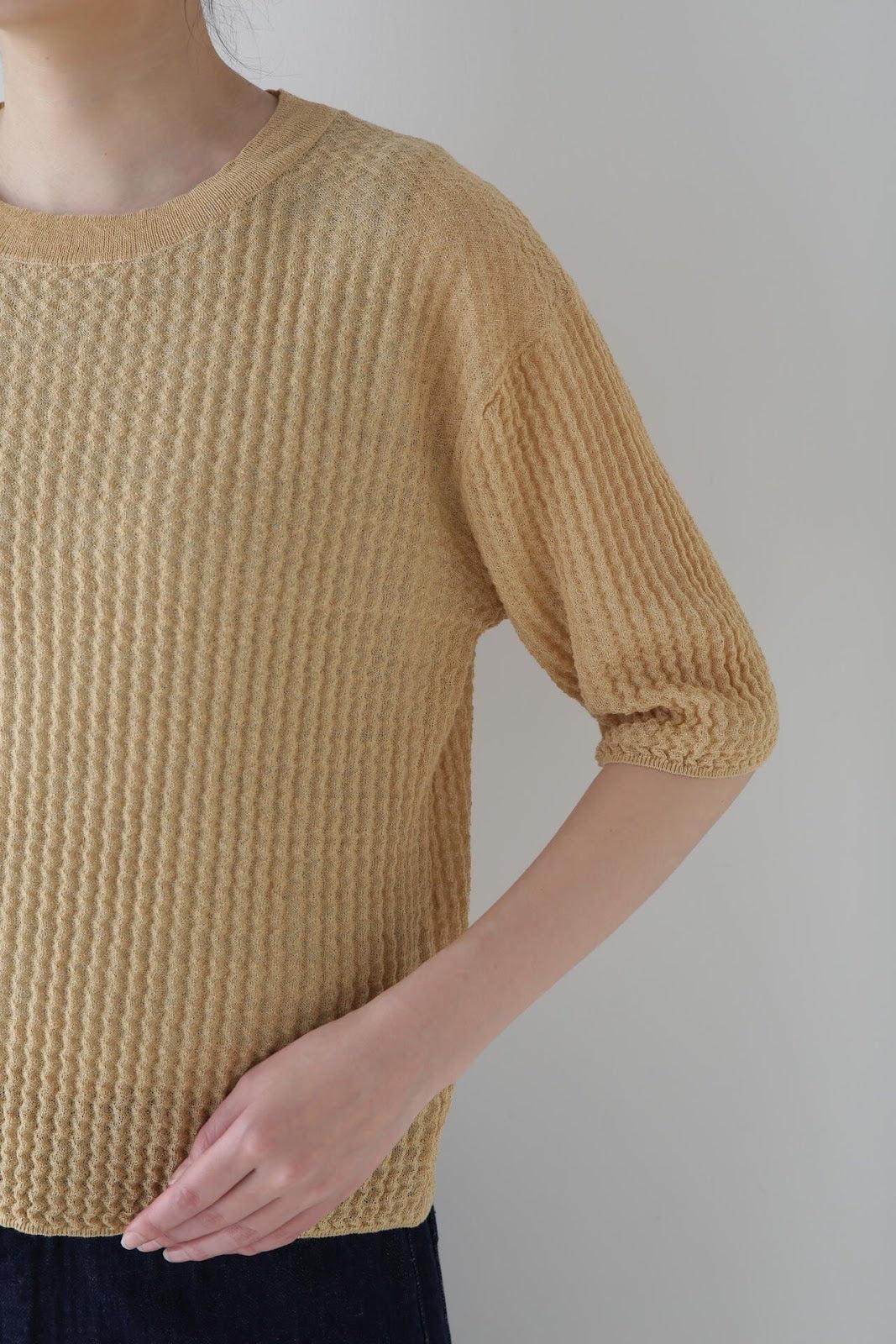 帶有迷人地理圖案的成人休閒設計針織衫 [設計要點] 這款針織套頭衫的特點是針織結構不均勻,外觀呈波浪狀。針織衫輪廓簡潔,穿著者可以盡情享受圖案的質感和色彩。面料採用高麻混紡,手感乾爽。面料具有天然纖維的優雅光澤。推薦搭配:這款單品具有地理圖案,可作為單品穿著。特別適合搭配牛仔褲,是旅行場景中的推薦單品。