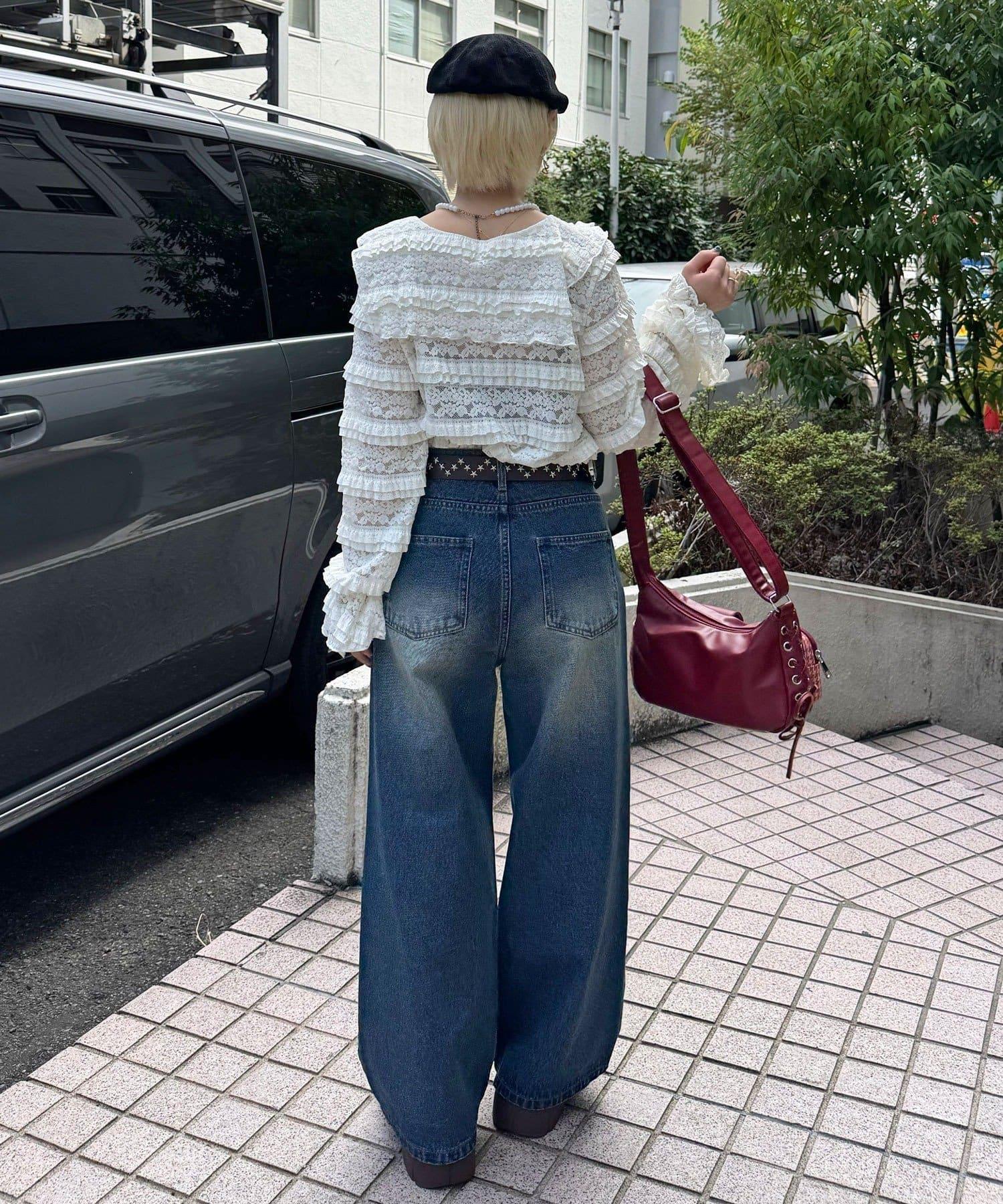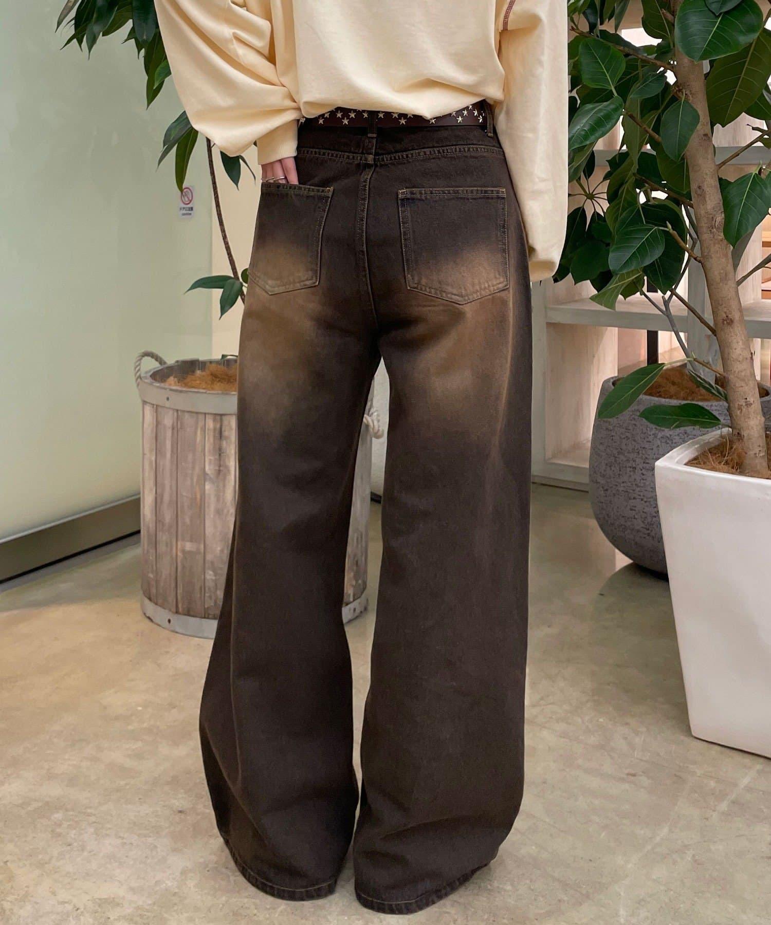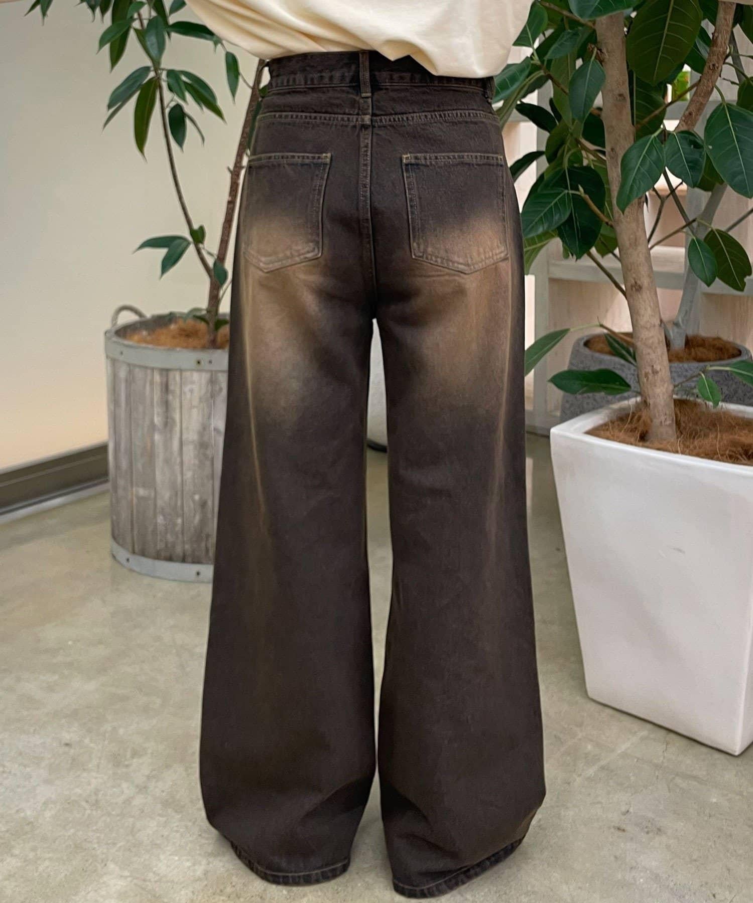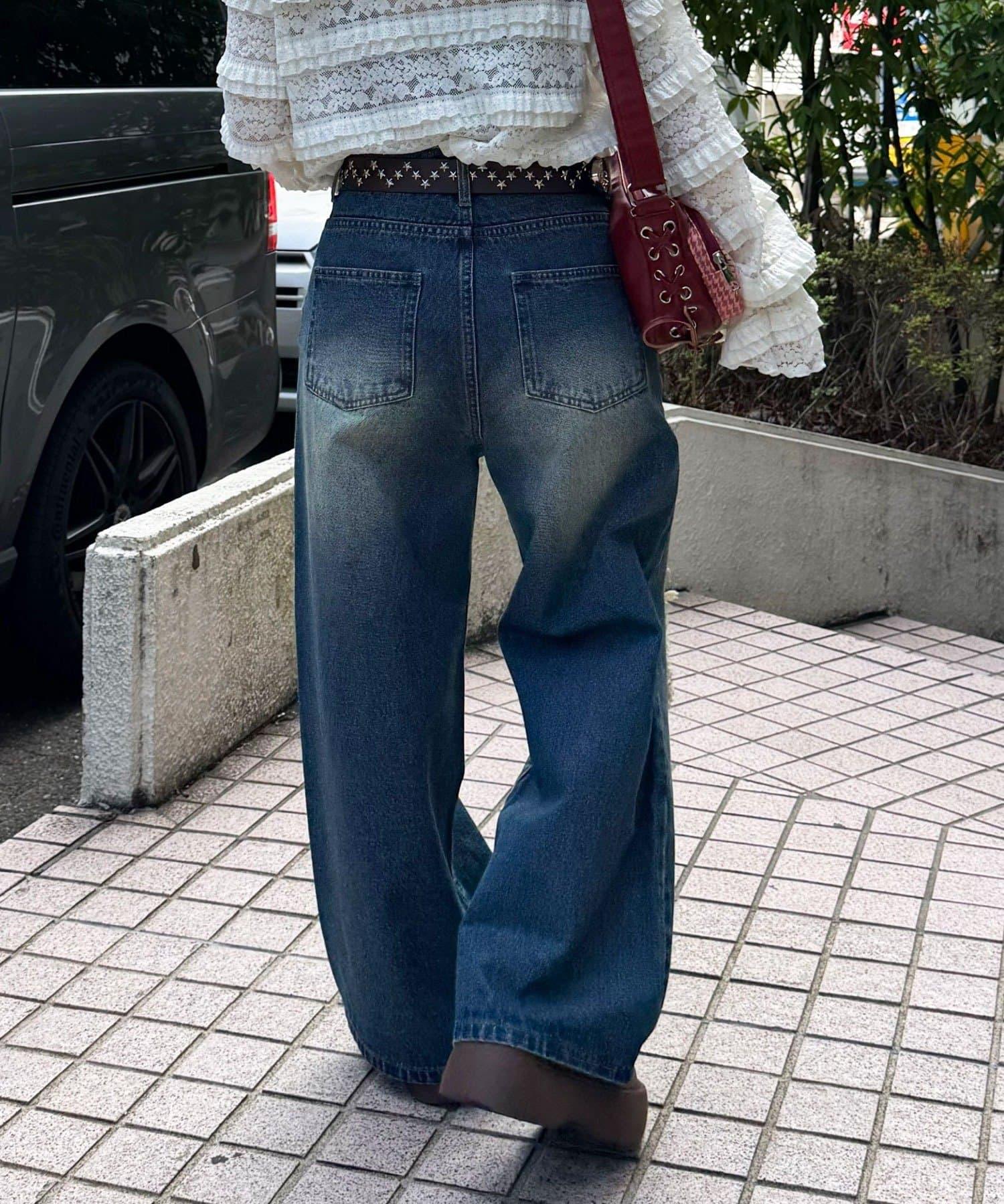 寬幅牛仔布採用大膽、醒目的破損處理。