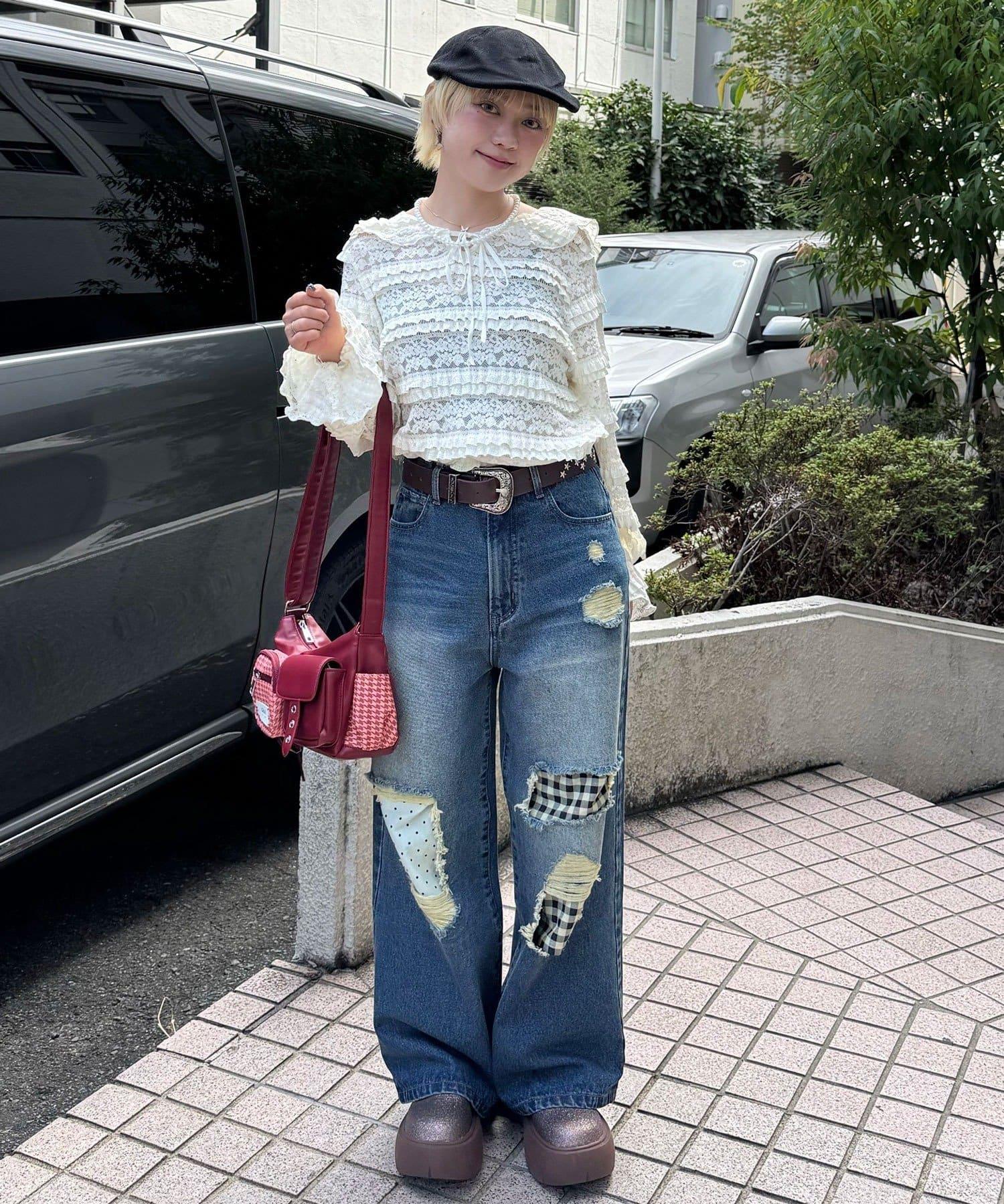 搭配蕾絲、流蘇等甜美上衣,打造混搭造型。