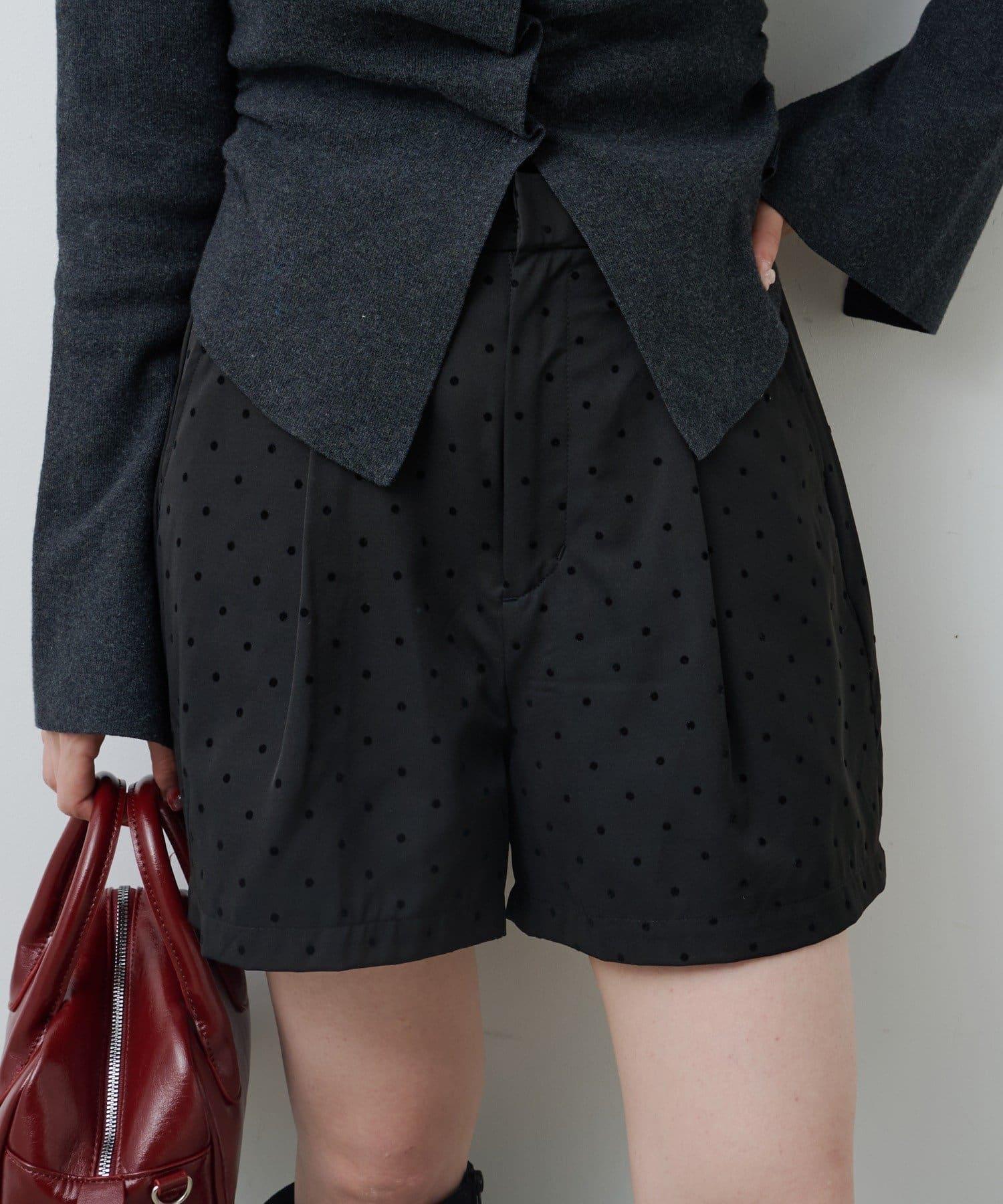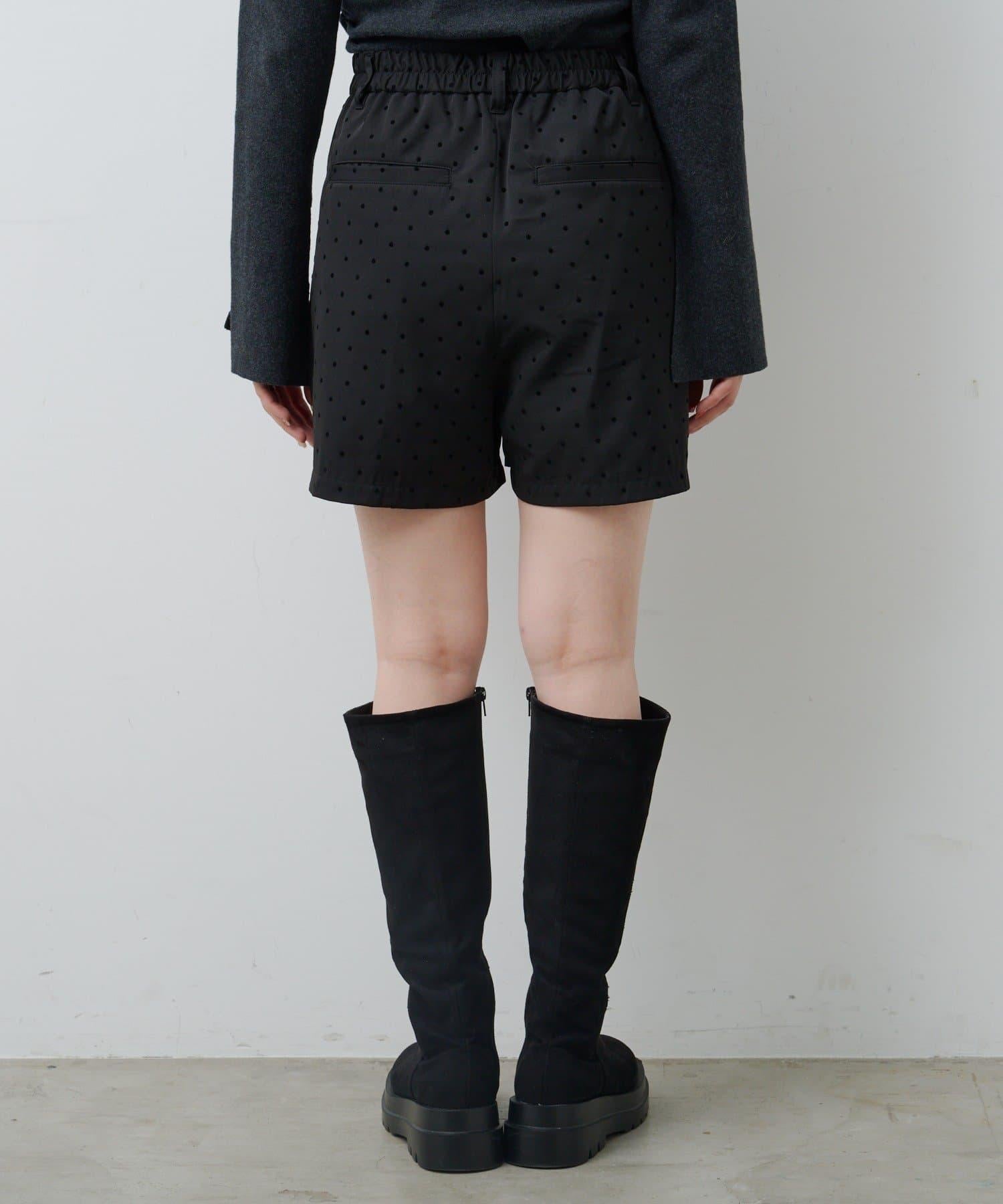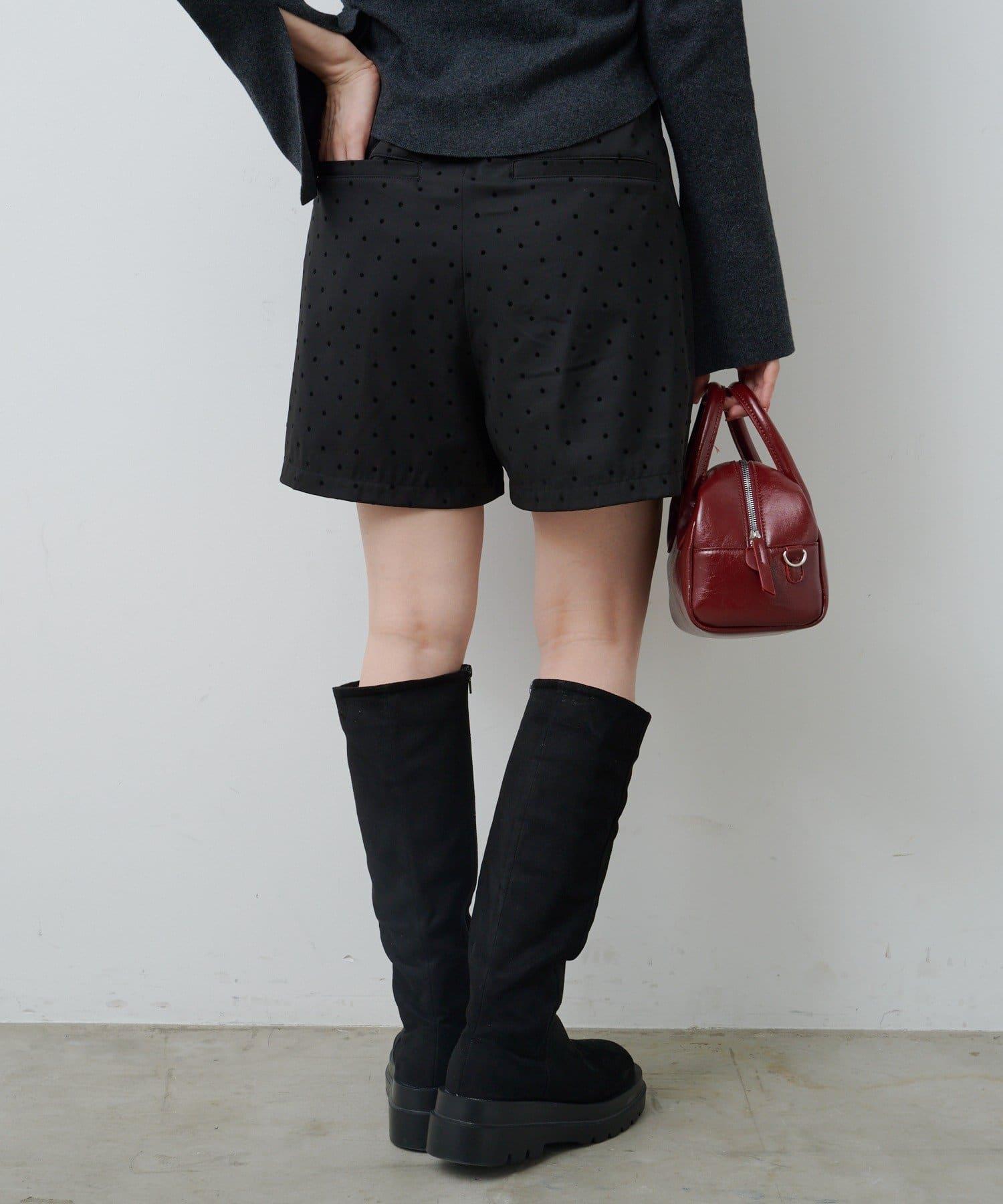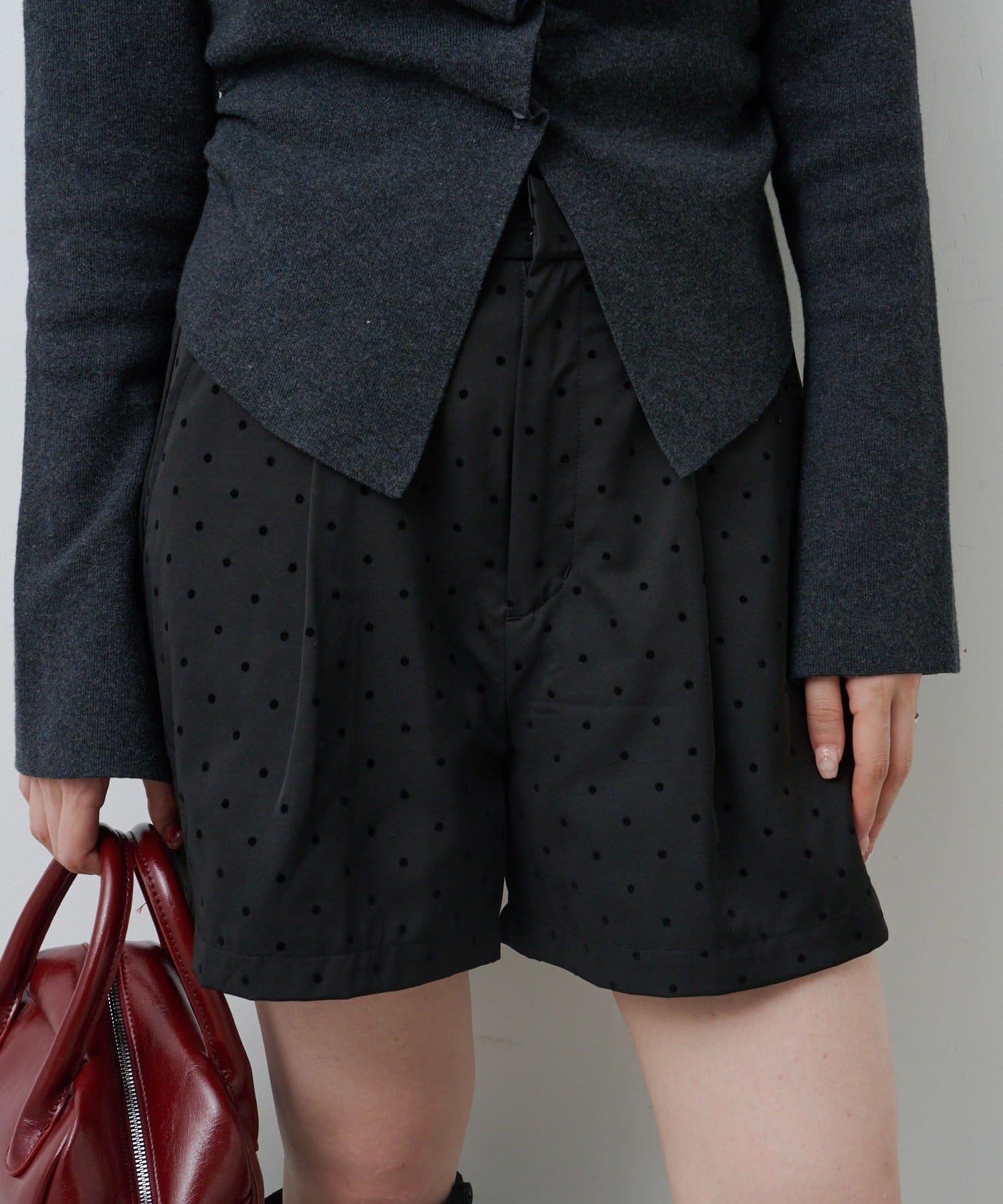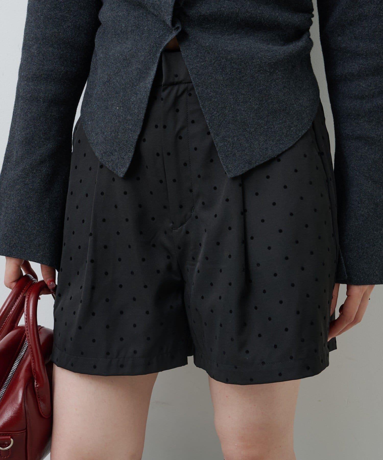 這款短褲採用閃亮的綢緞製成,並飾有小圓點圖案,給人以優雅迷人的印象。