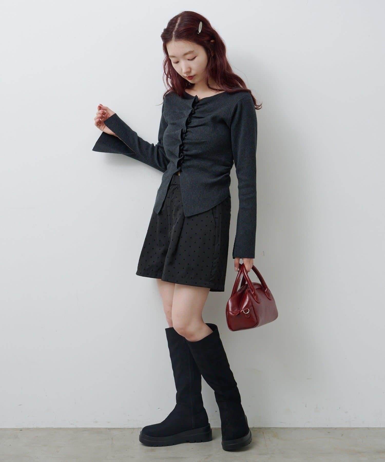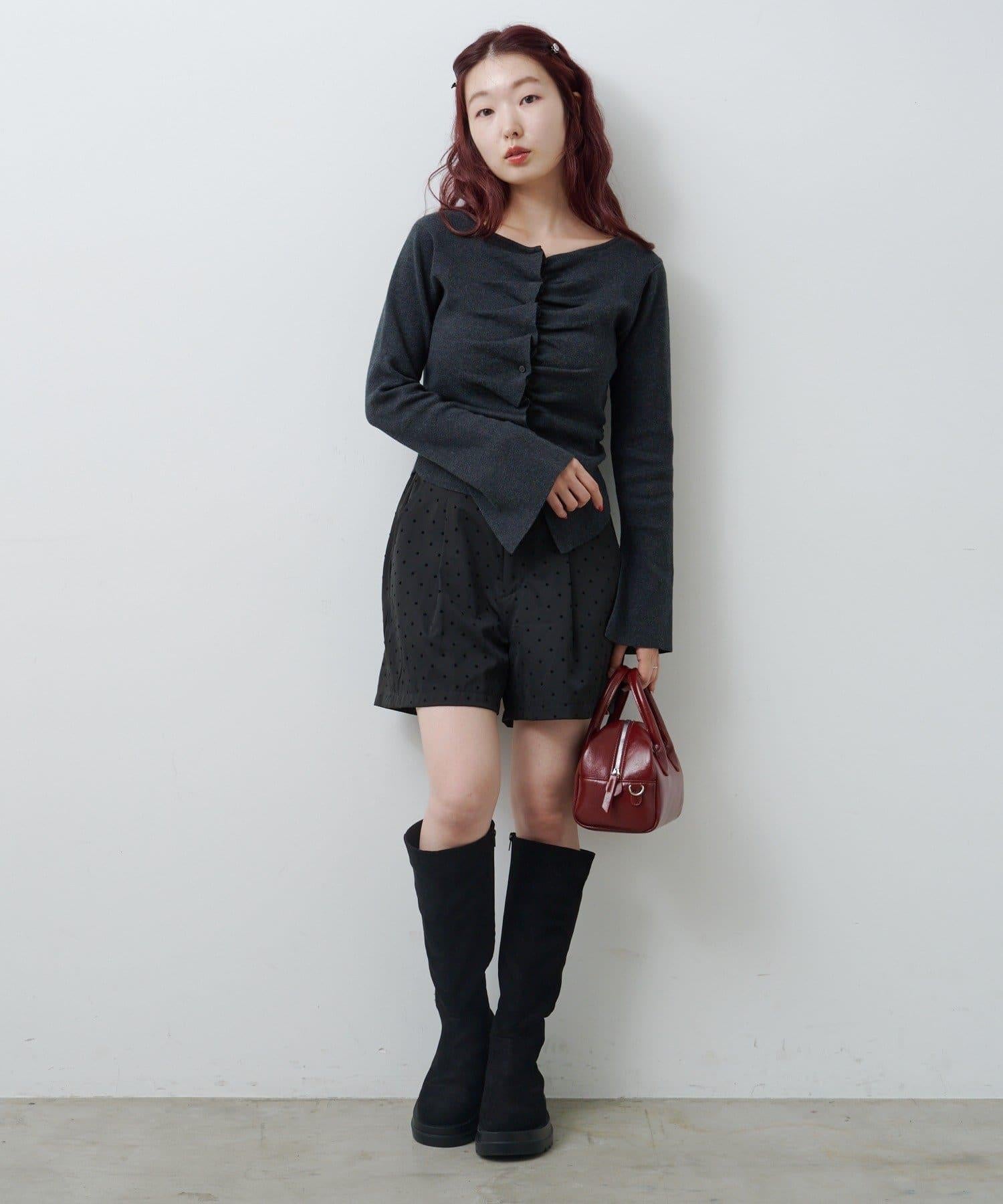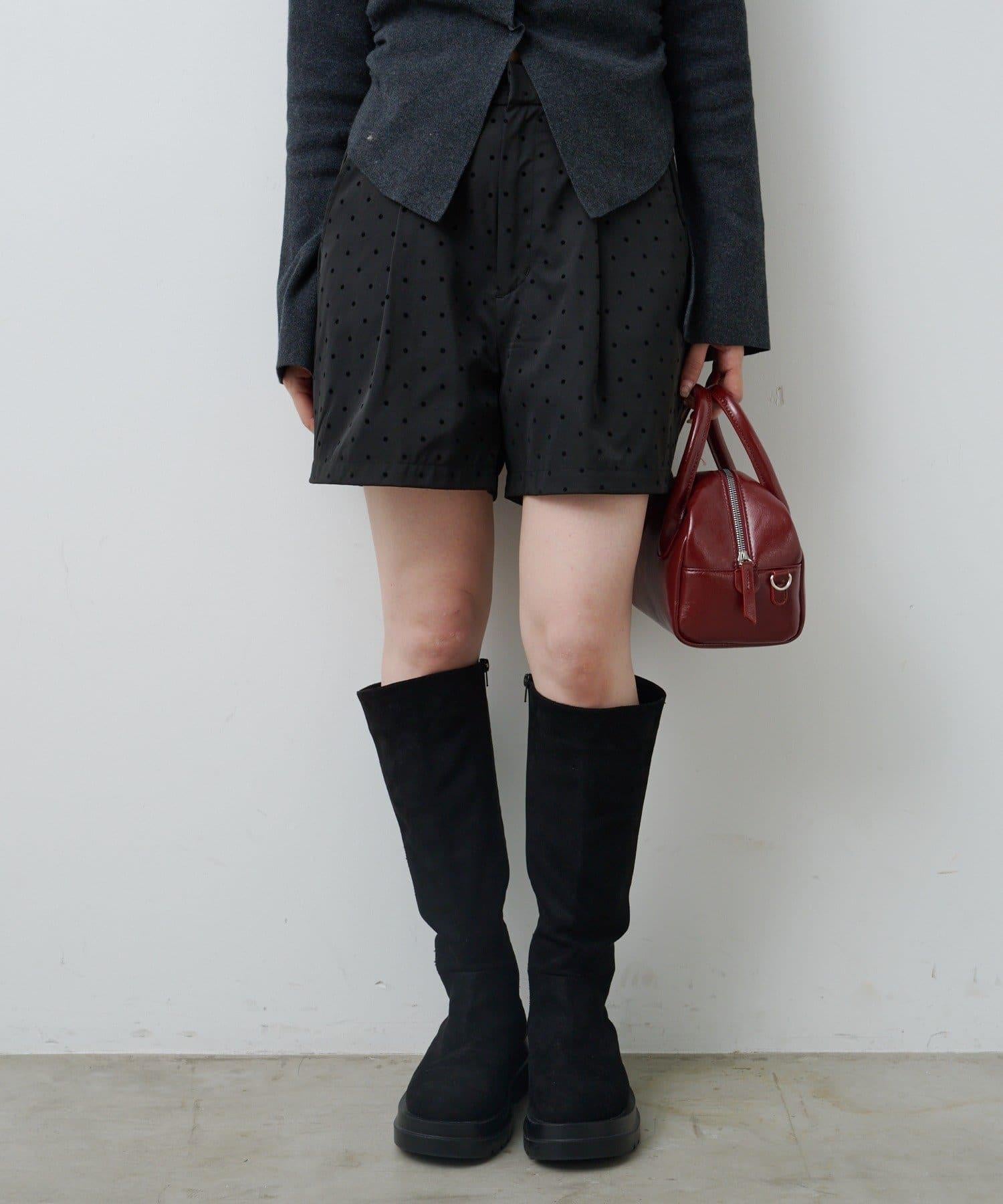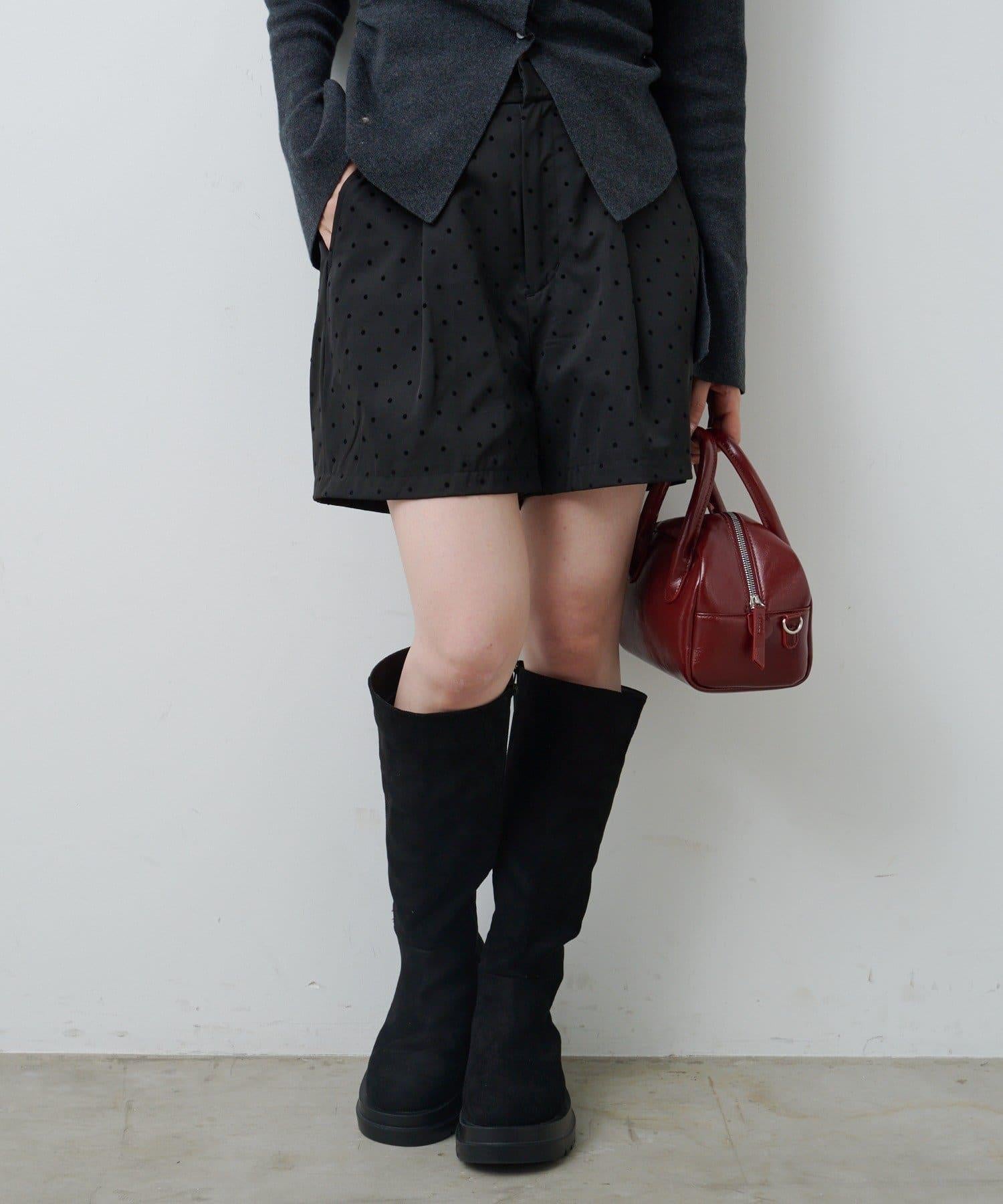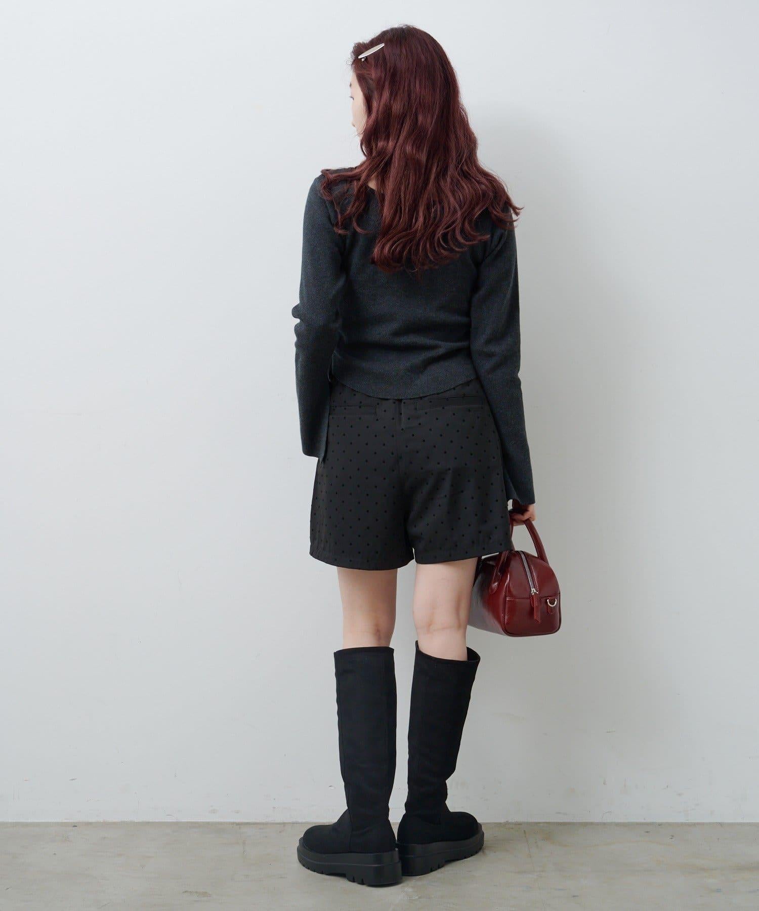 這款短褲採用閃亮的綢緞製成,並飾有小圓點圖案,給人以優雅迷人的印象。