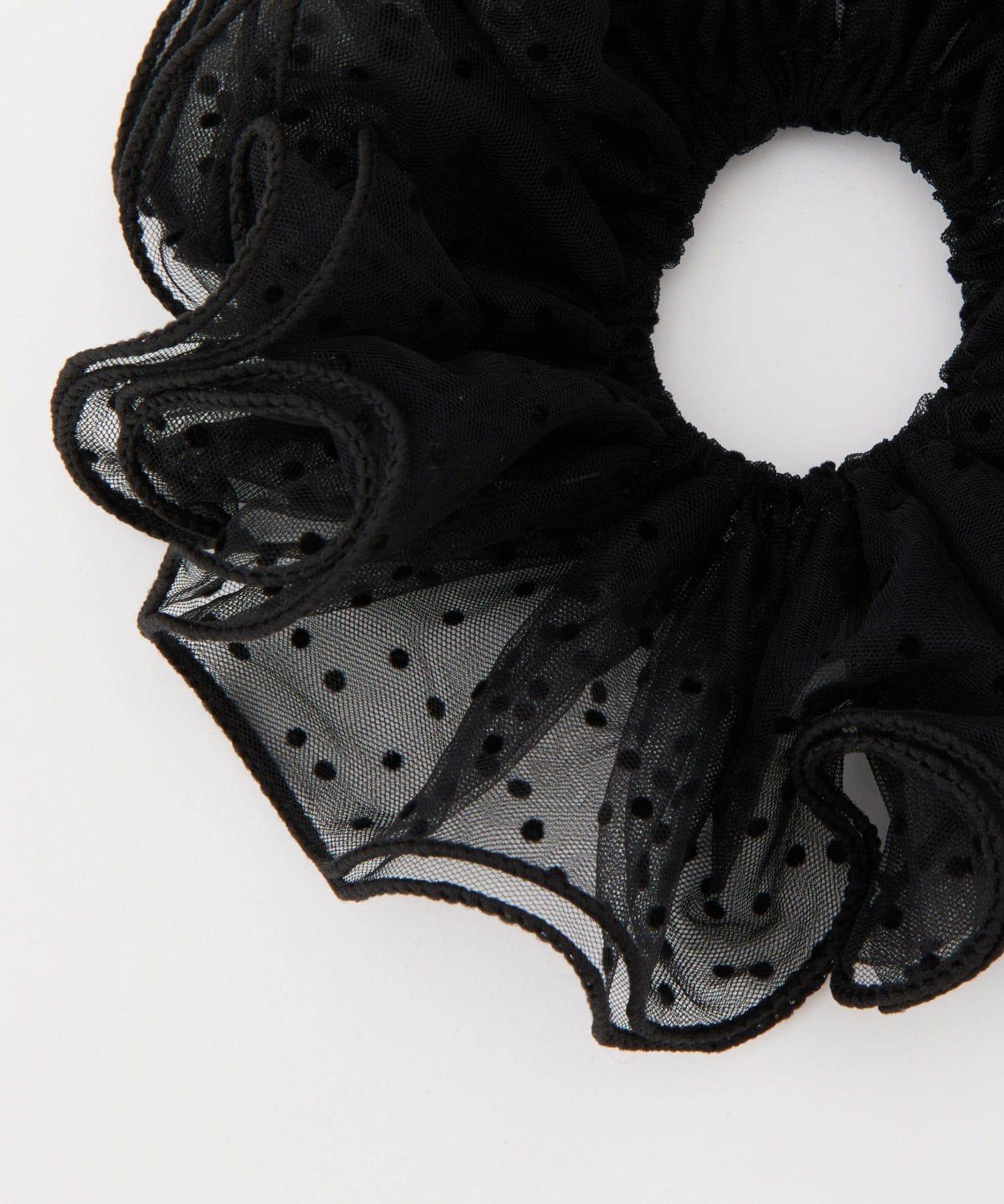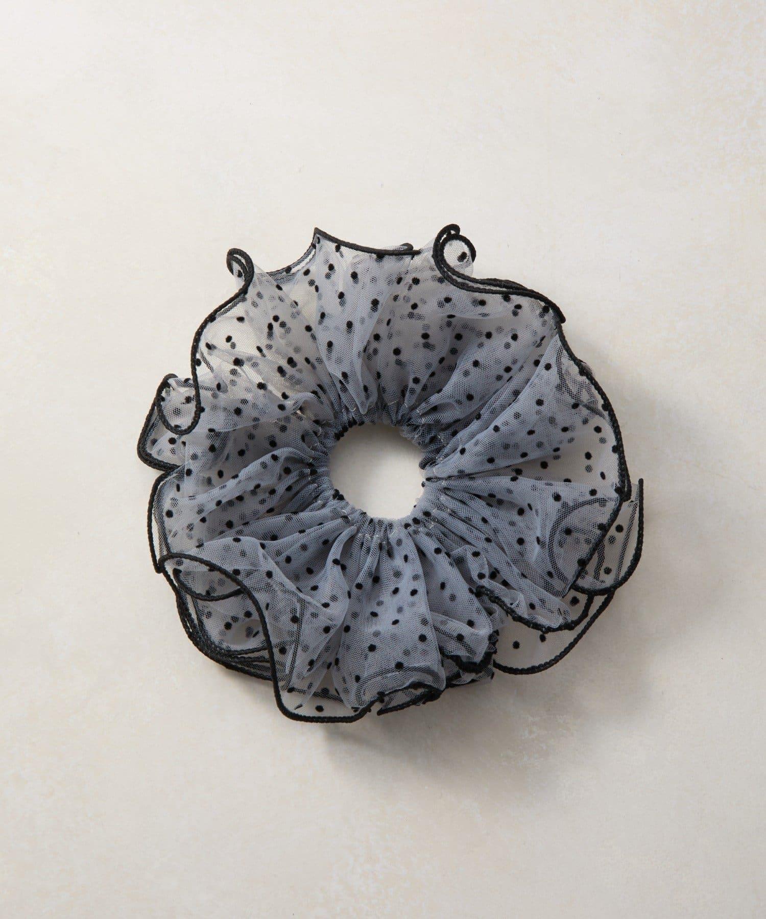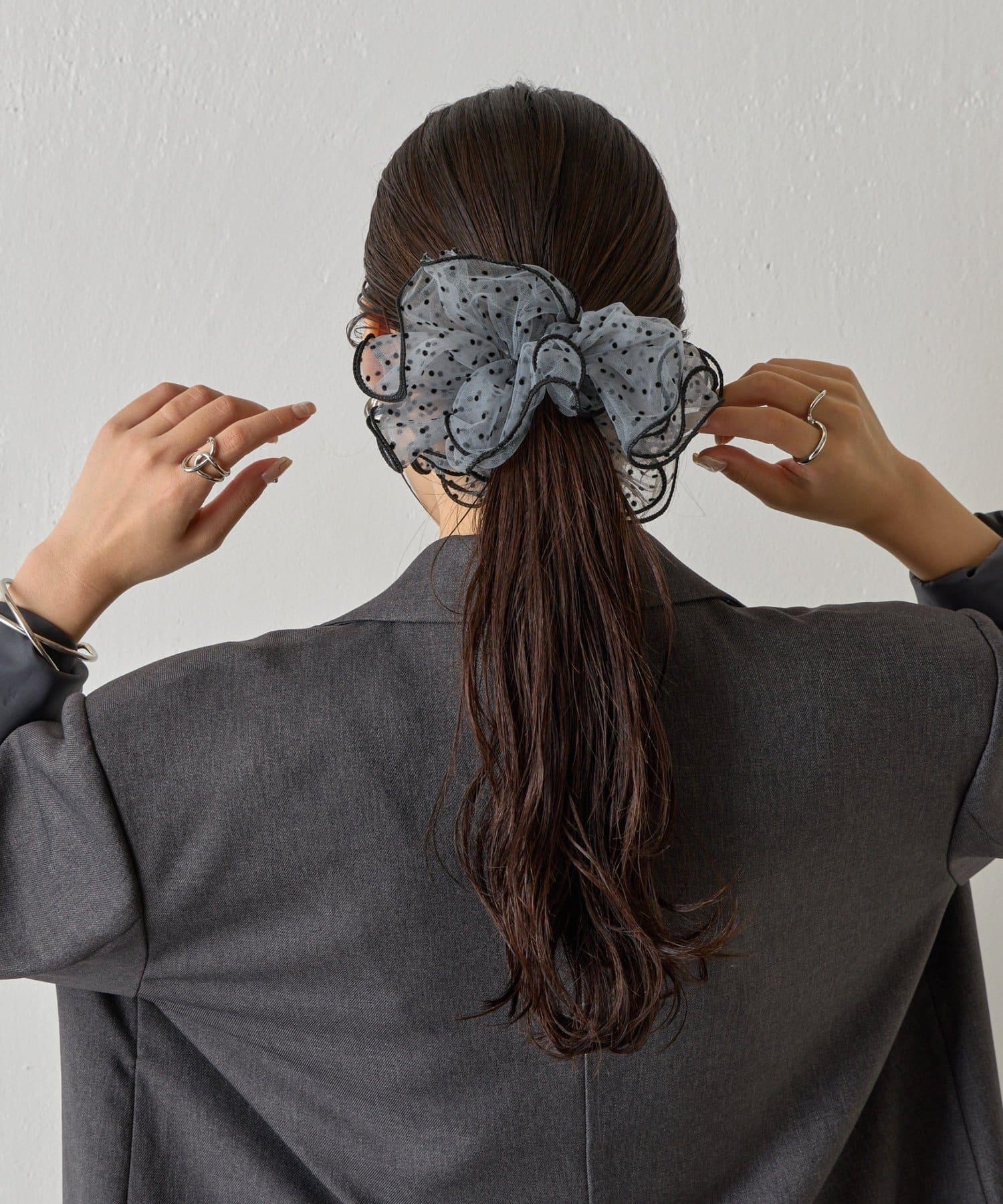 蓬鬆的頭巾採用點狀圖案的薄紗面料設計、