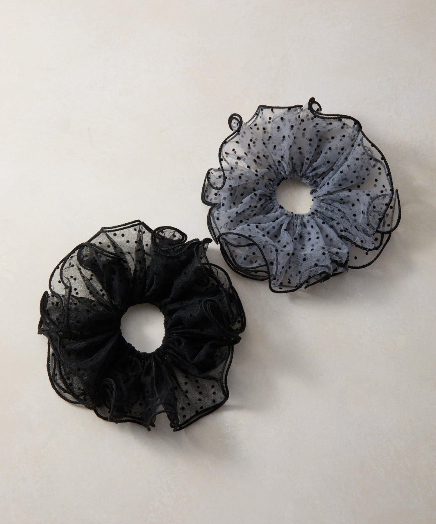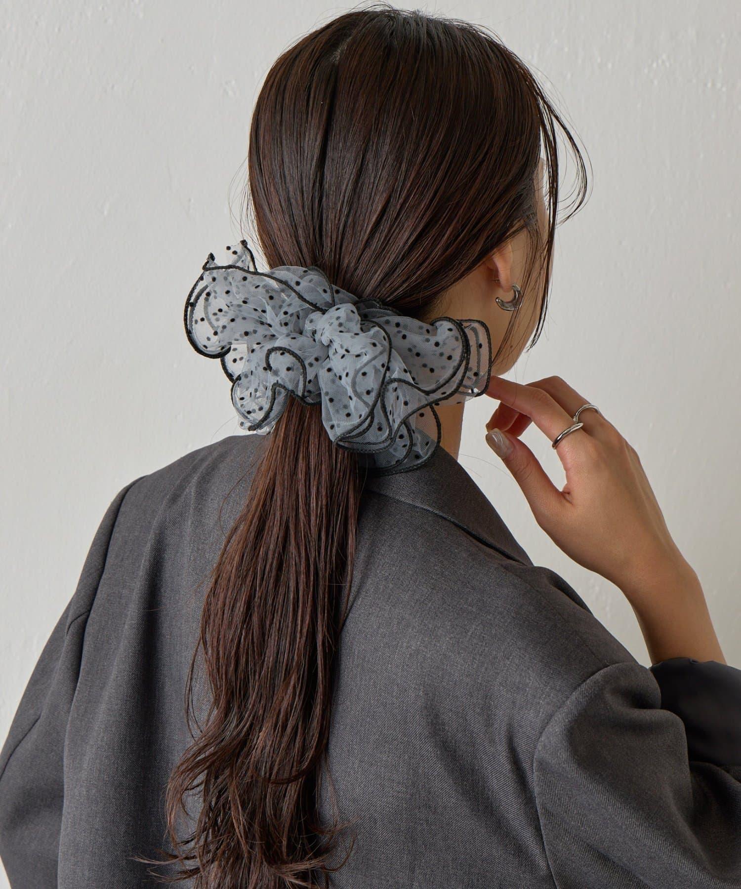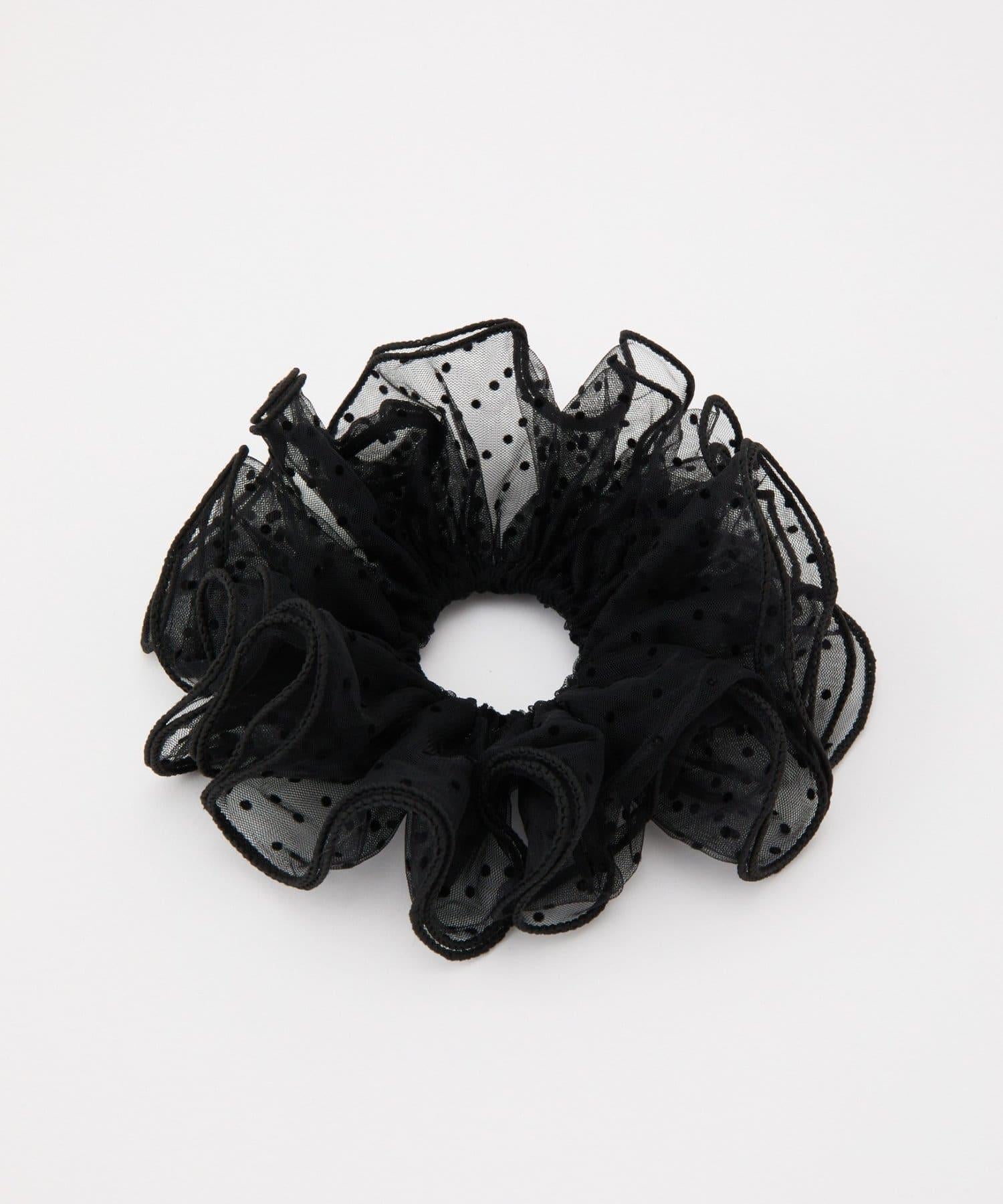 蓬鬆的頭巾採用點狀圖案的薄紗面料設計、