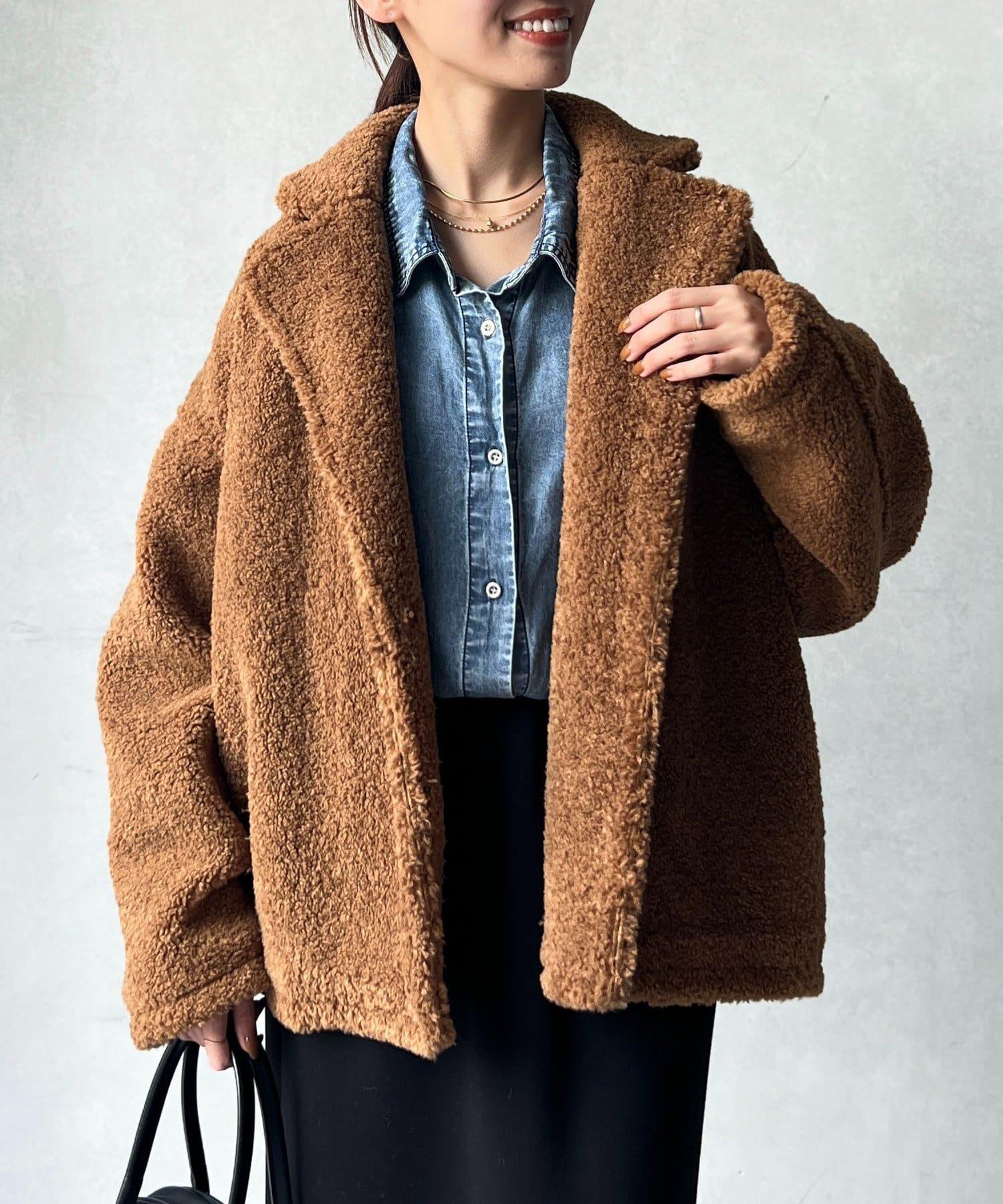 這款當季外衣的蓬鬆蟒蛇頭飾和短款長度不僅能保暖,還能讓你穿上它就能展現出時髦的造型。