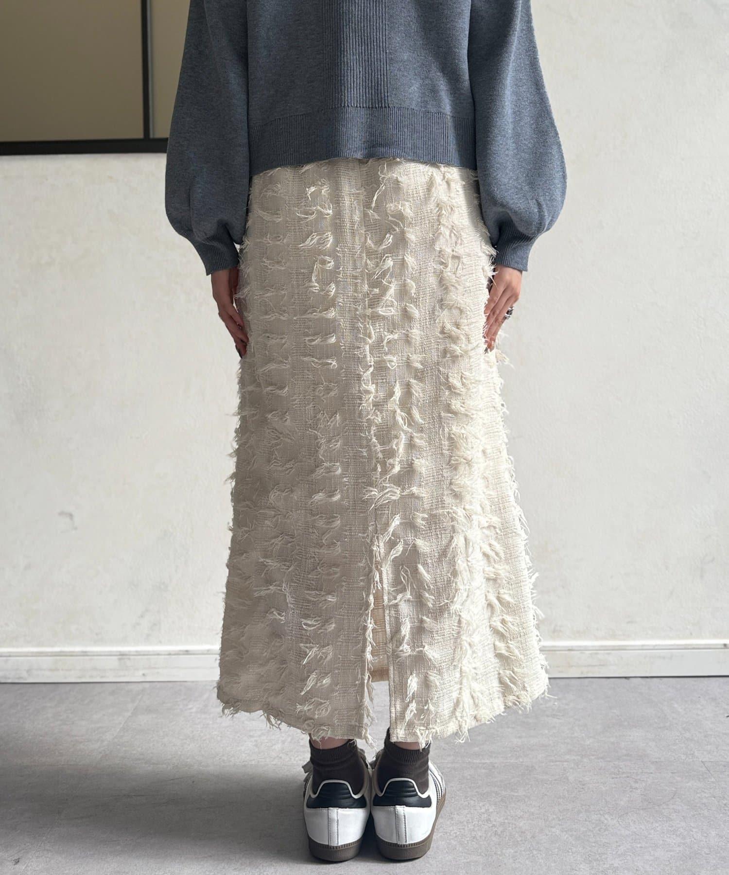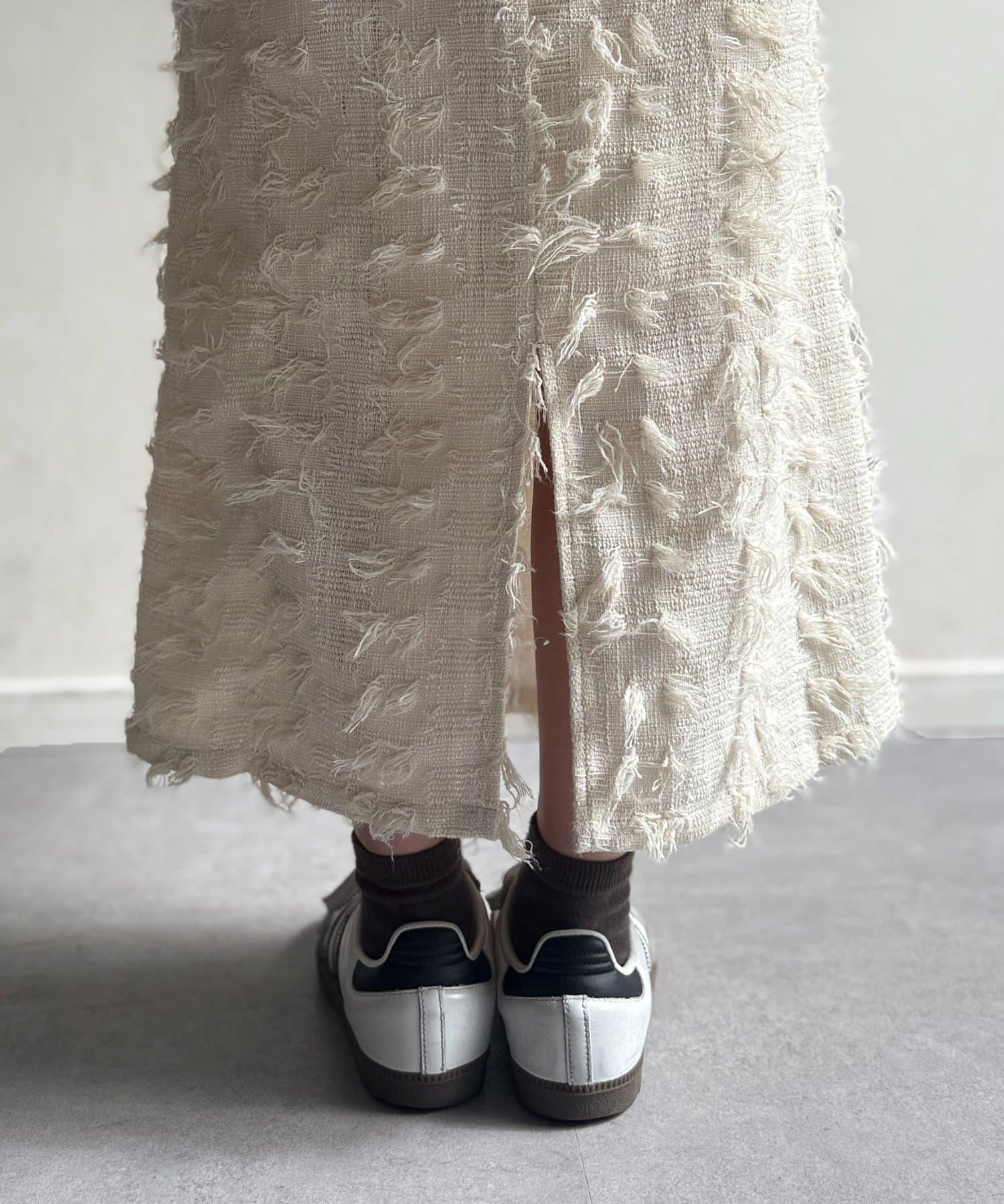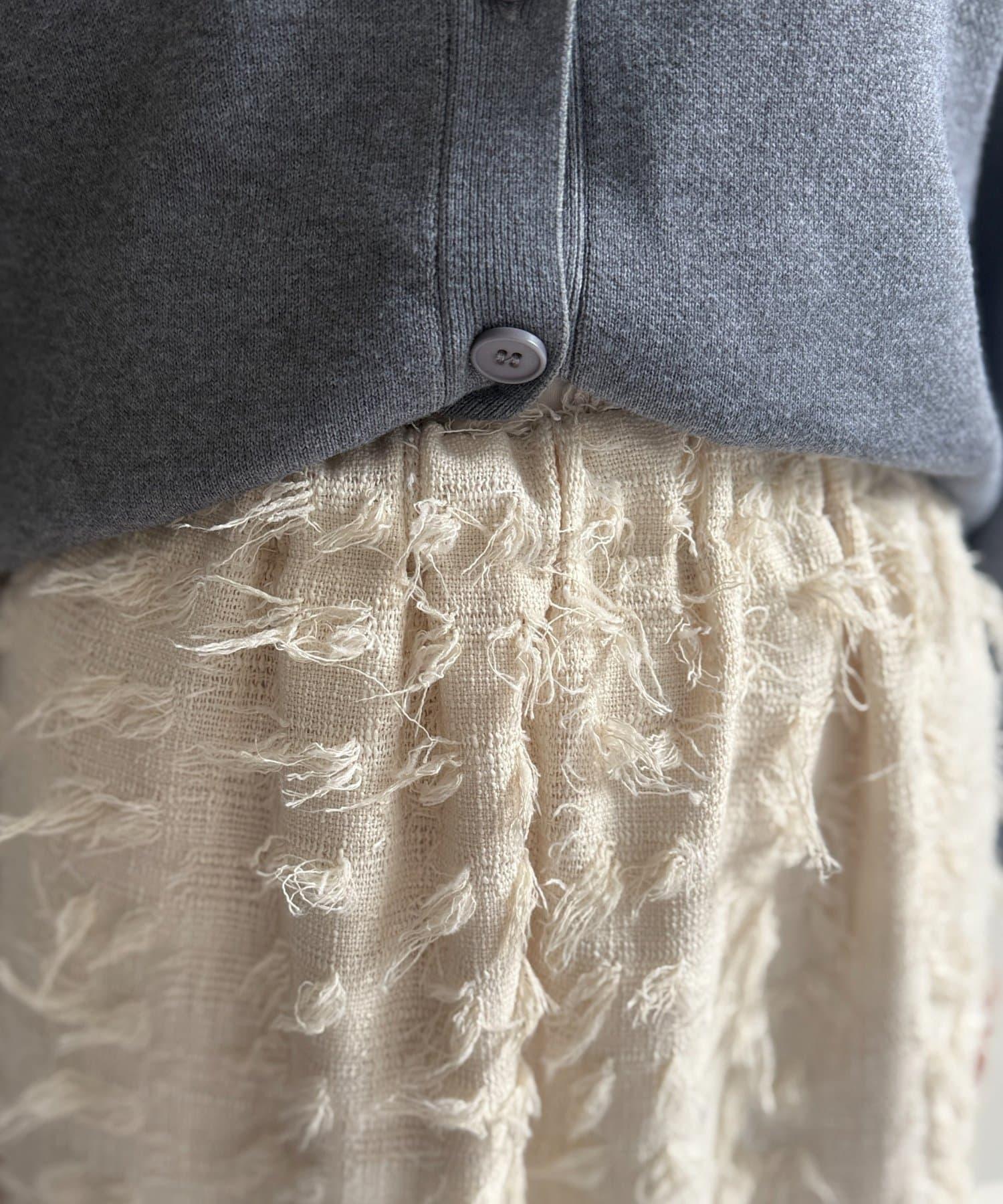 這款裙裝採用豐盈的流蘇材質,為您的搭配增添亮點。