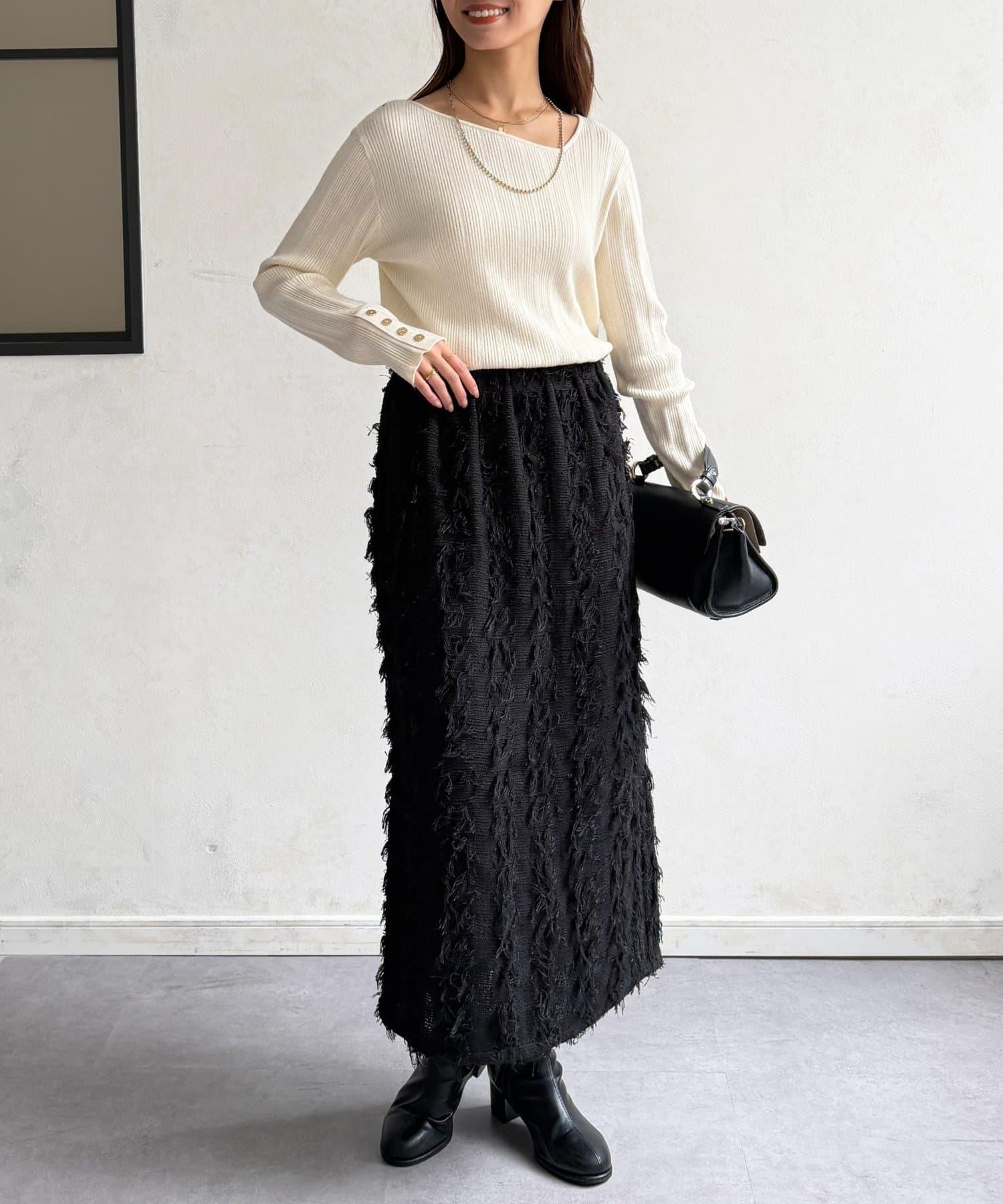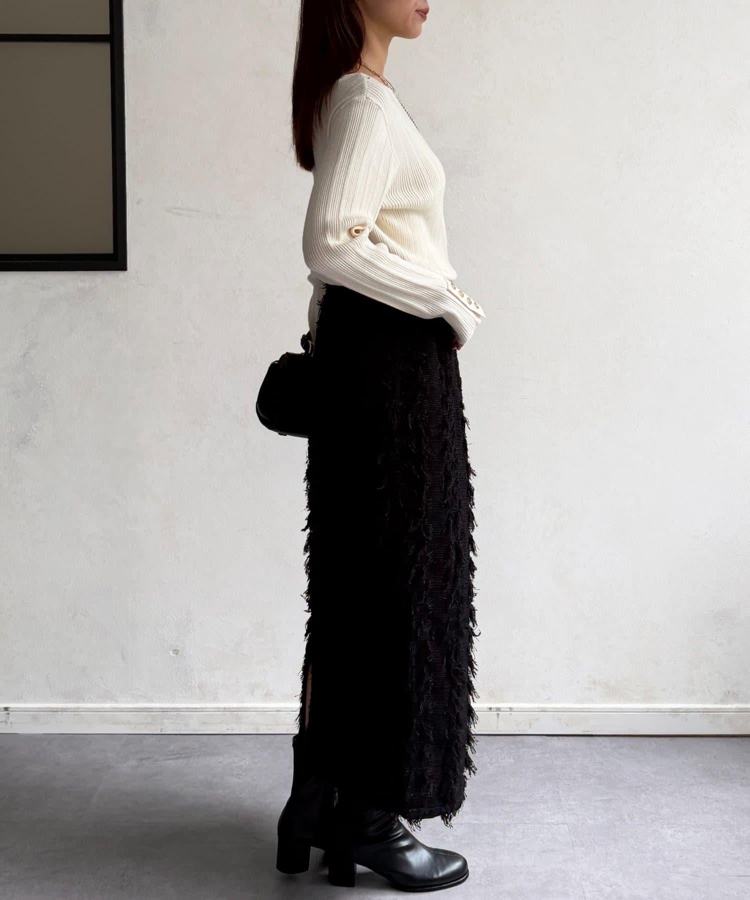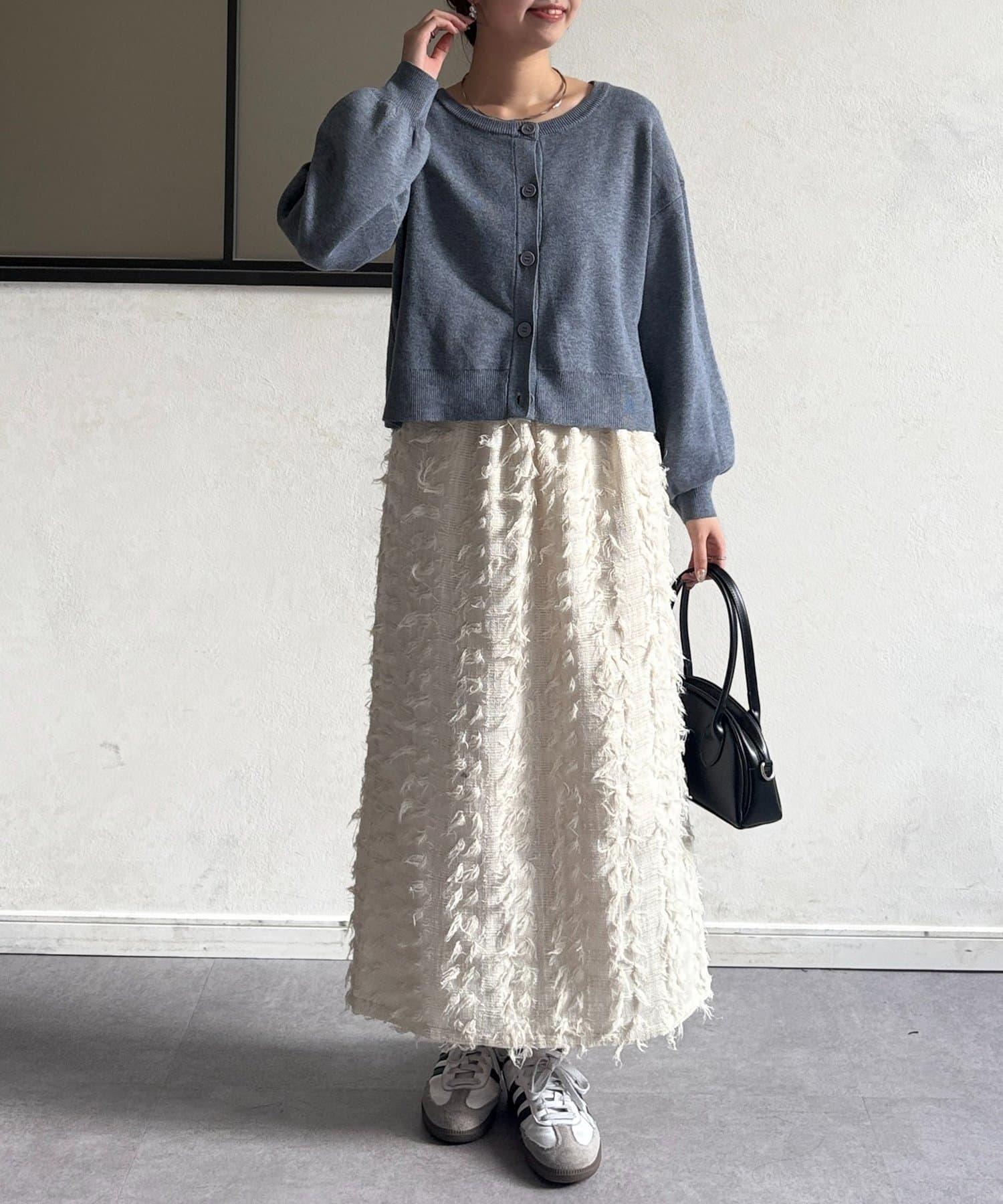 這款裙裝採用豐盈的流蘇材質,為您的搭配增添亮點。