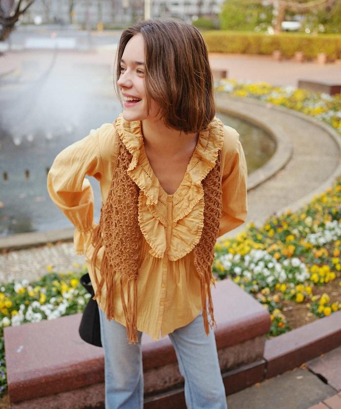 這款馬甲非常適合搭配流蘇襯衫、蕾絲襯衫和牛仔褲。