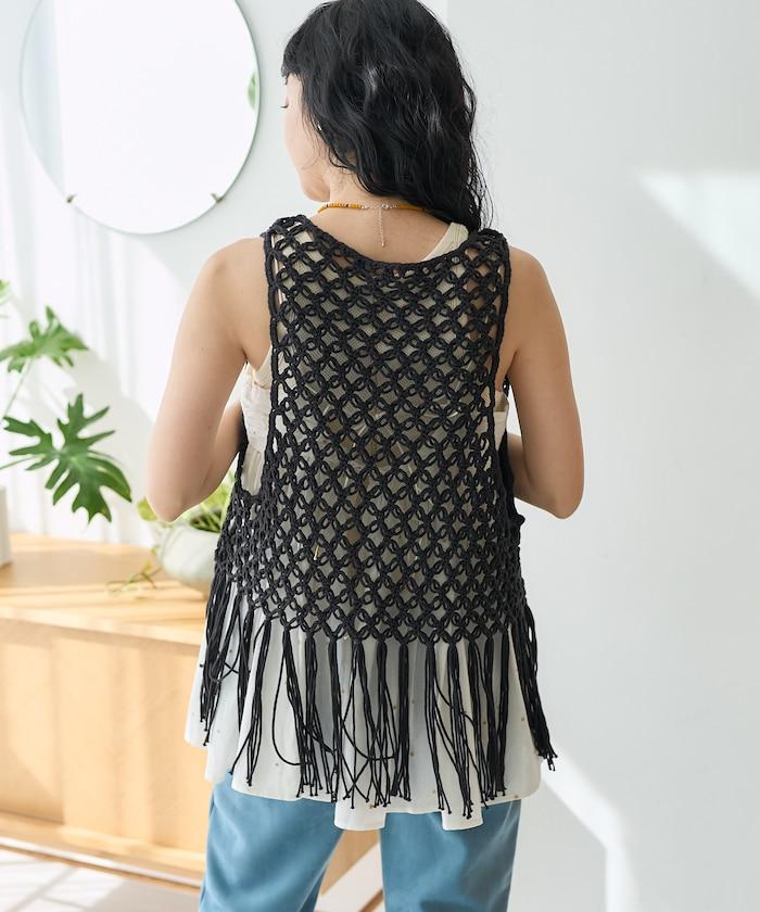 這款流蘇馬甲採用手工編織工藝,極具吸引力。