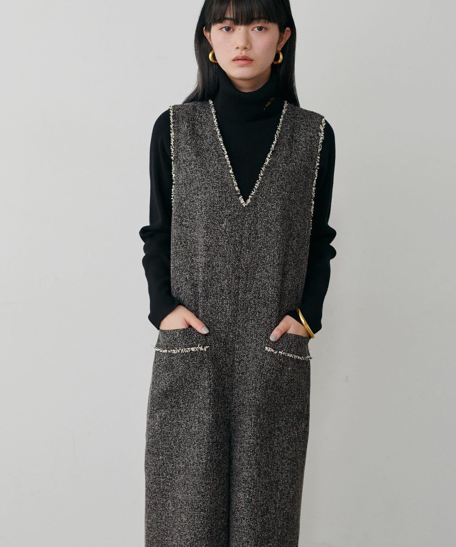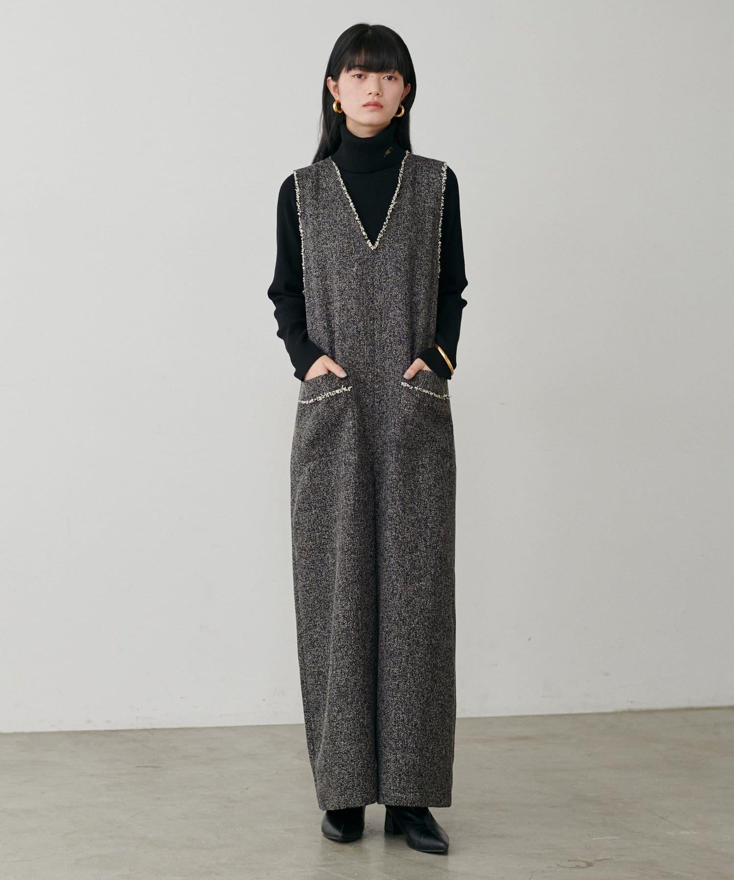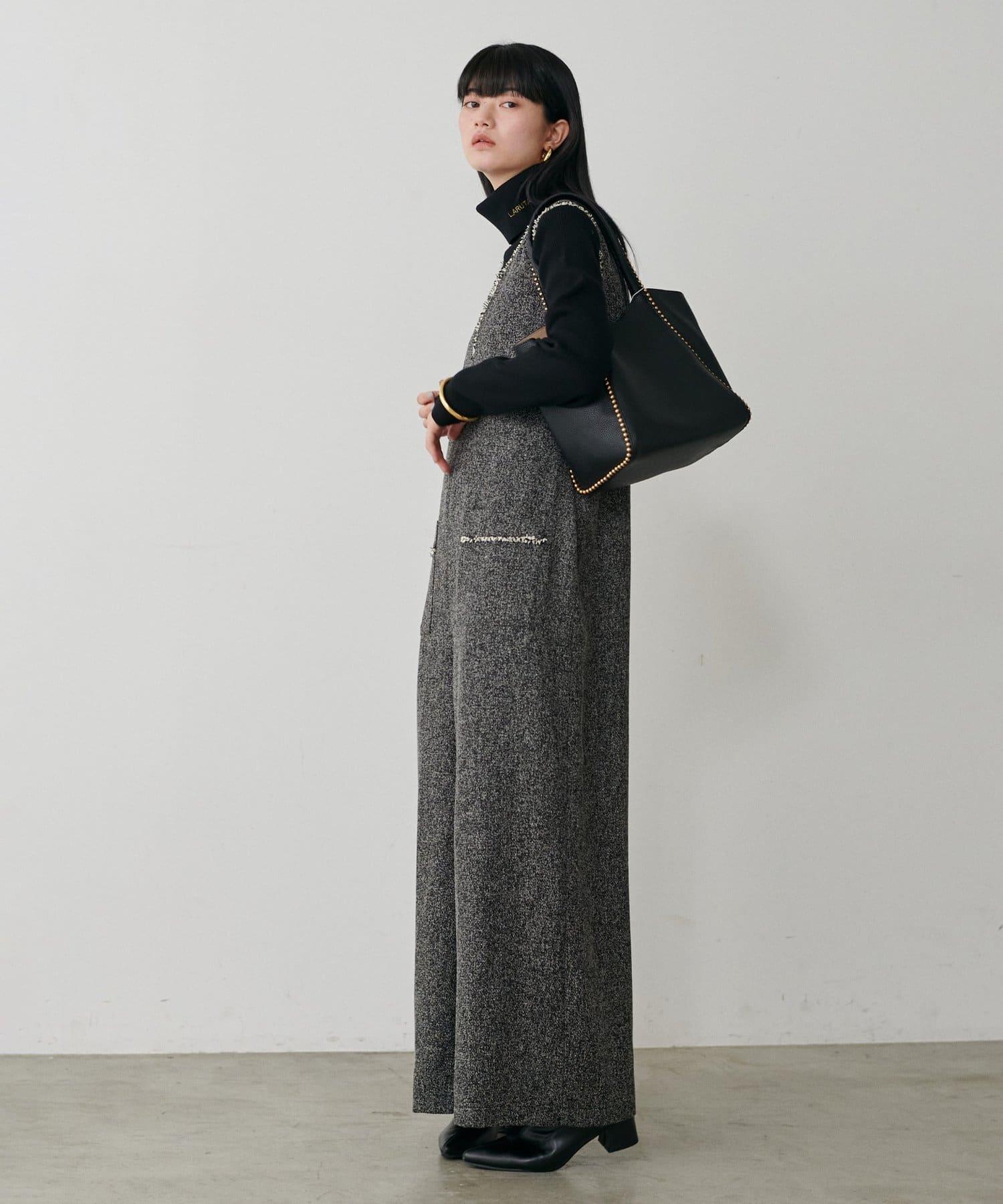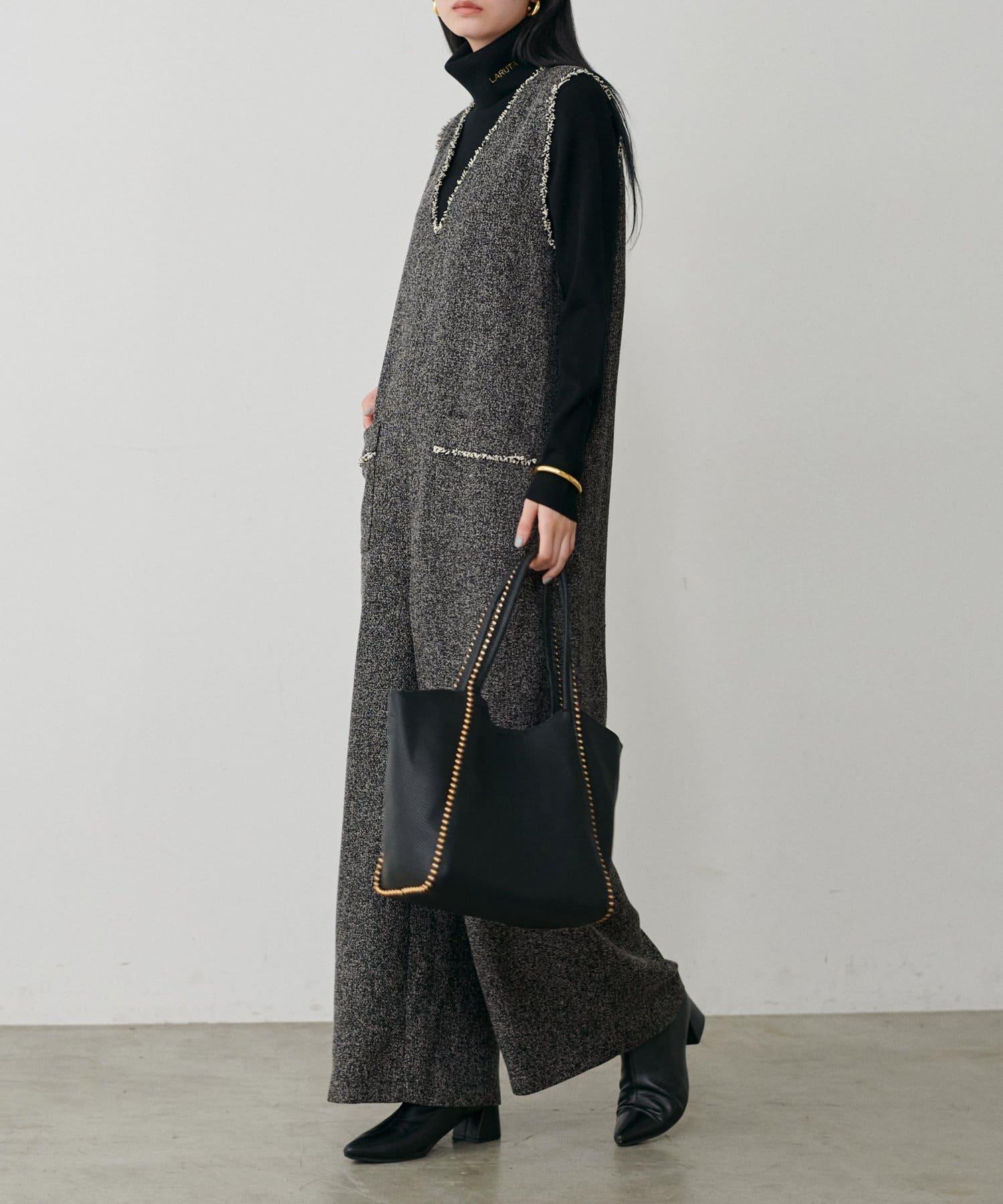 利用配飾和手袋提升斜紋軟呢的優雅氣質,給人簡約而精緻的印象。