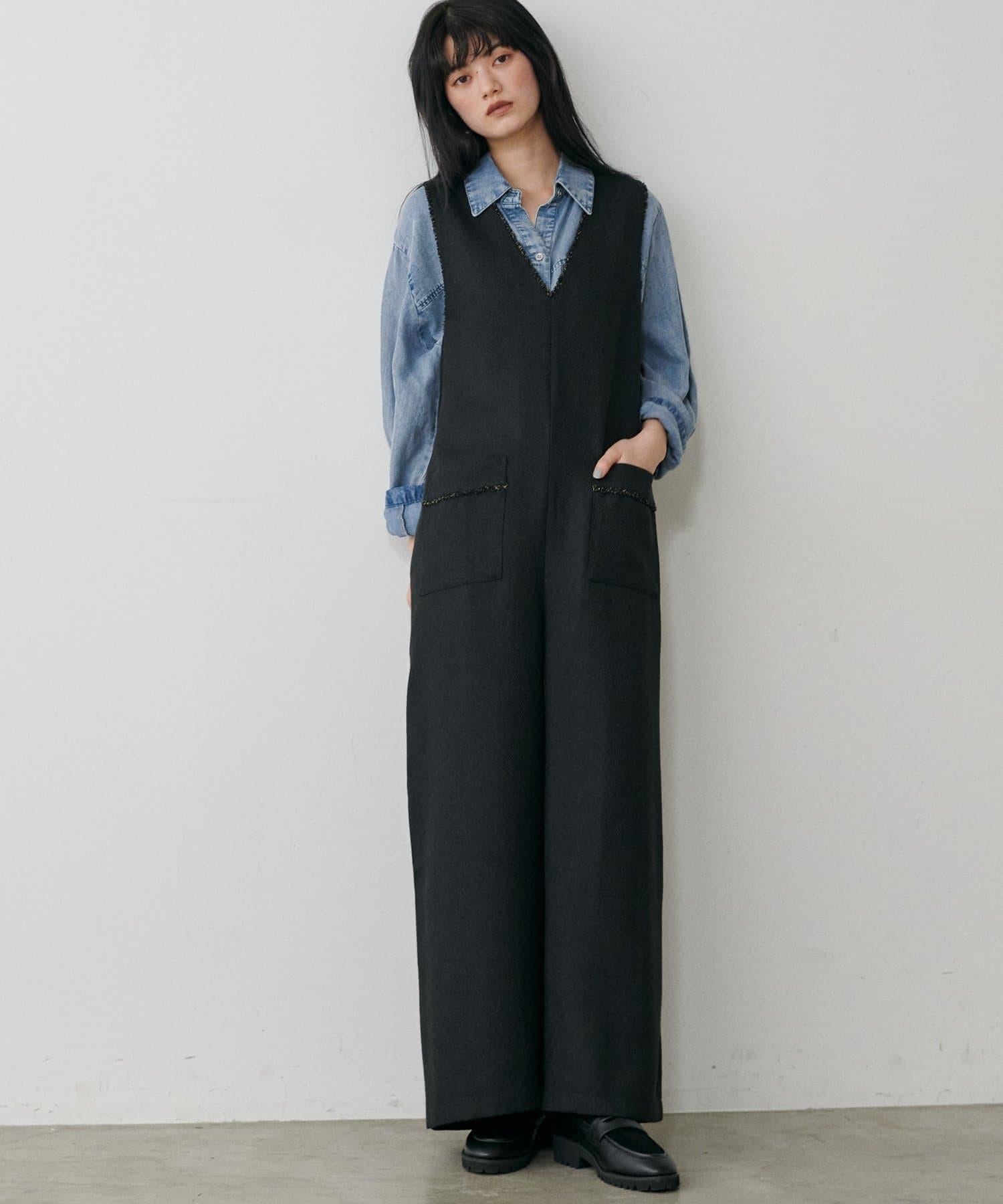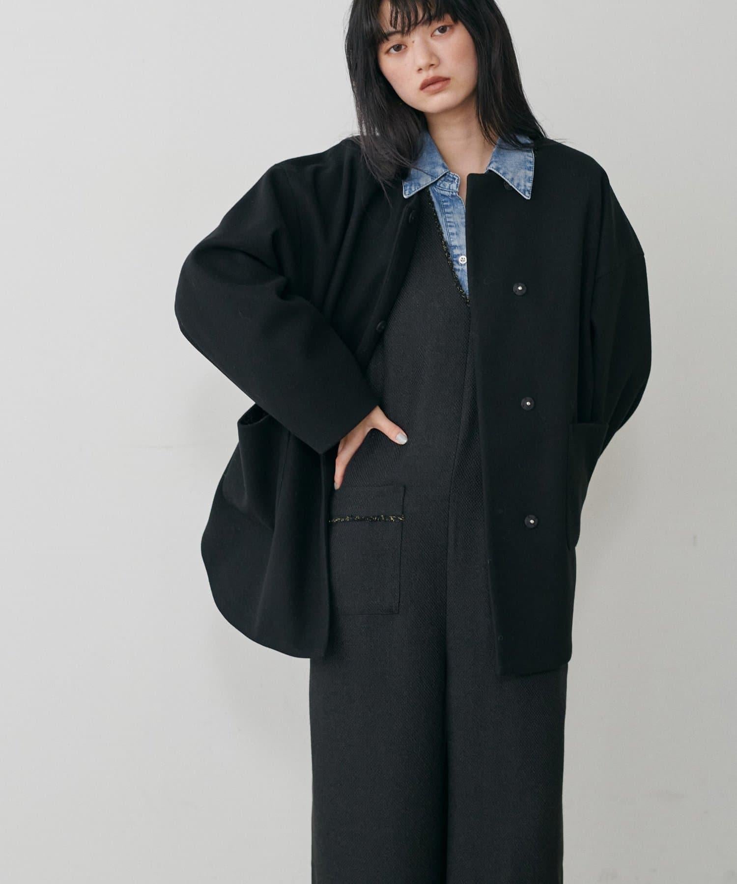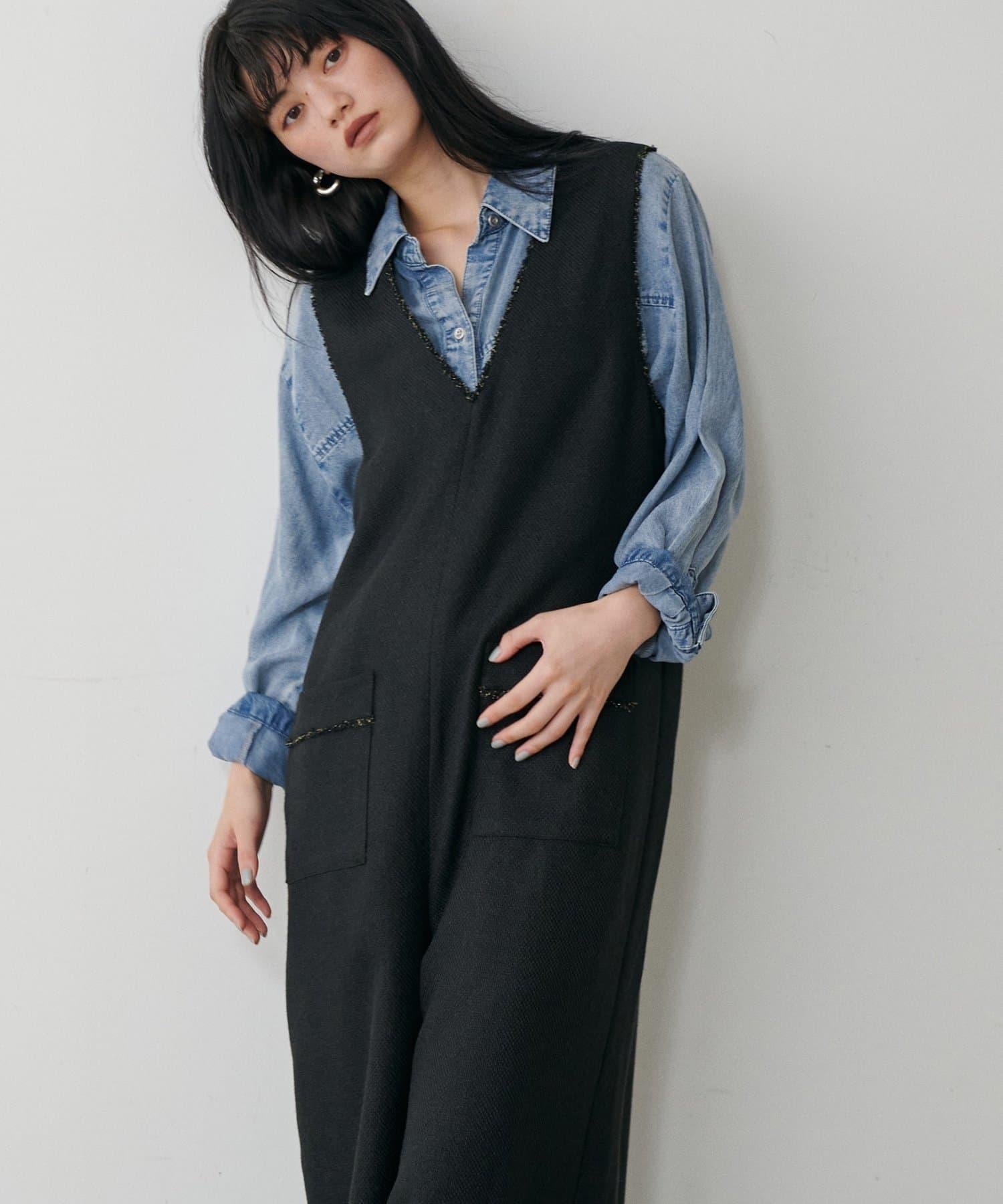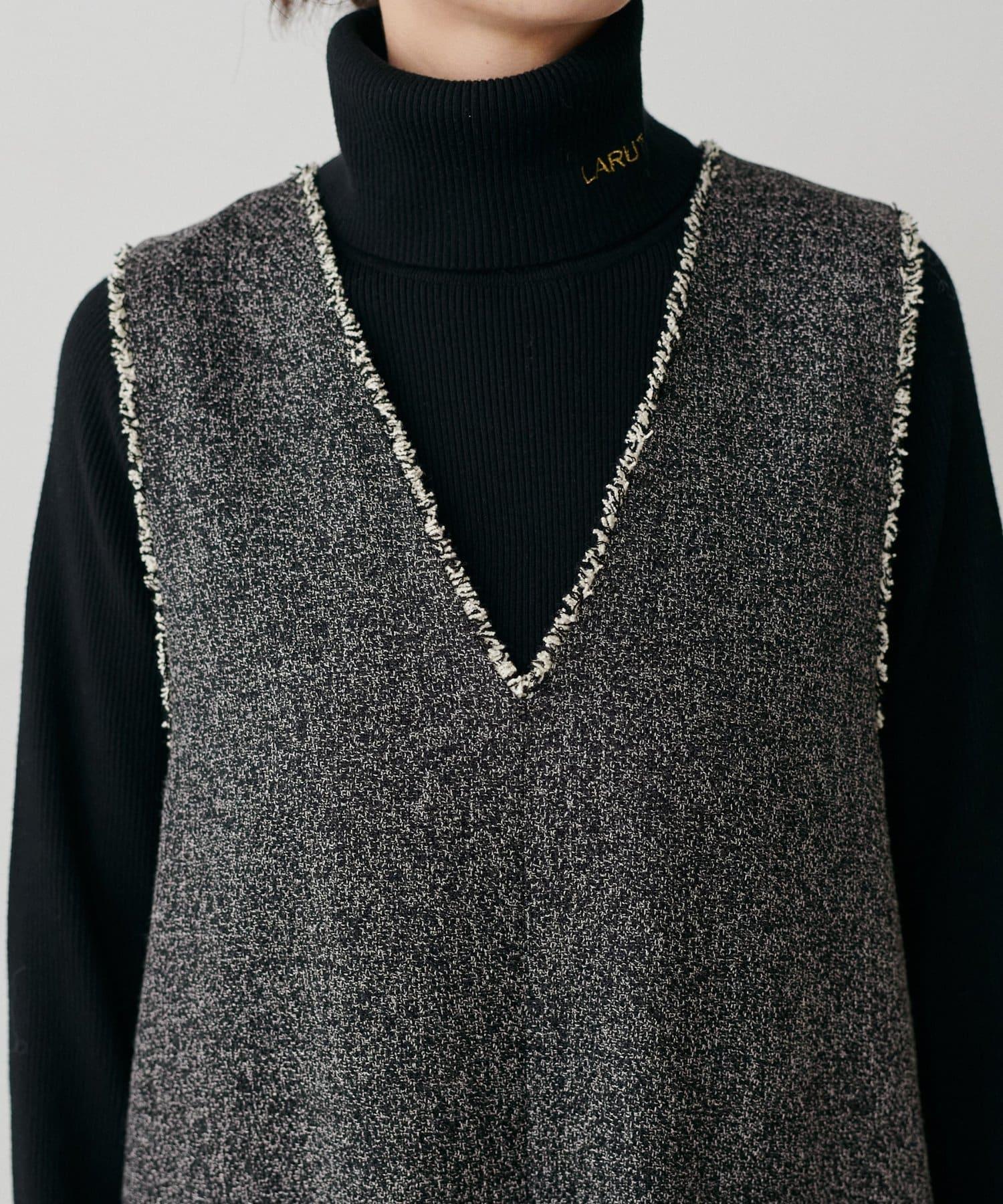 深 V 領的設計使臉部看起來乾淨利落,與內層疊穿也非常好看。