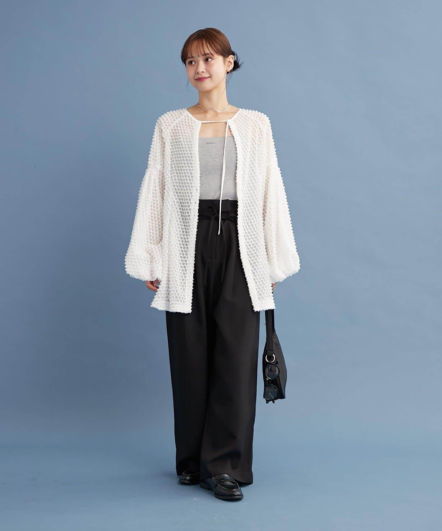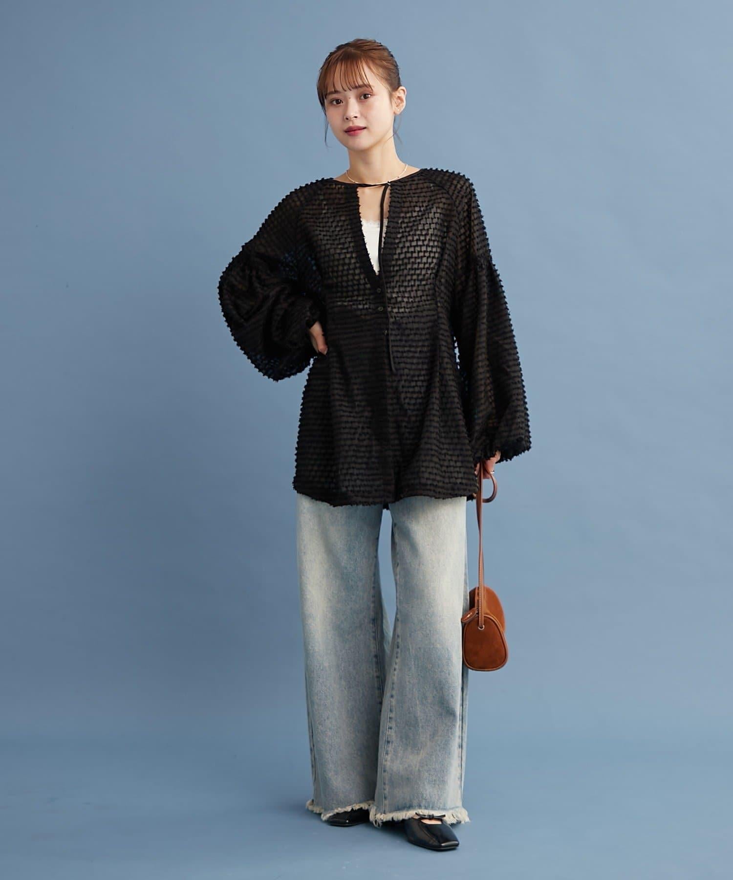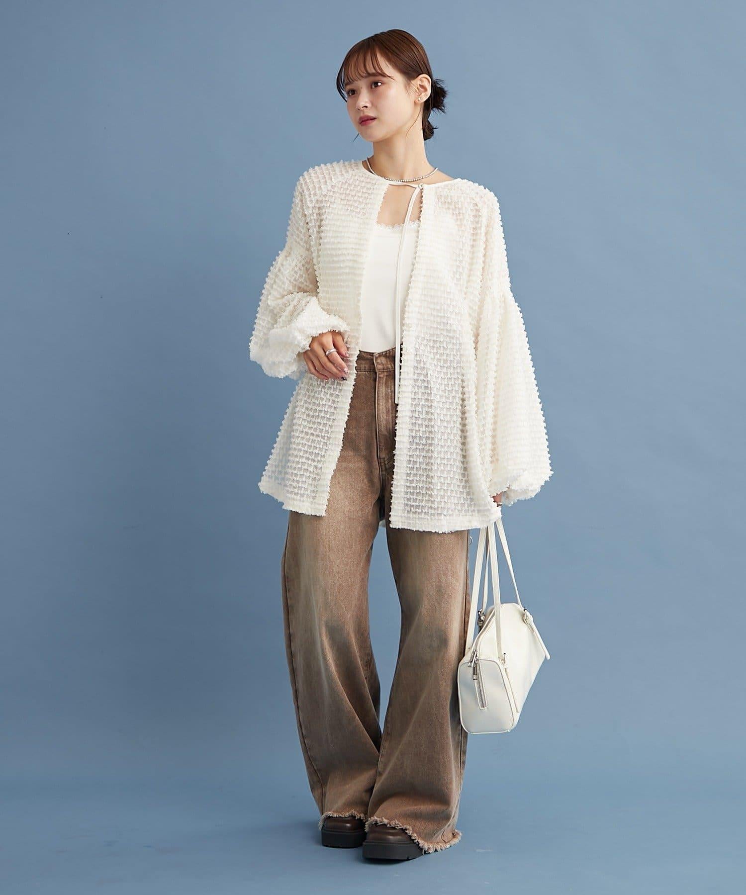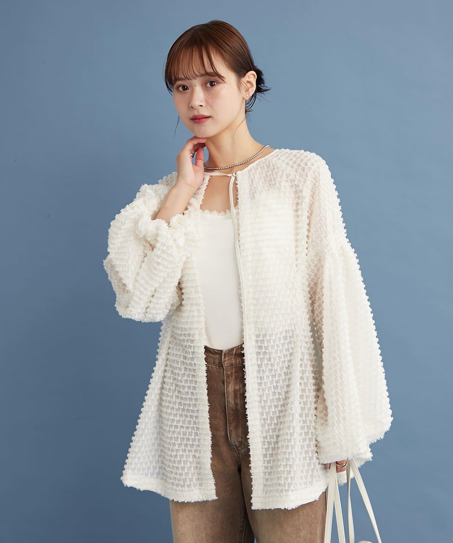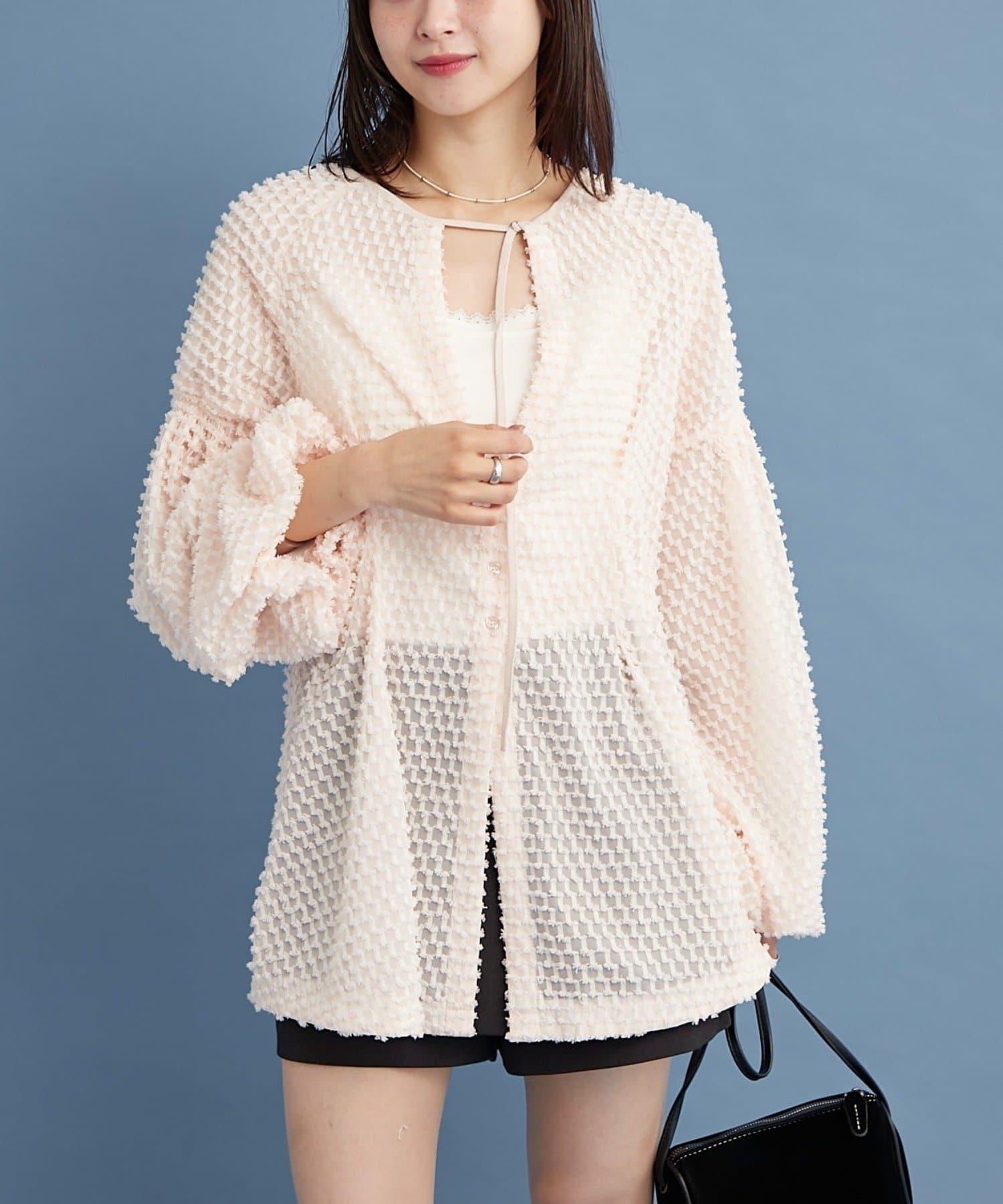 具有表面感的流蘇和蓬鬆的袖子給人柔美的女性印象。