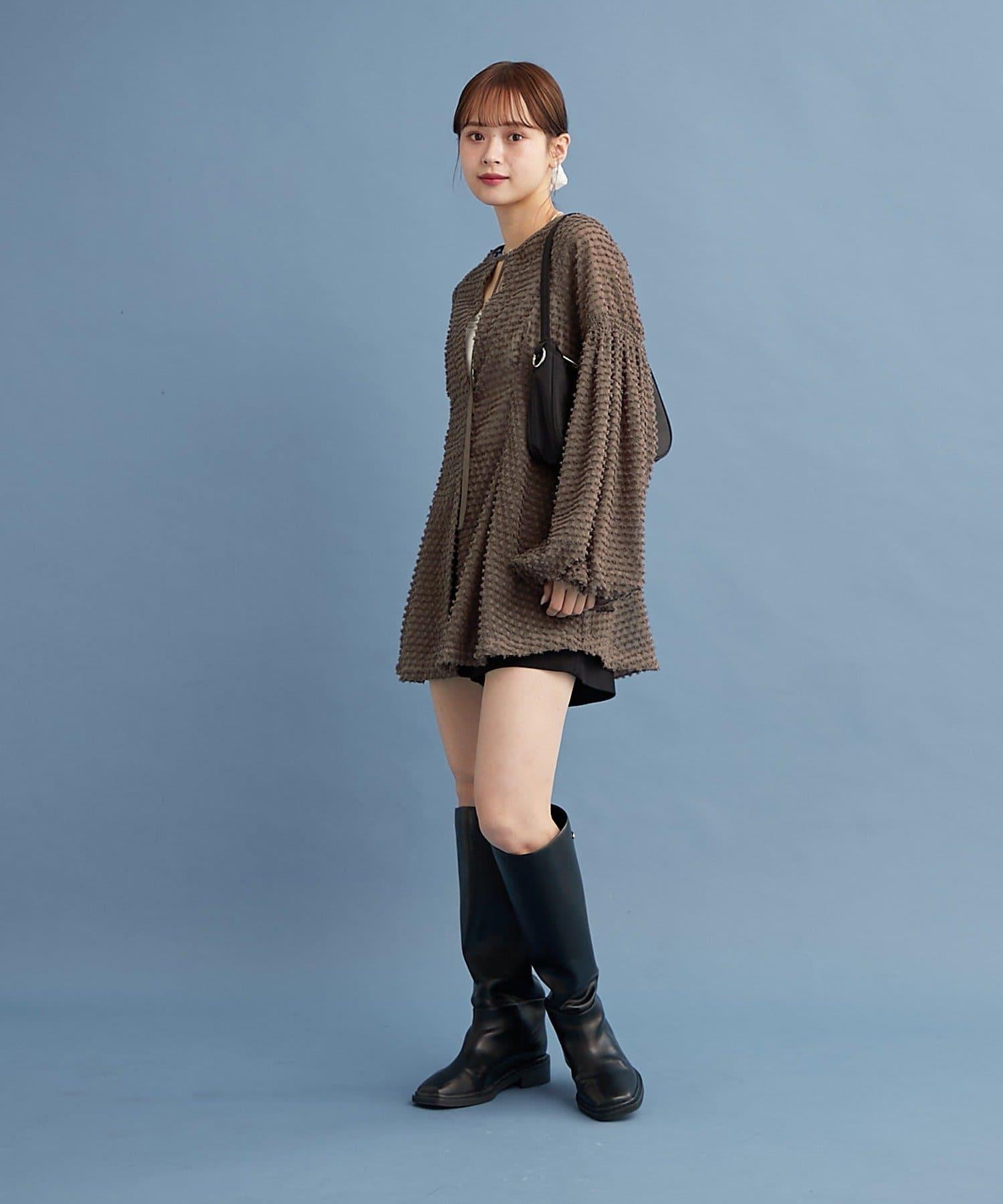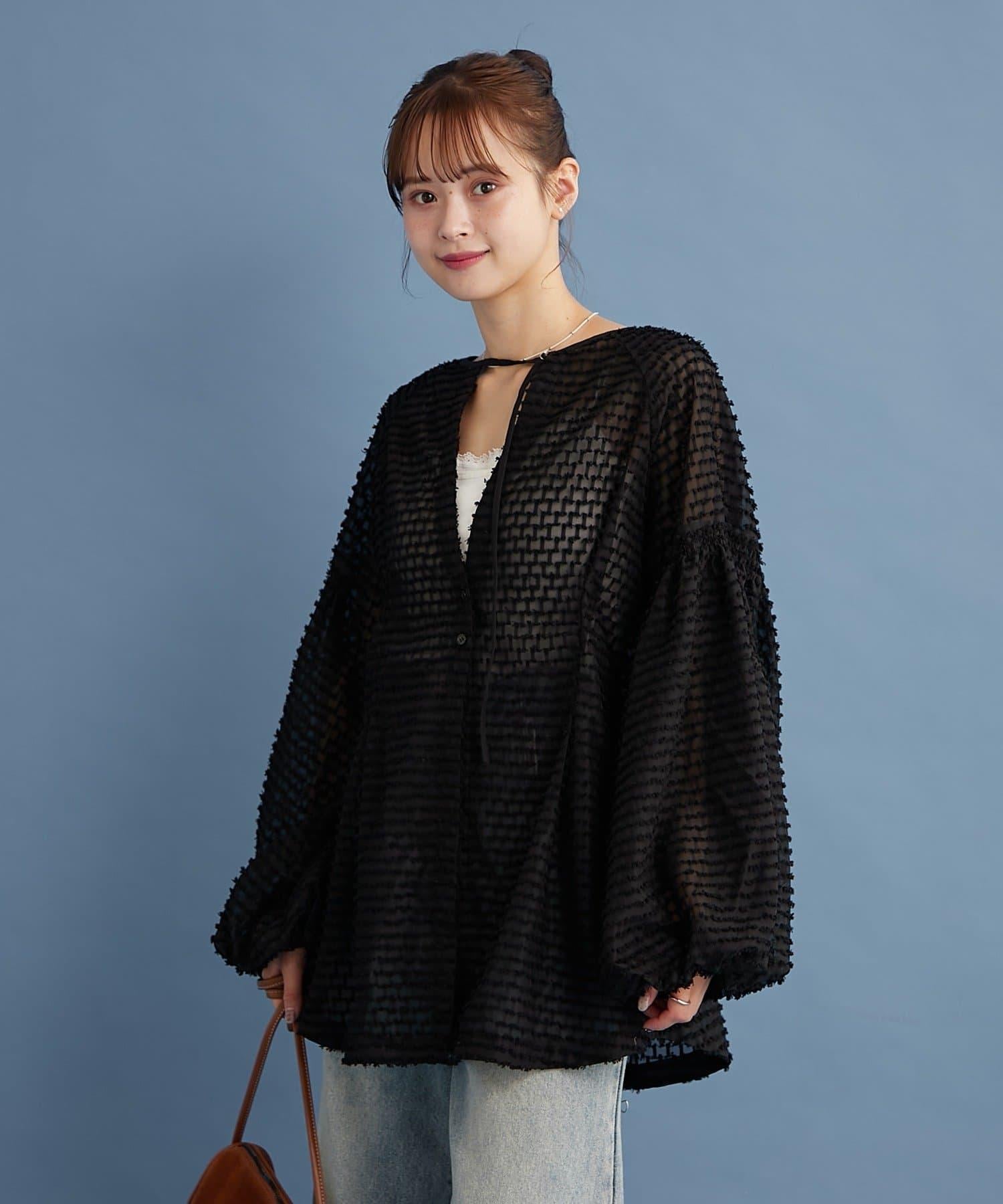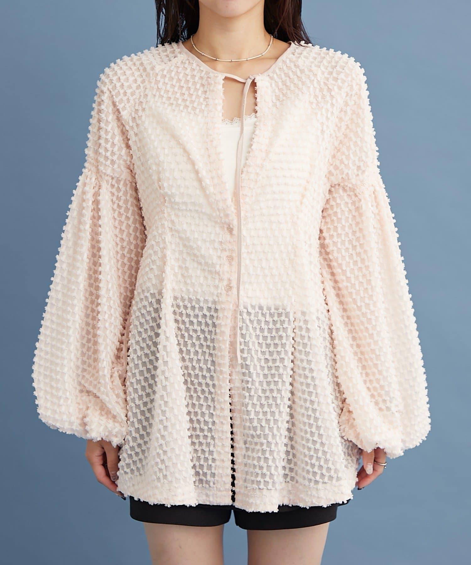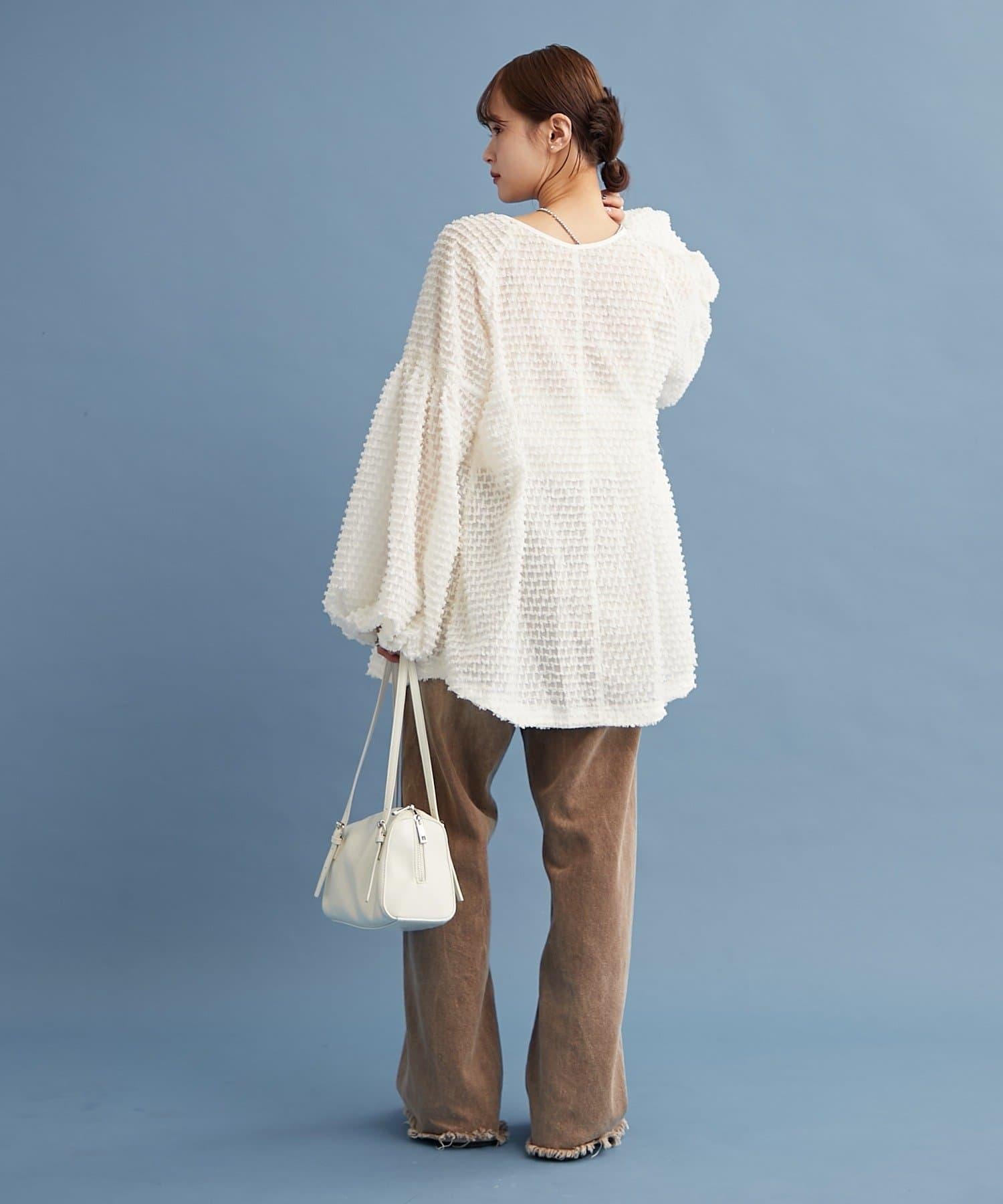 具有表面感的流蘇和蓬鬆的袖子給人柔美的女性印象。