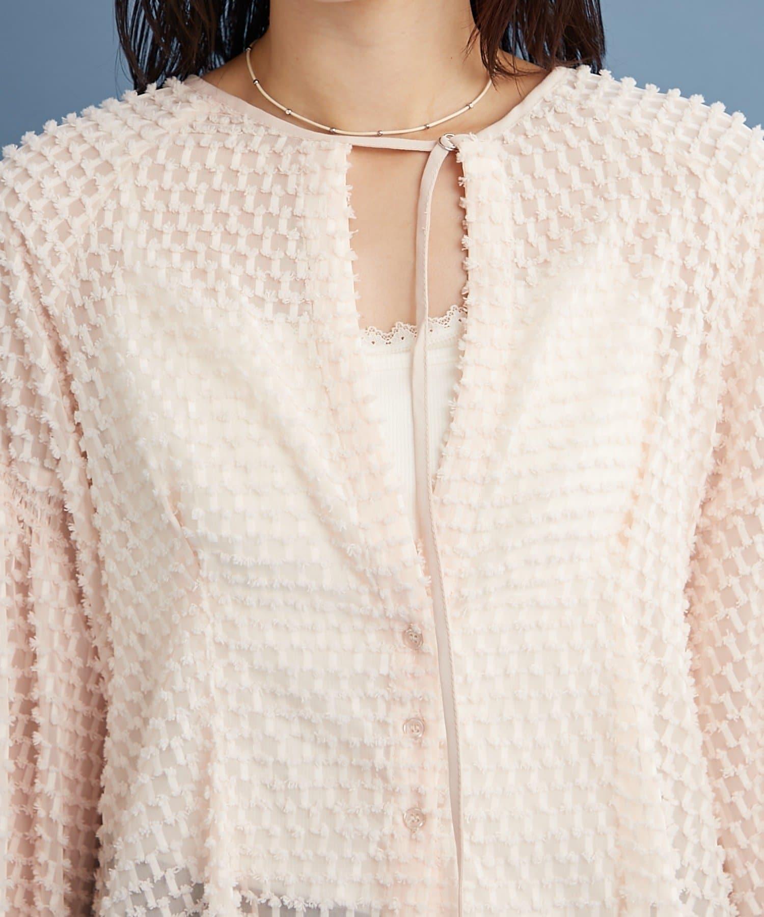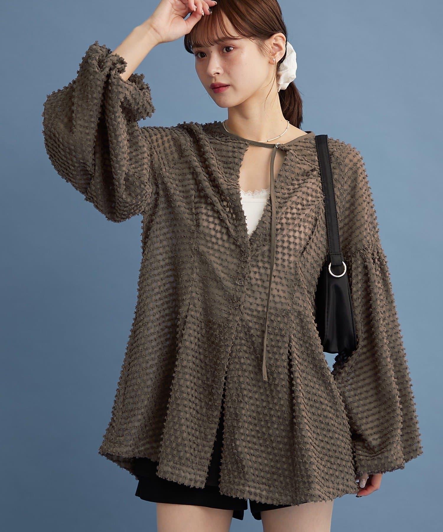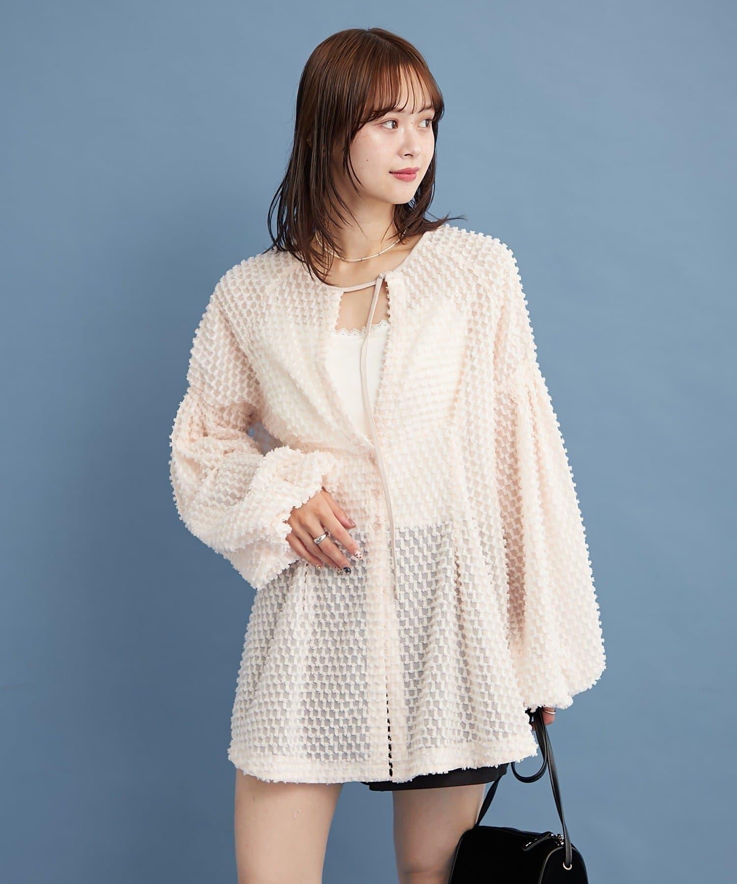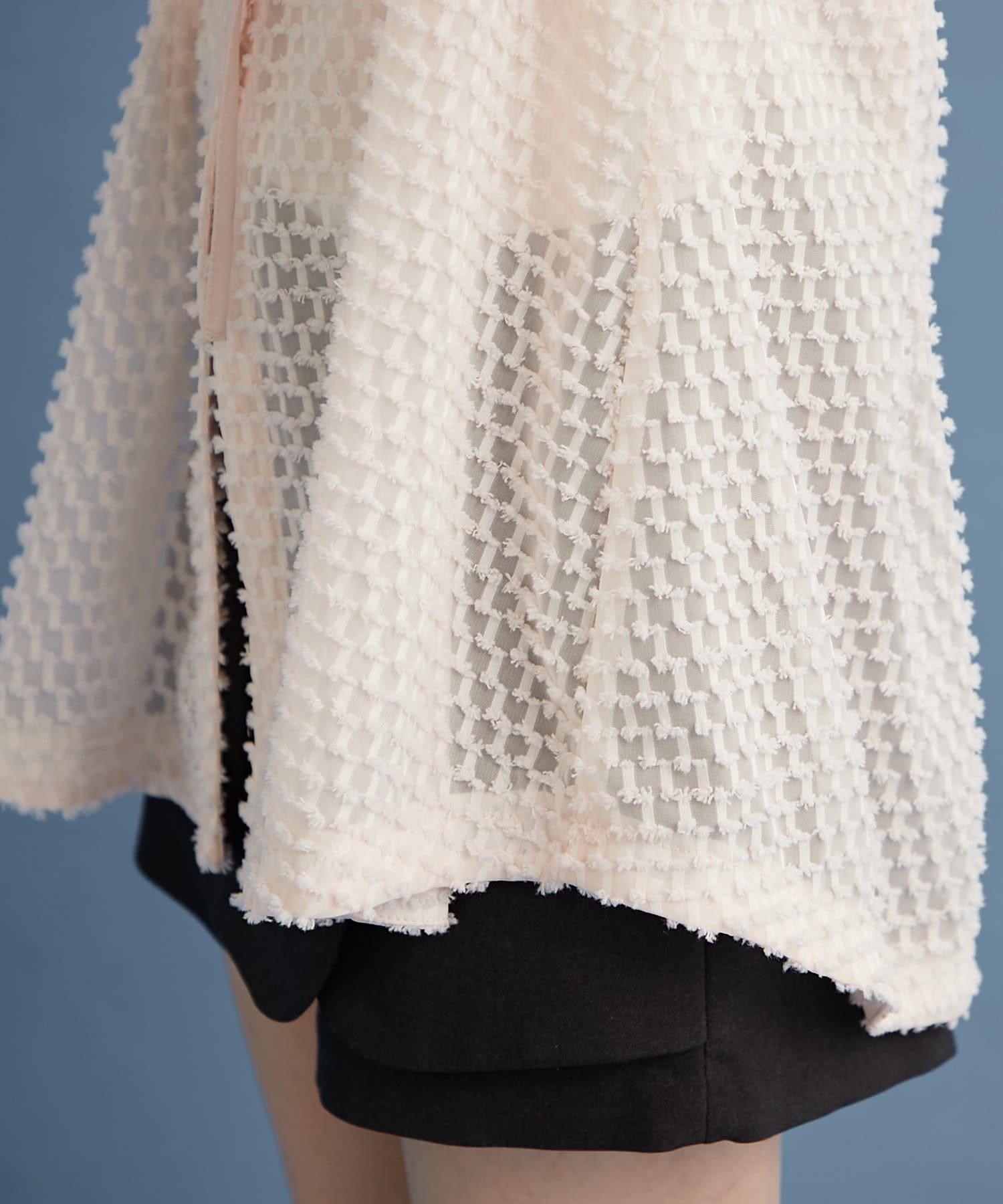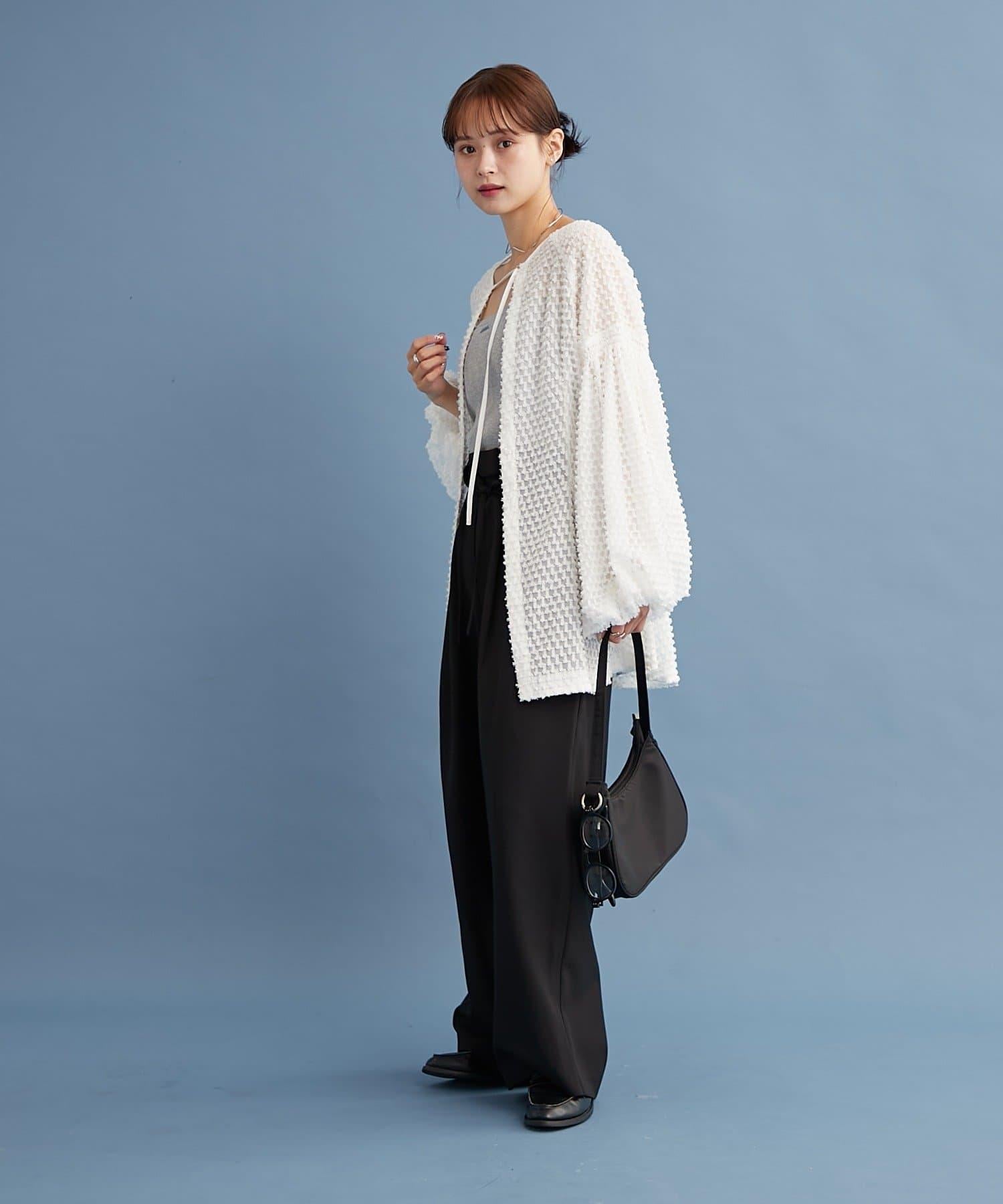 具有表面感的流蘇和蓬鬆的袖子給人柔美的女性印象。