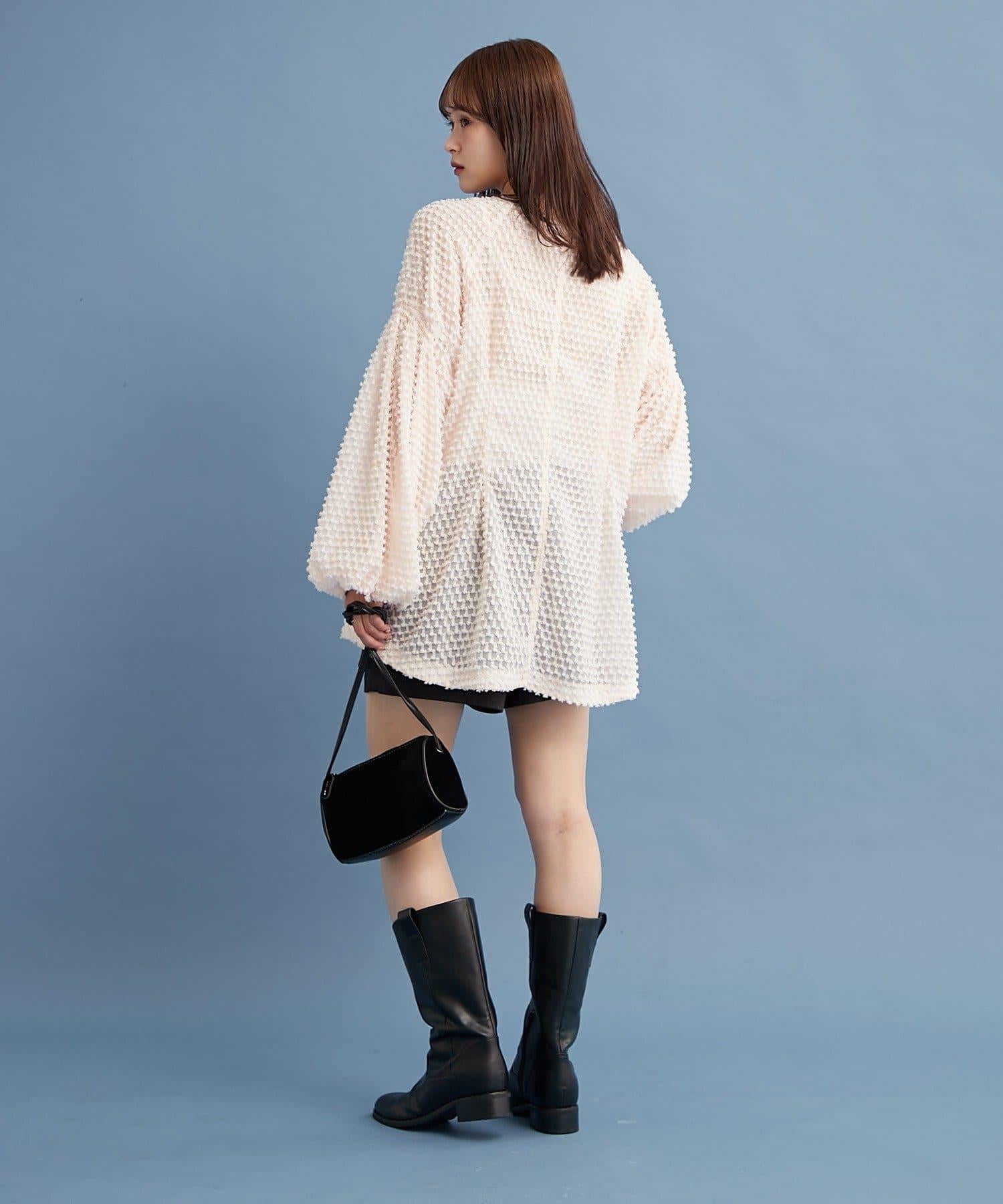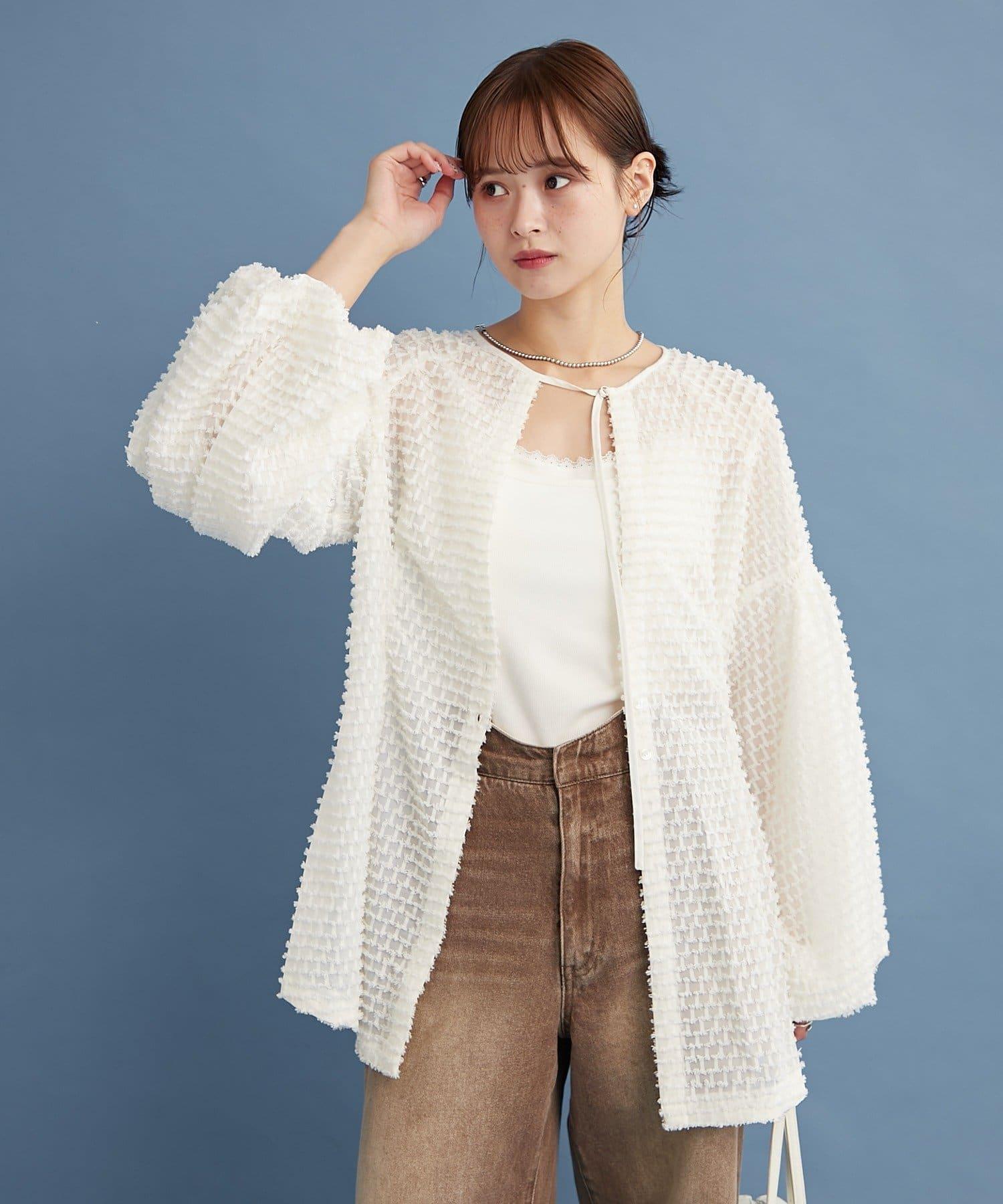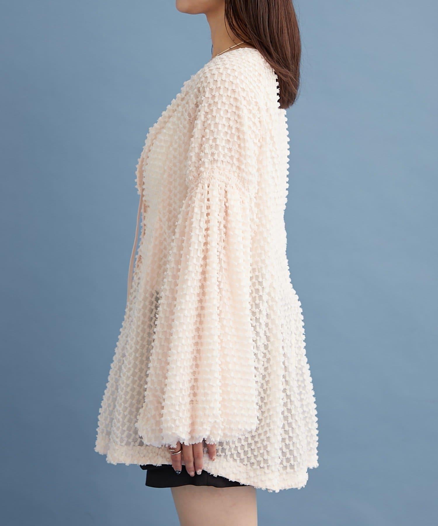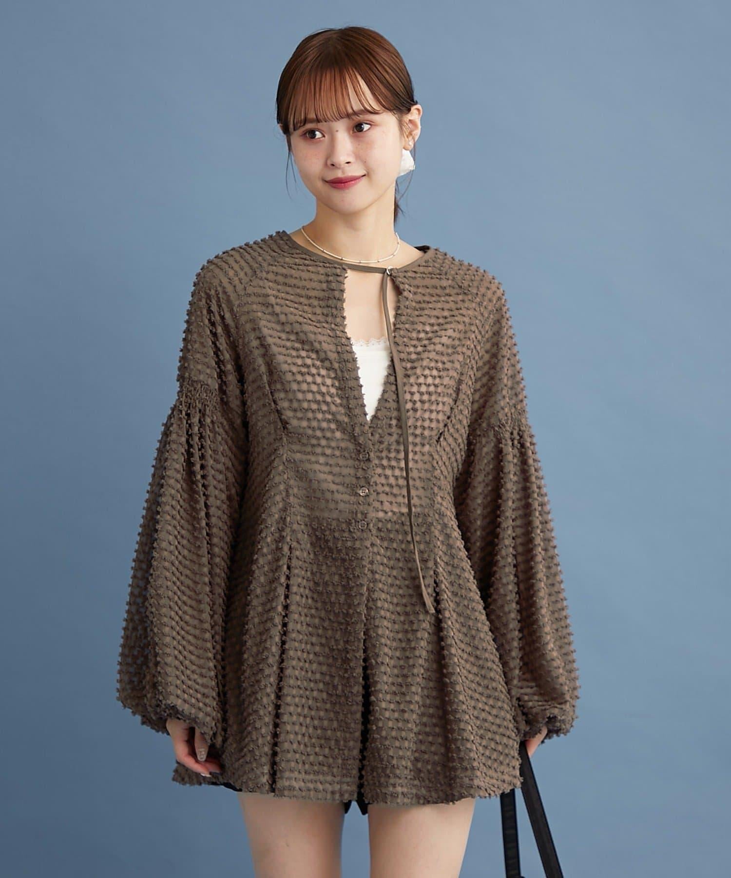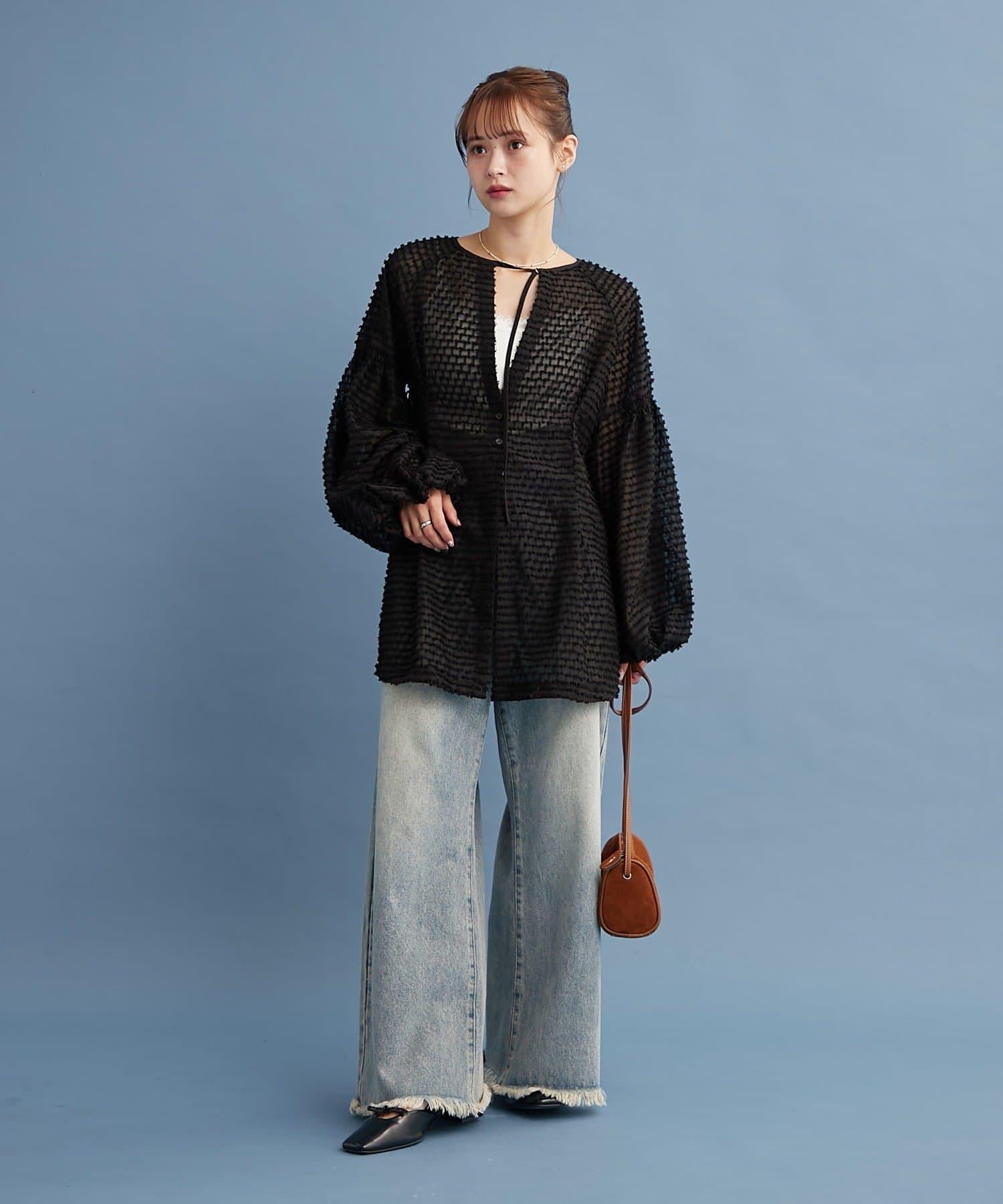 具有表面感的流蘇和蓬鬆的袖子給人柔美的女性印象。
