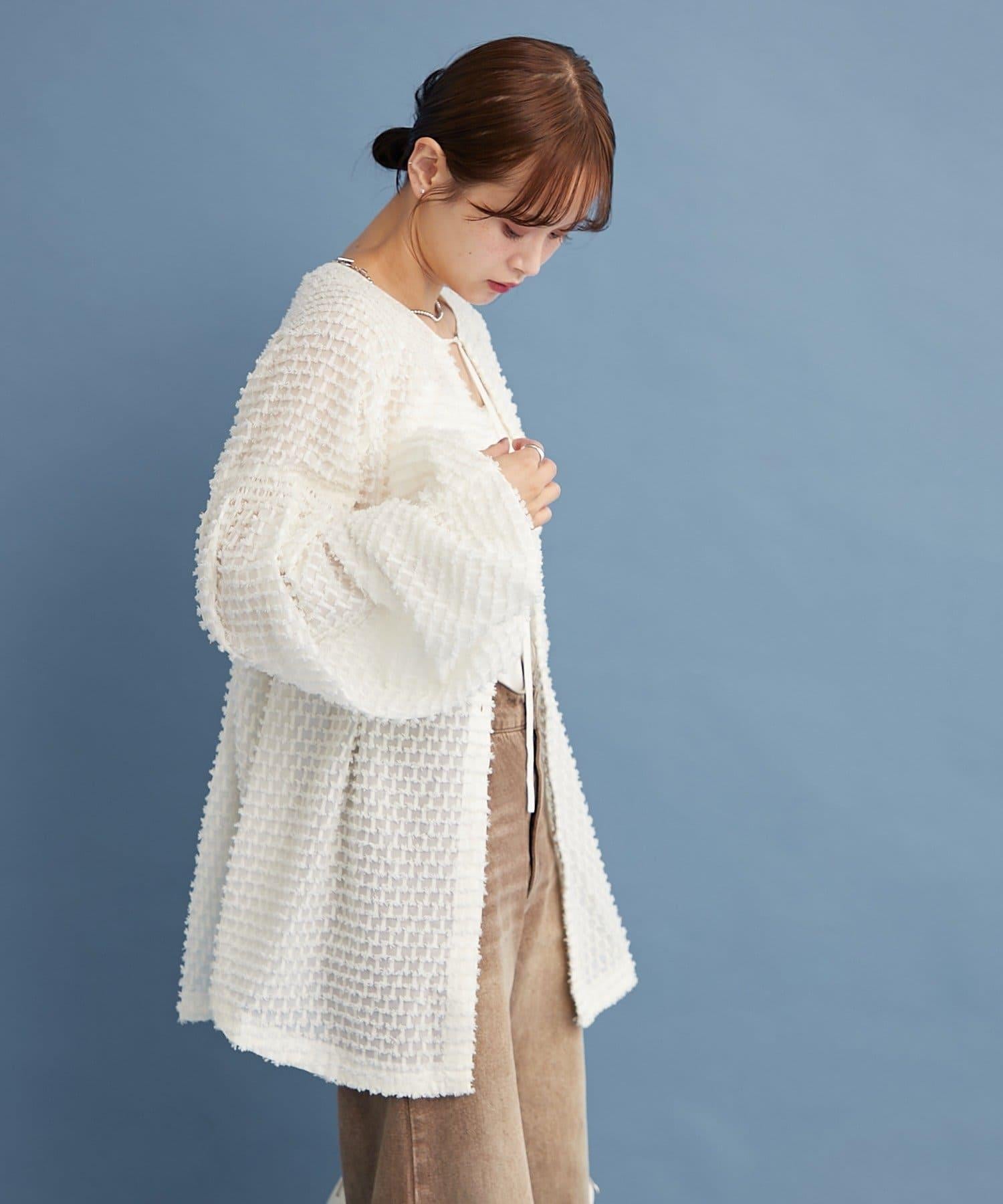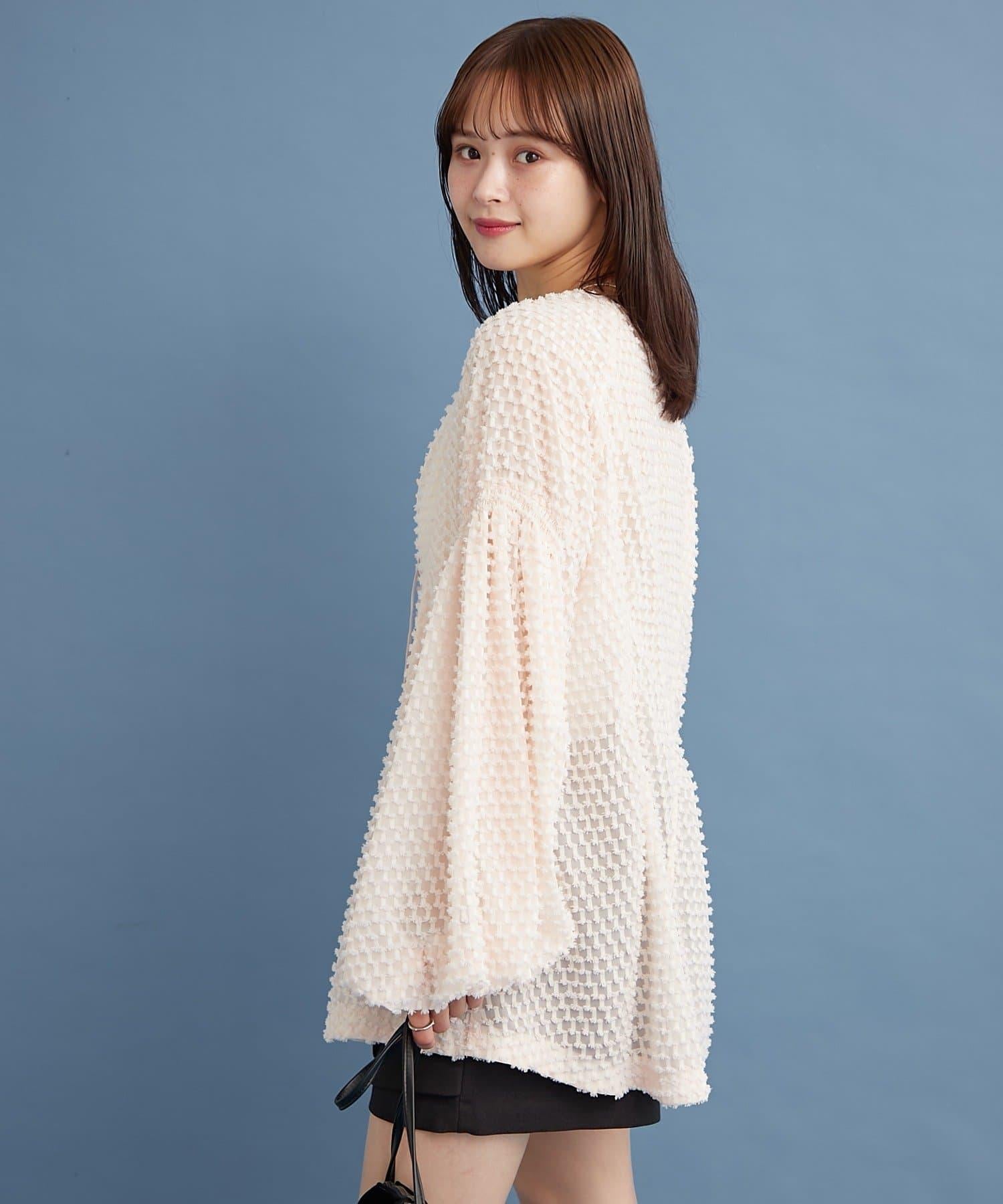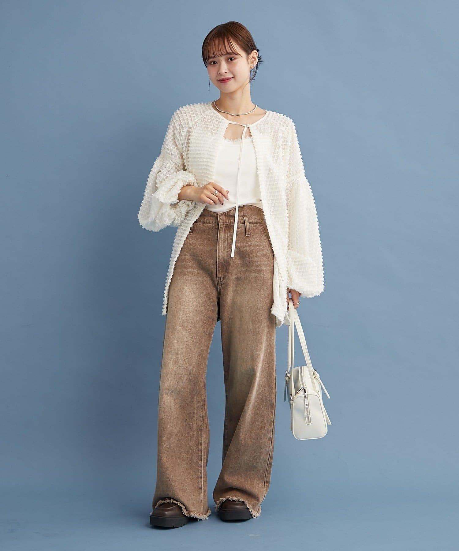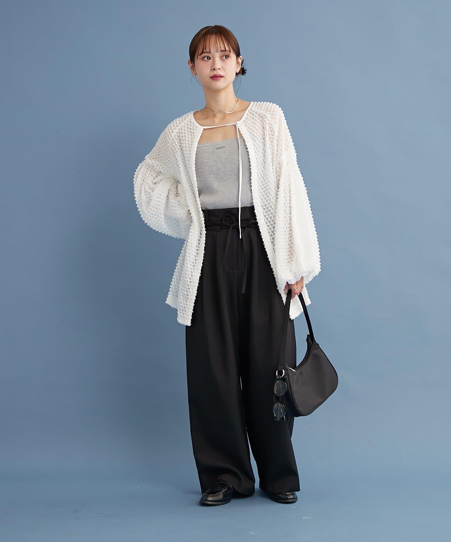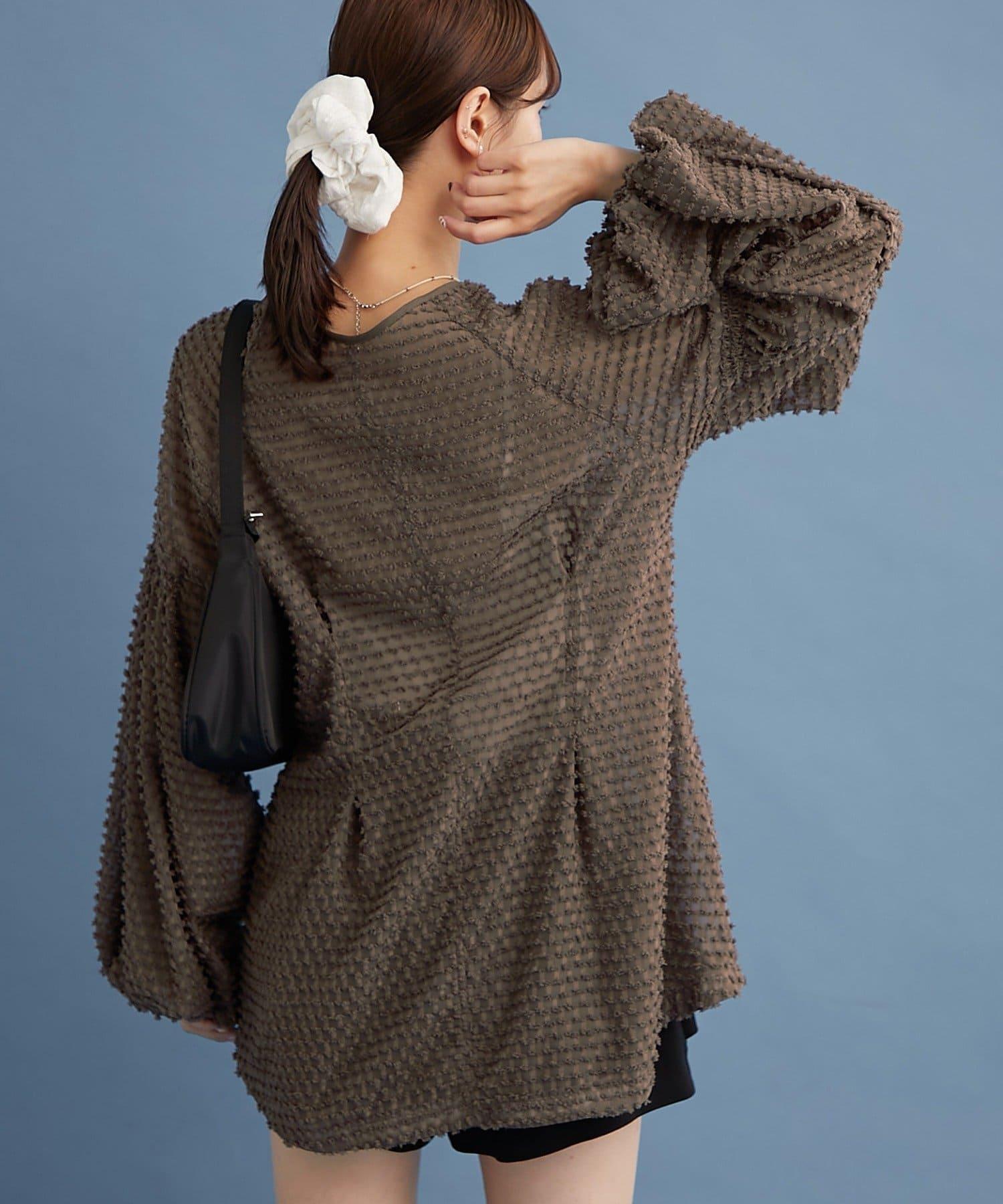具有表面感的流蘇和蓬鬆的袖子給人柔美的女性印象。