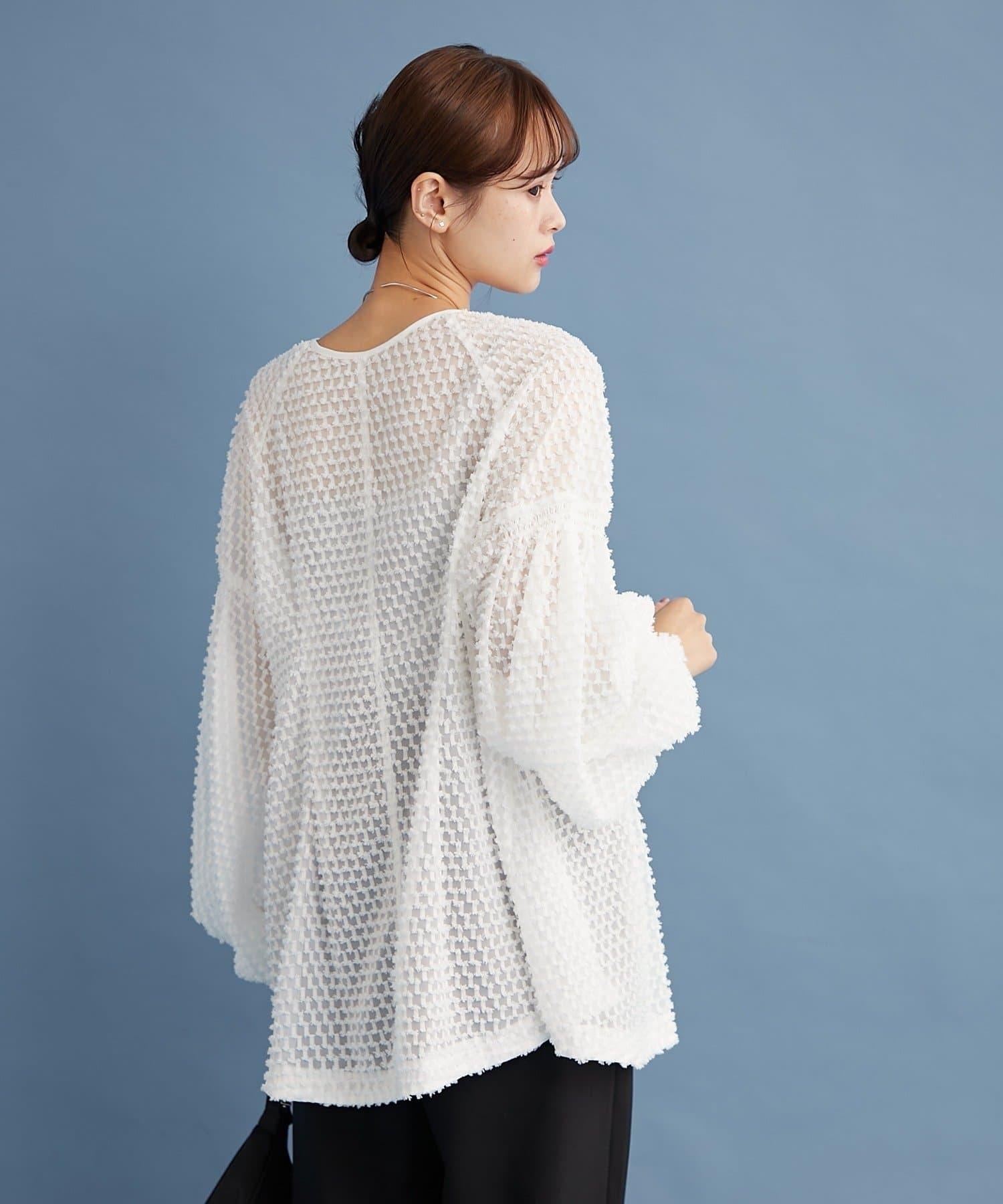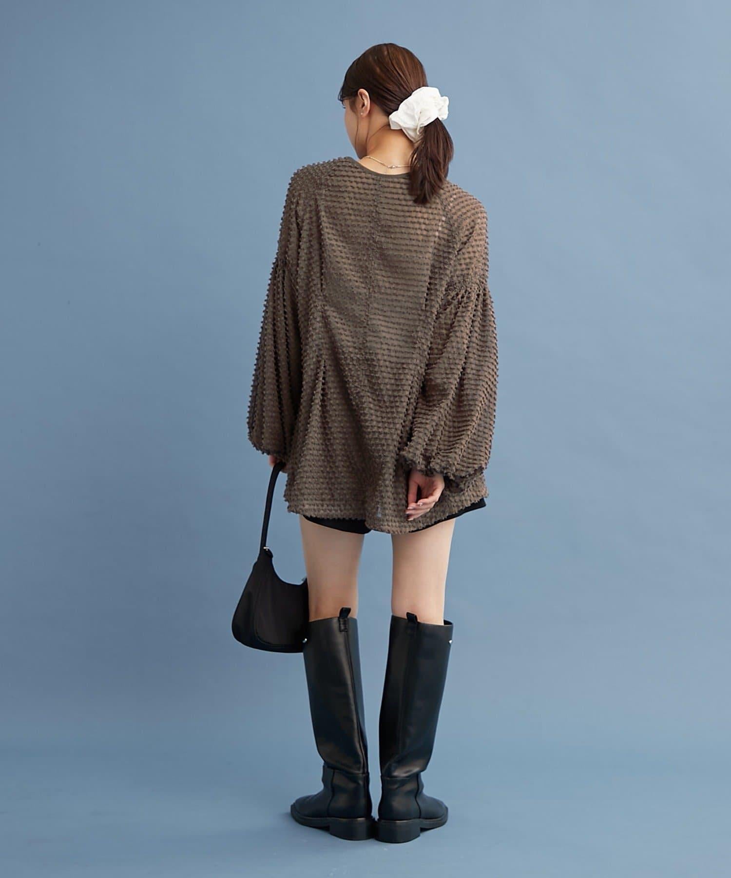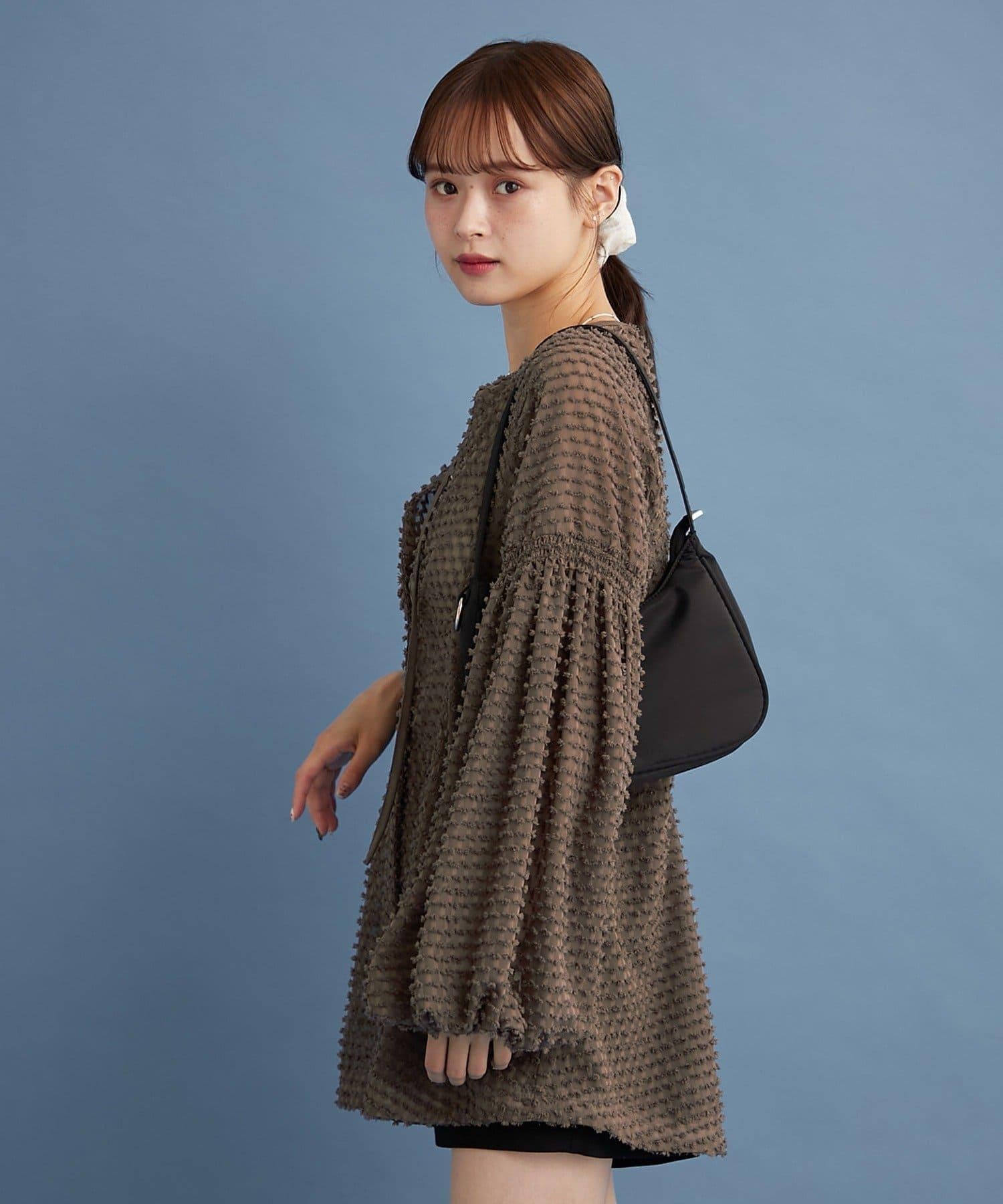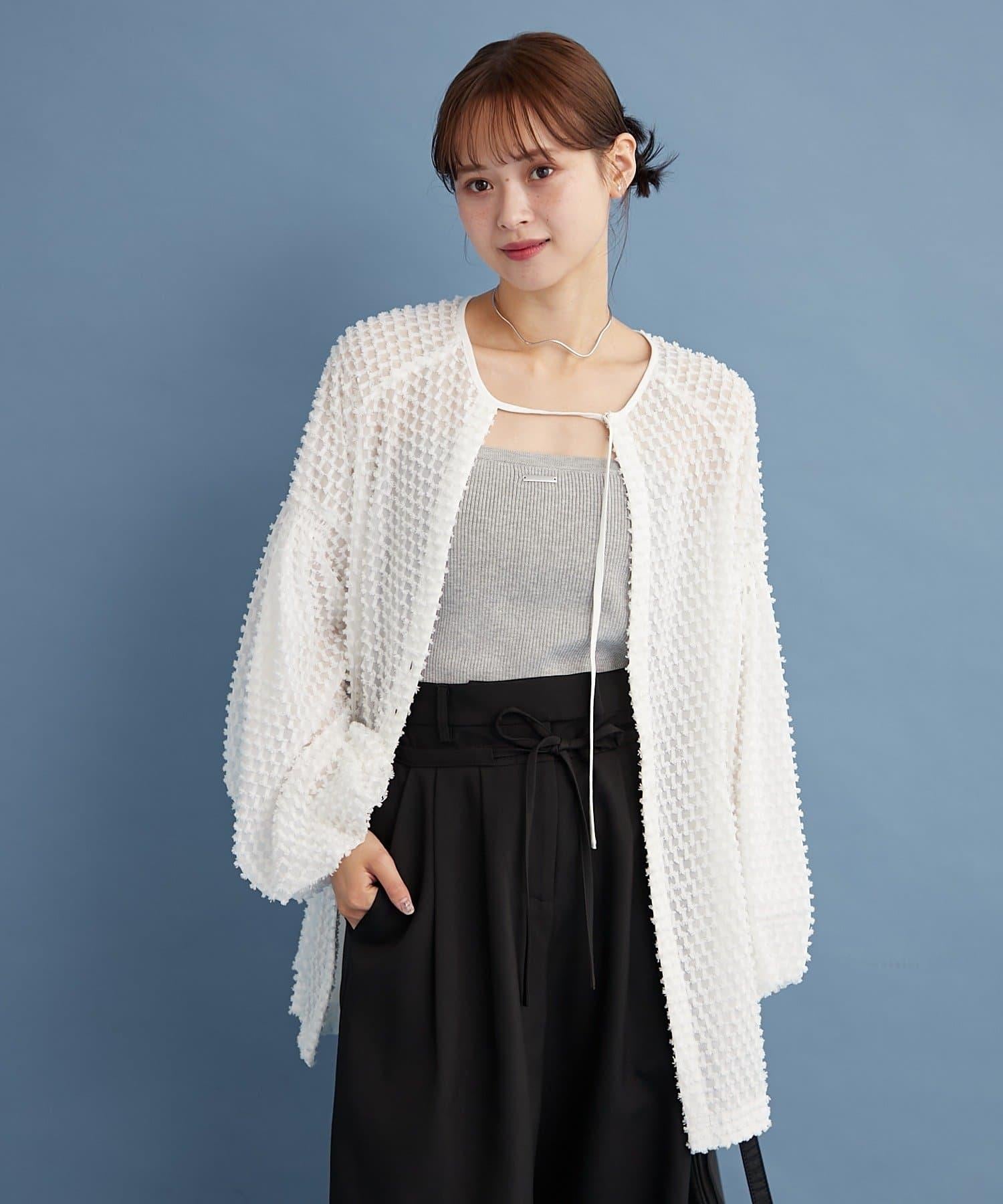 具有表面感的流蘇和蓬鬆的袖子給人柔美的女性印象。