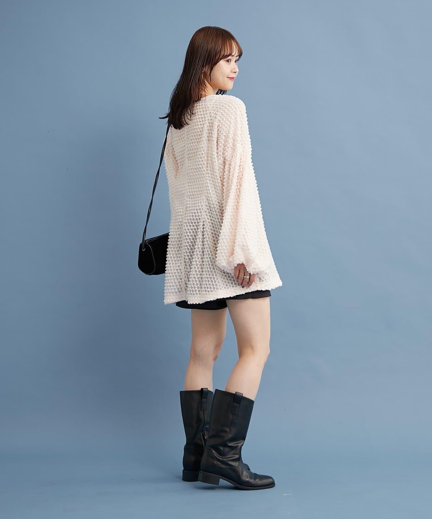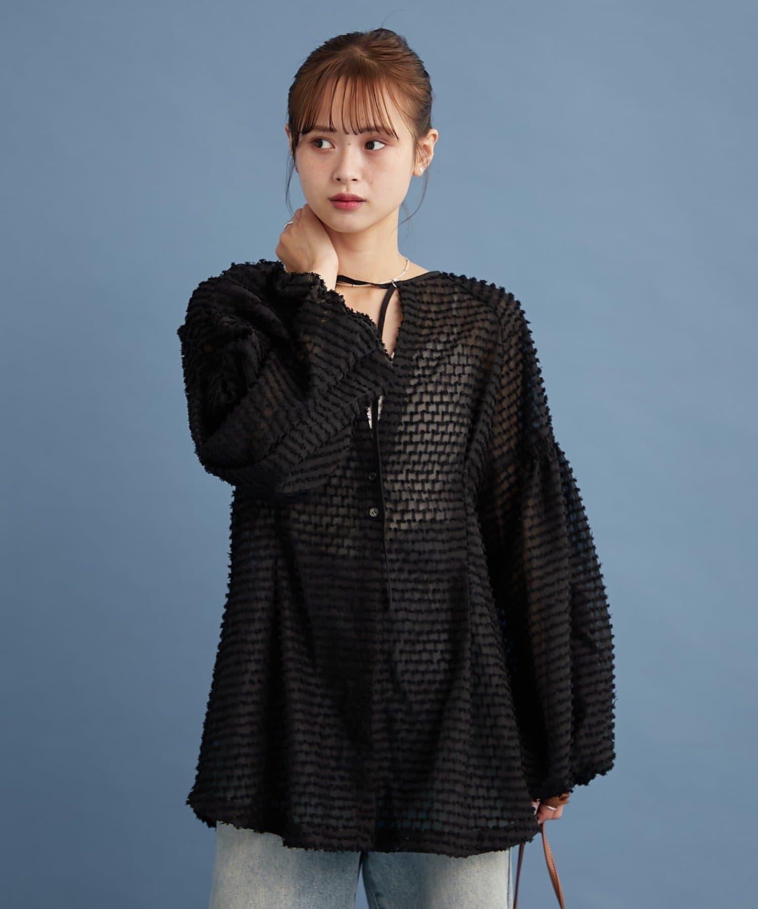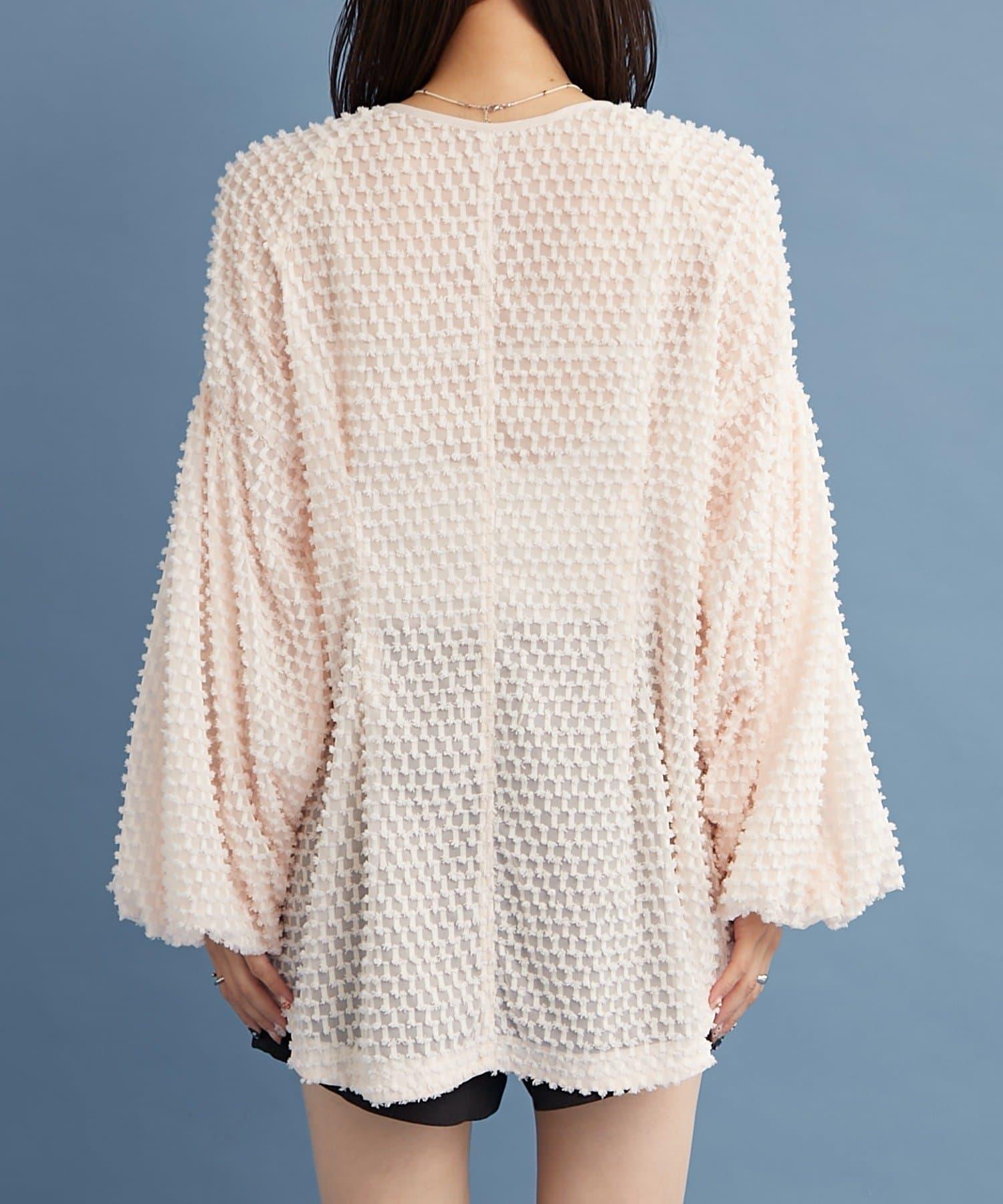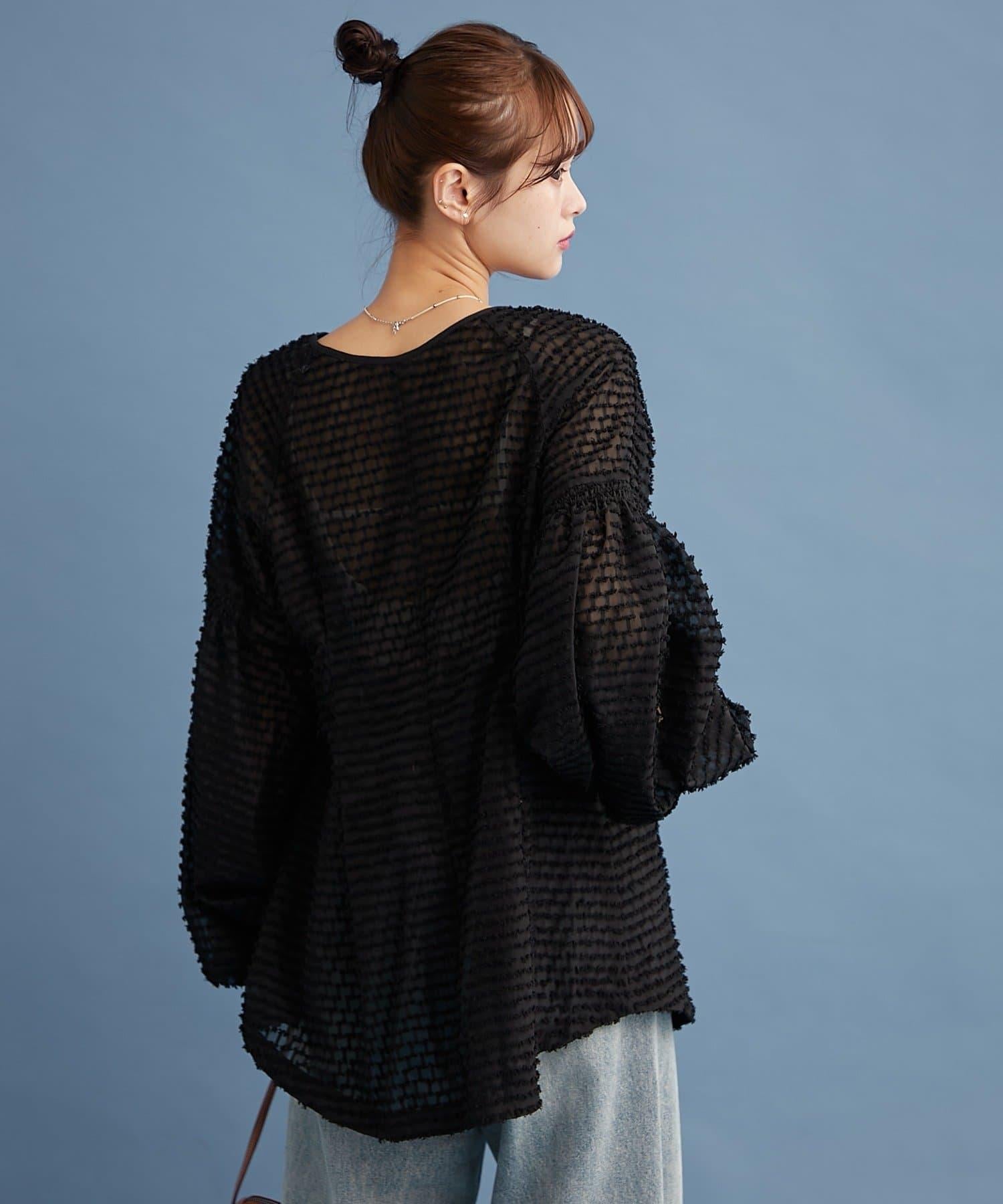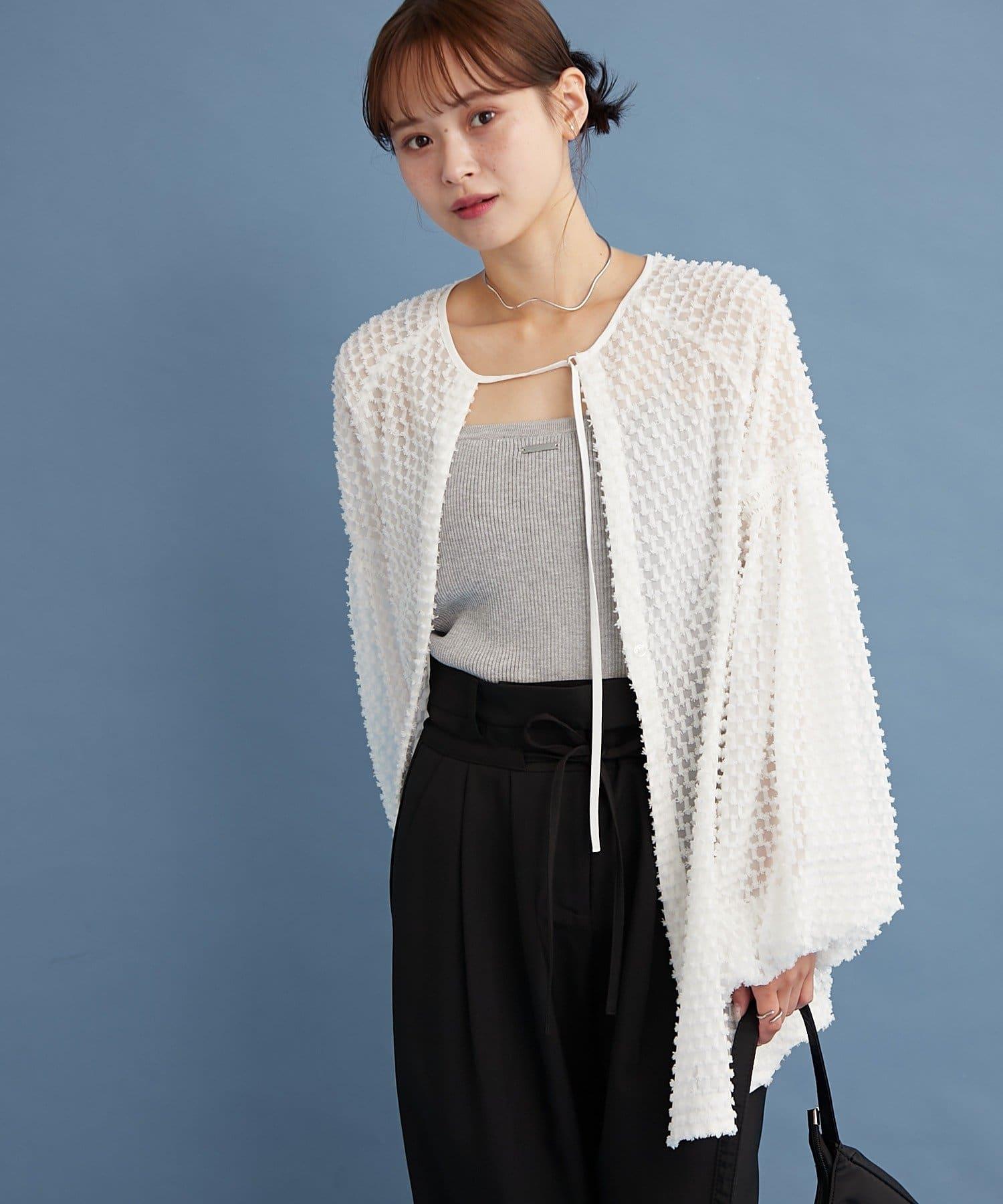 具有表面感的流蘇和蓬鬆的袖子給人柔美的女性印象。