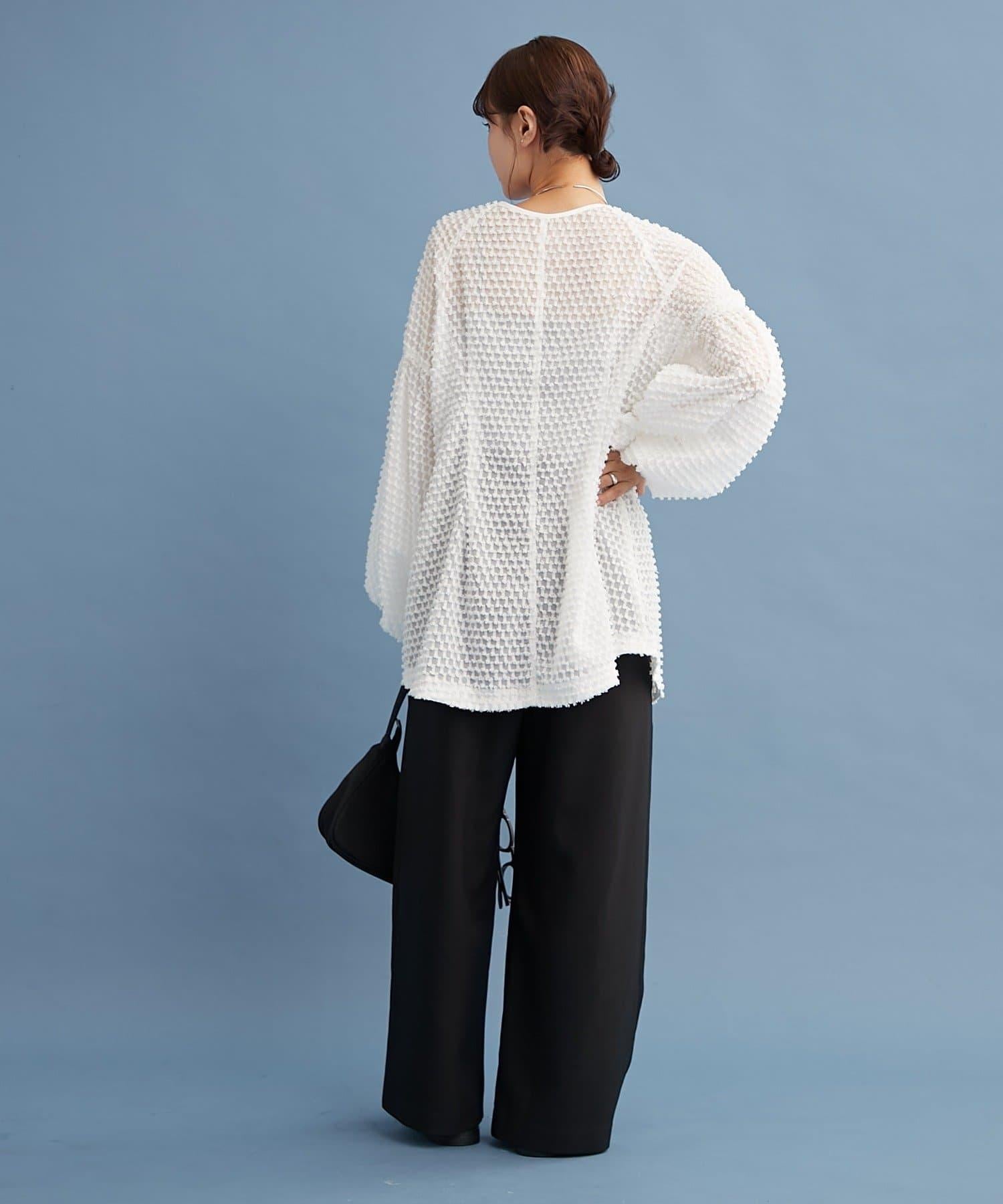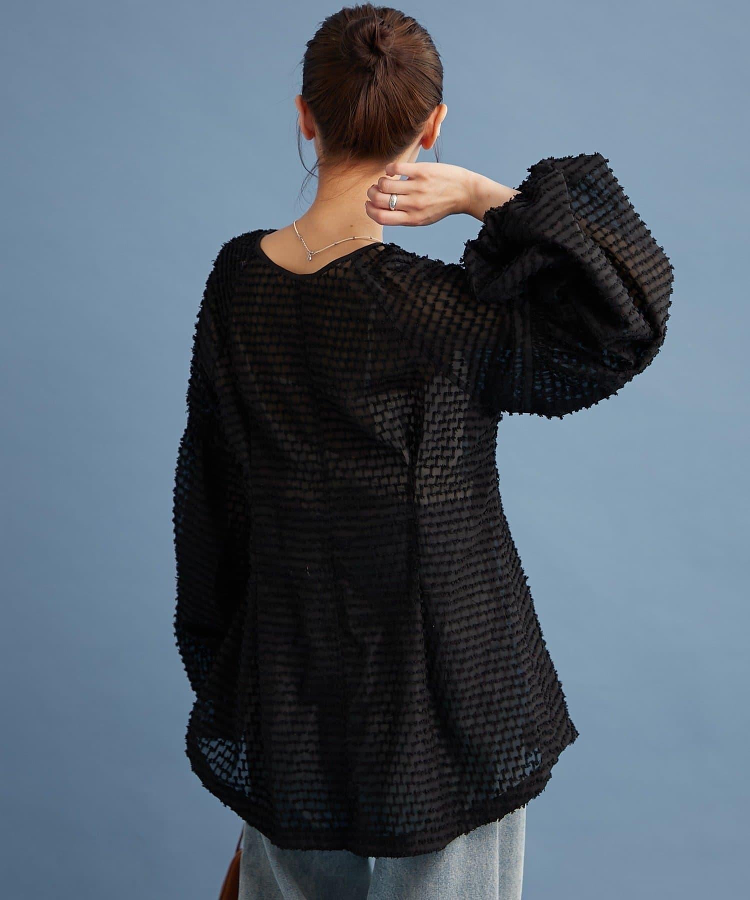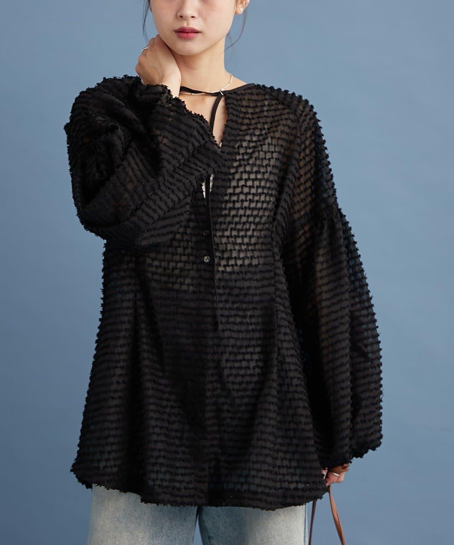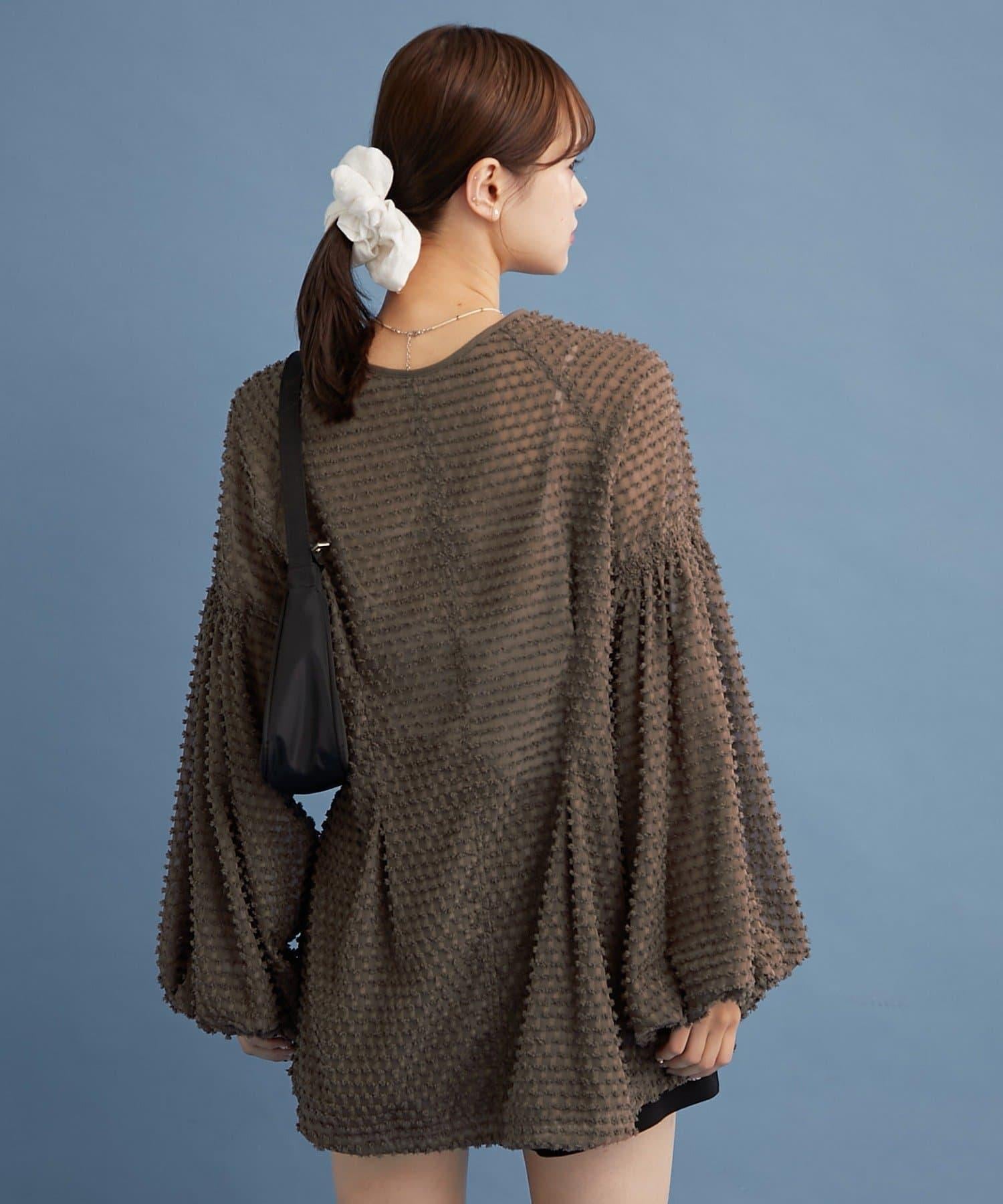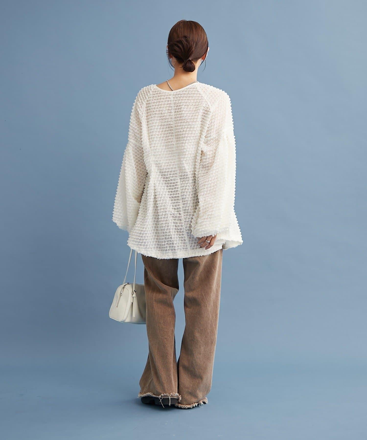具有表面感的流蘇和蓬鬆的袖子給人柔美的女性印象。