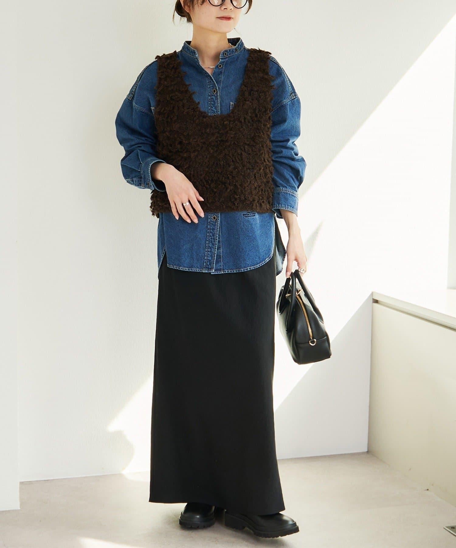 穿著感受:因為是寬鬆版型的半身裙,所以可以搭配稍厚的上衣和羅紋針織衫,不會有緊繃感。