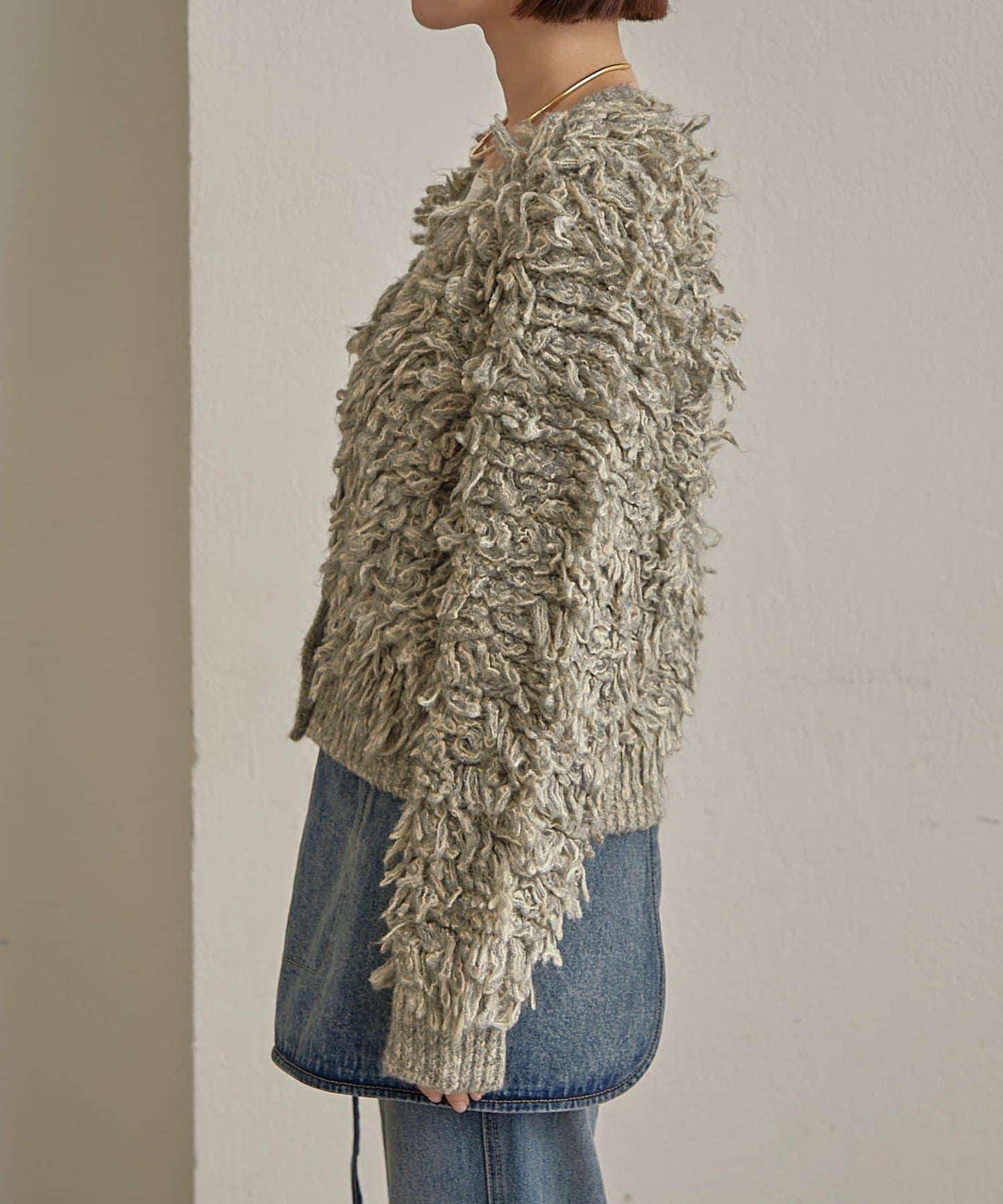 混合了不同紗線的混色面料,為成人打造出一件富有表現力的可愛單品。