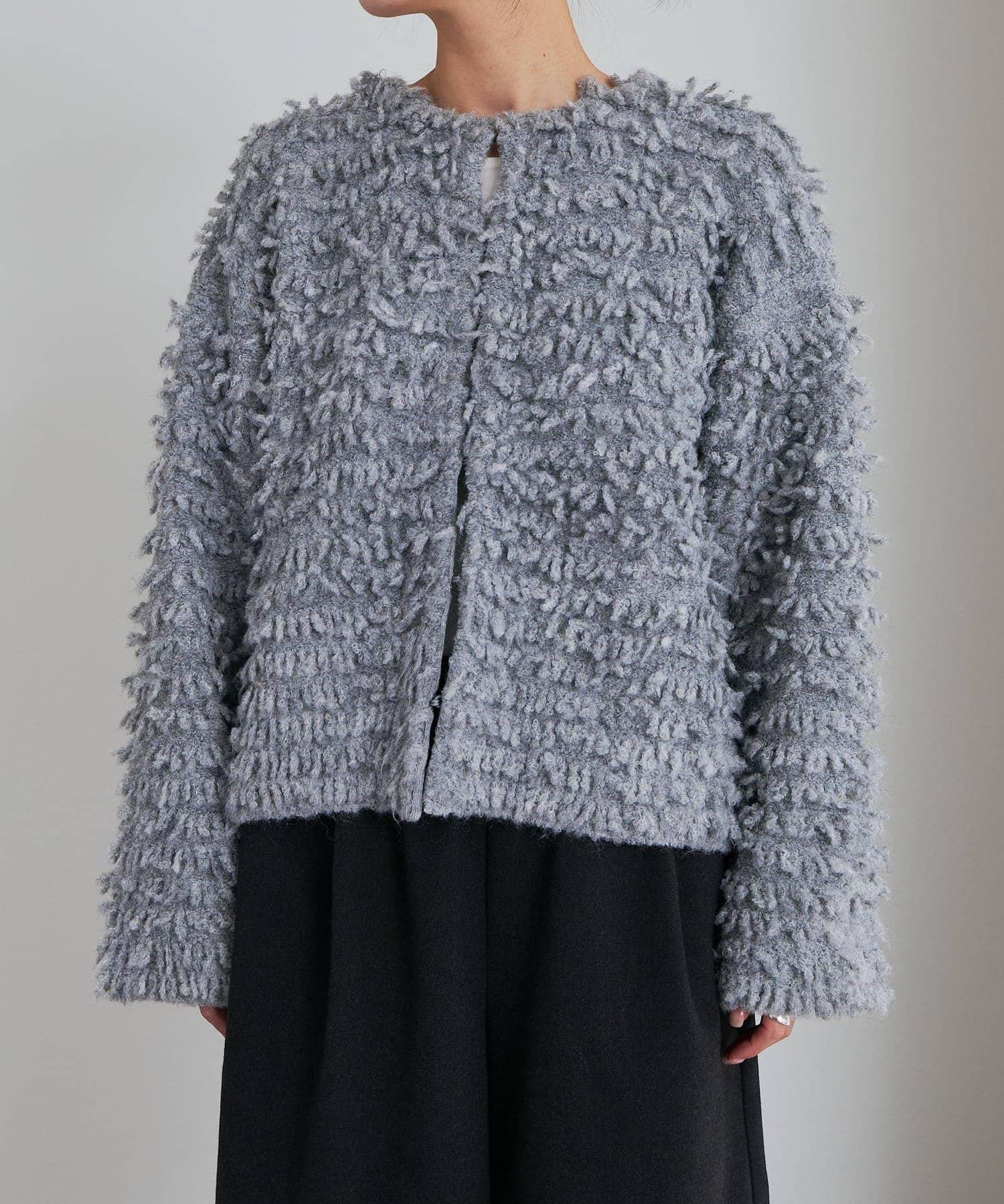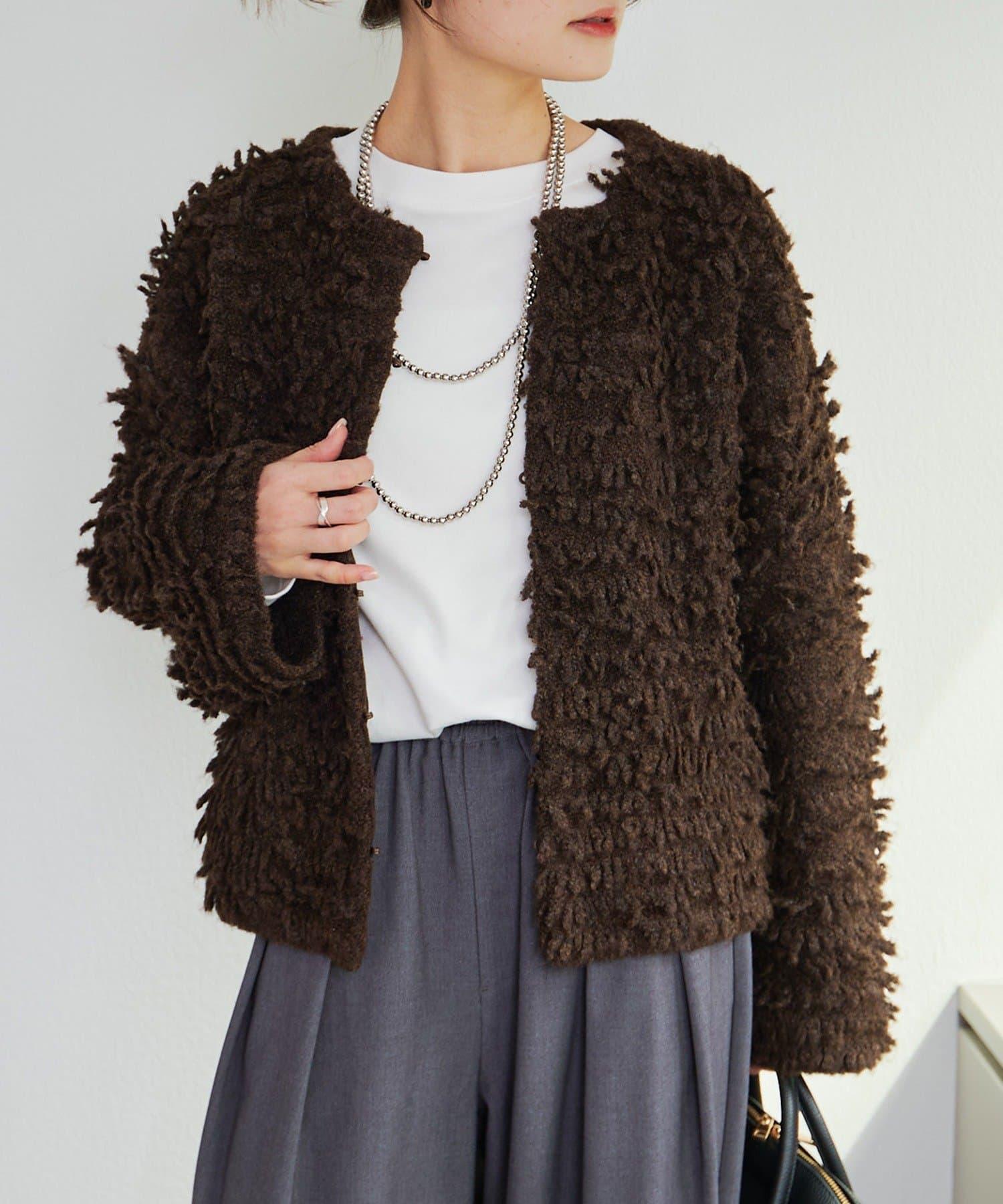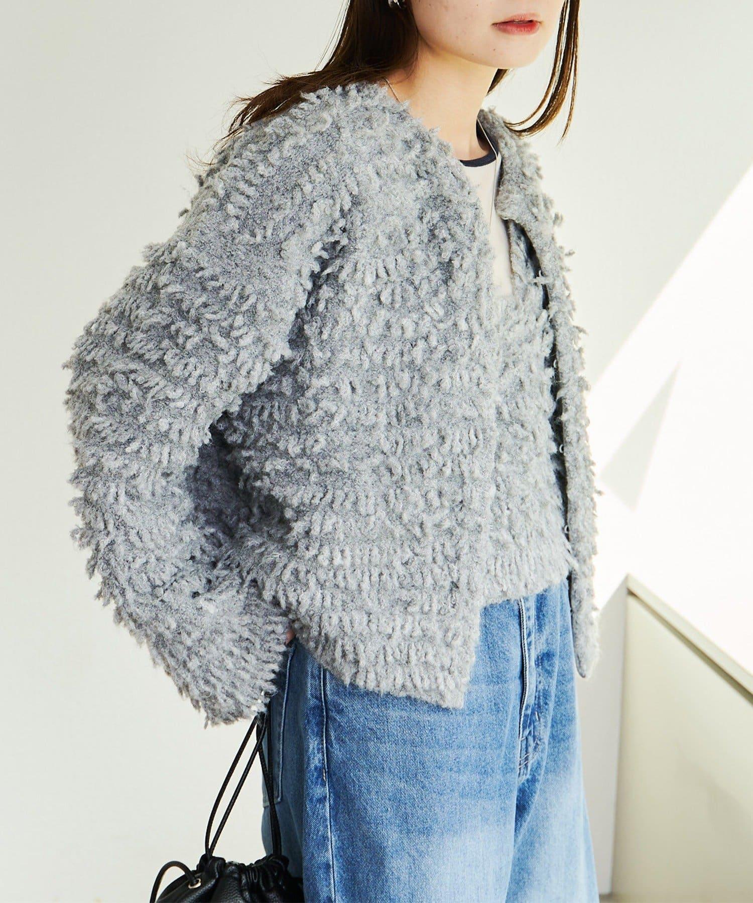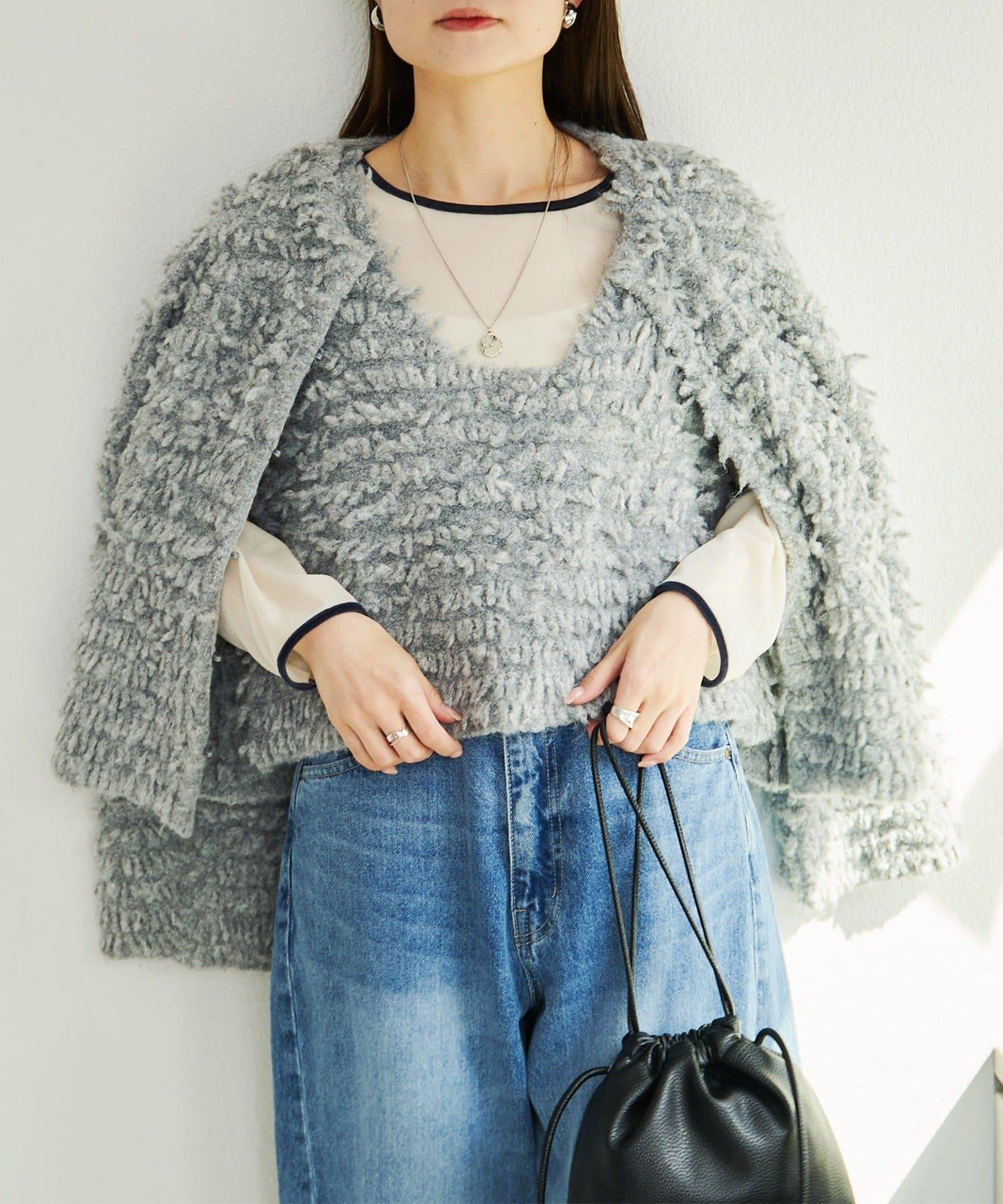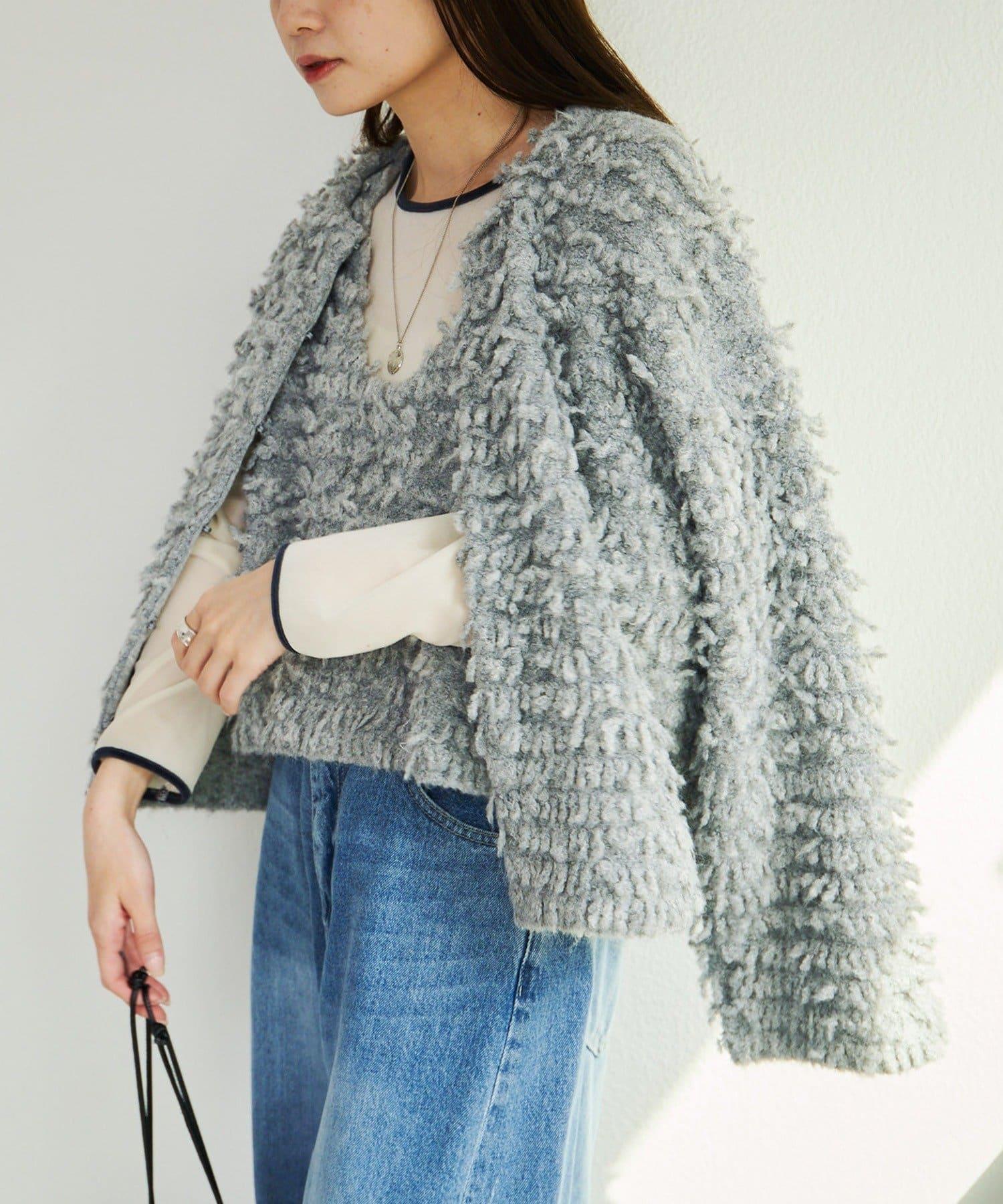 採用具有拉絲感的較粗紗線,蓬鬆的表面使其具有突出的存在感。