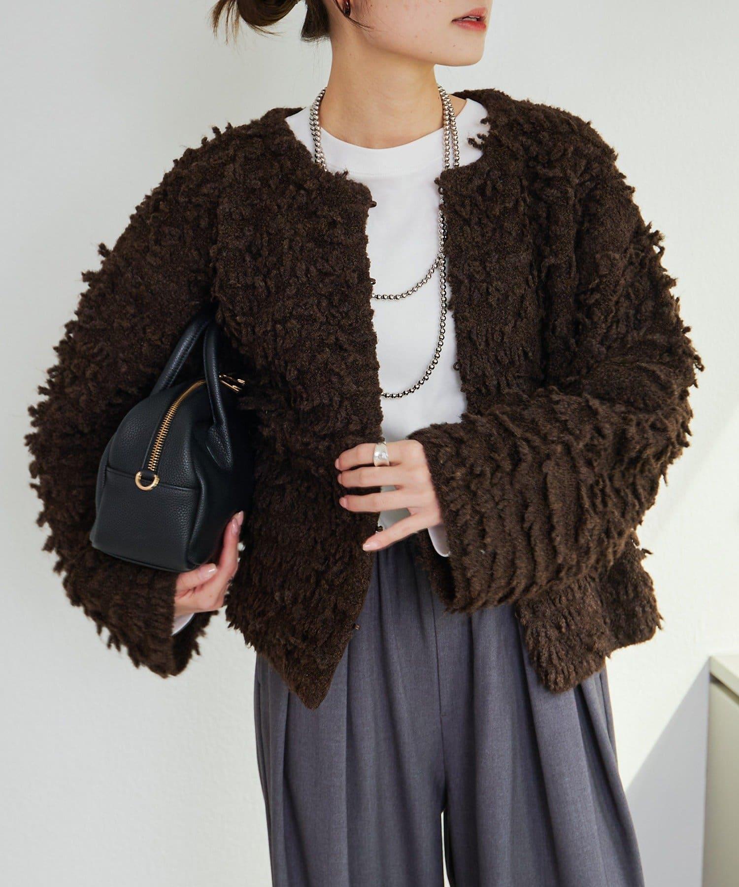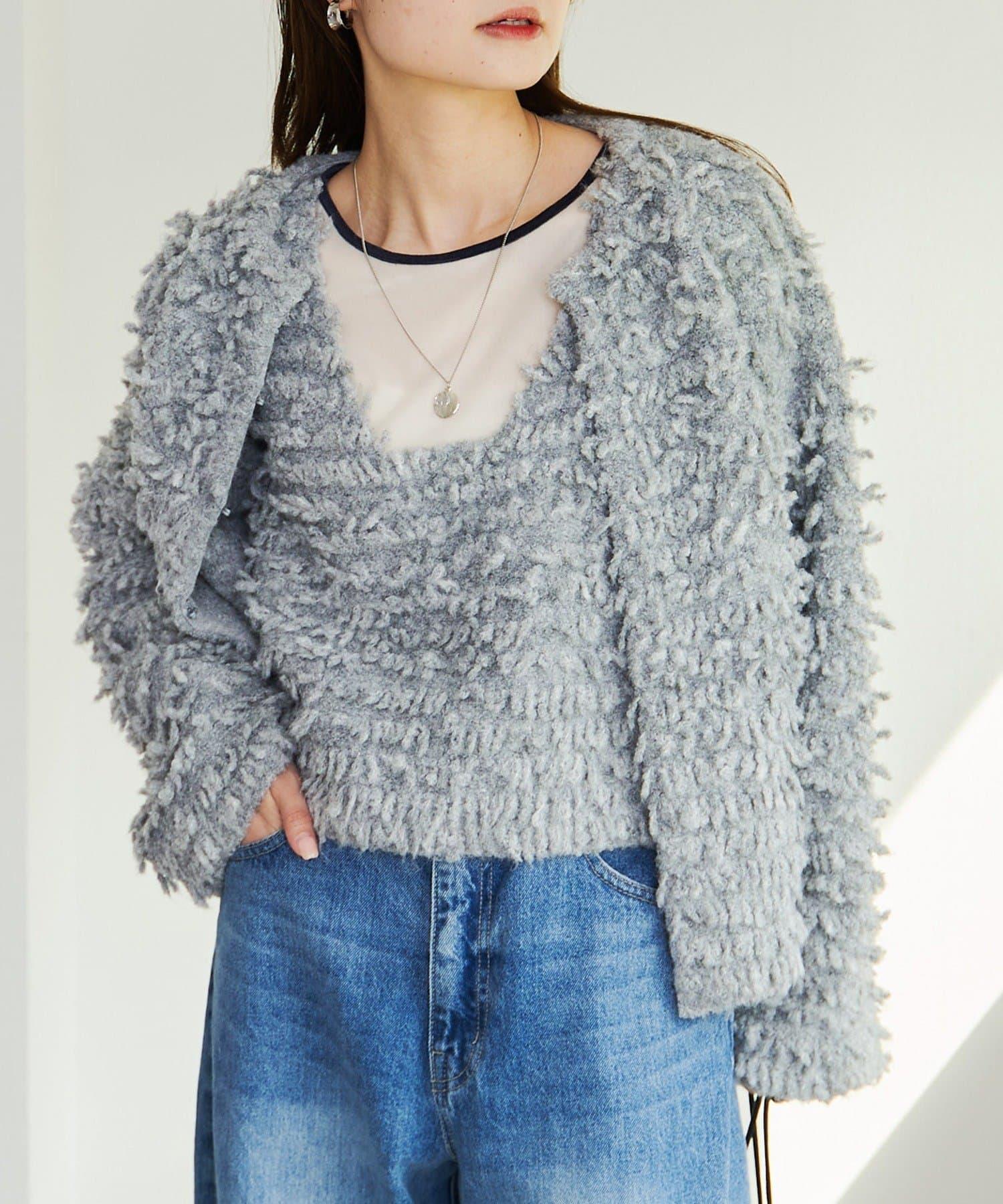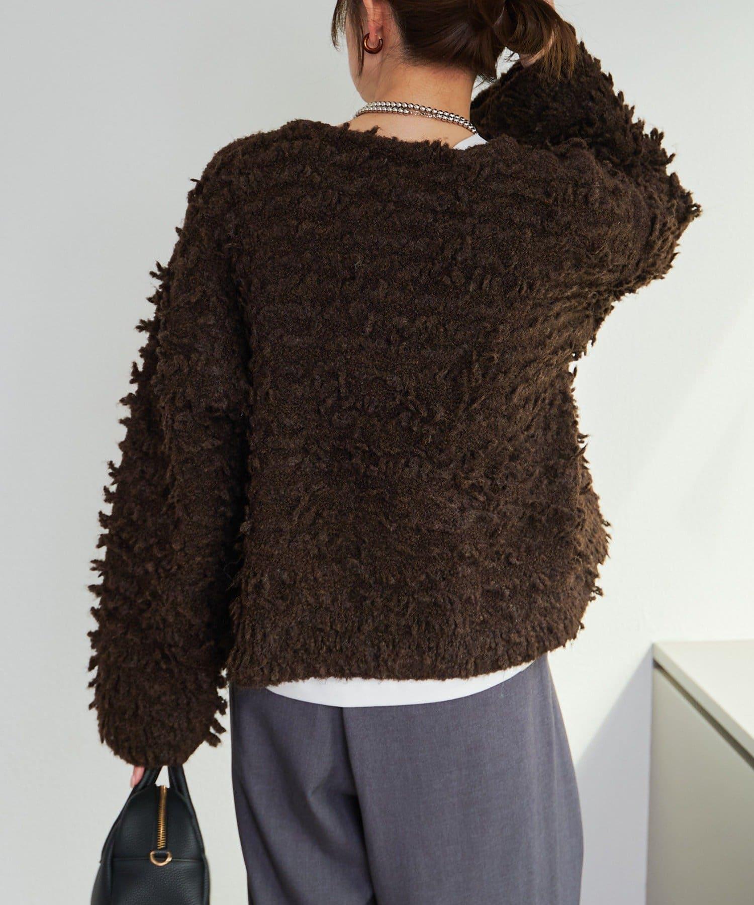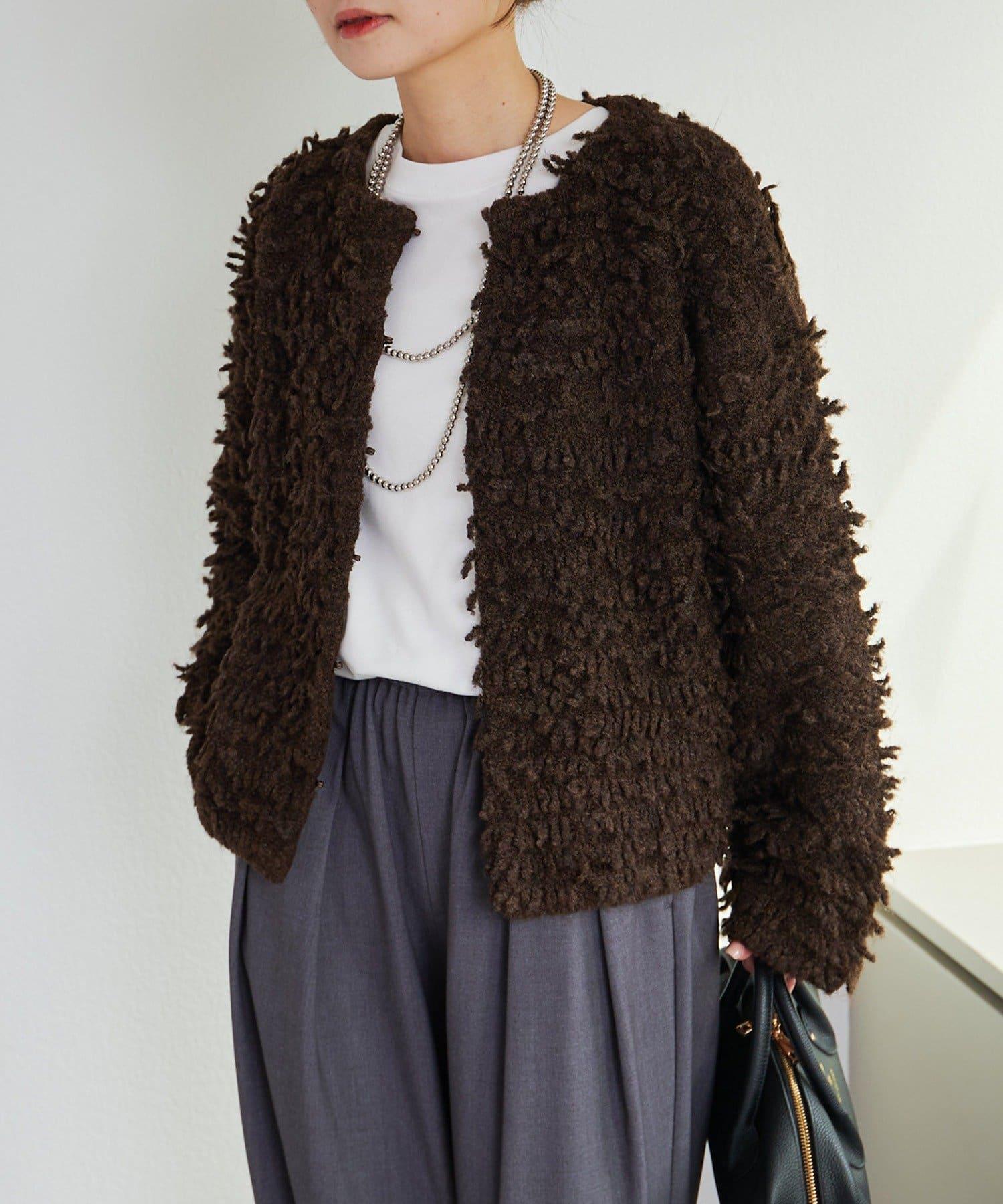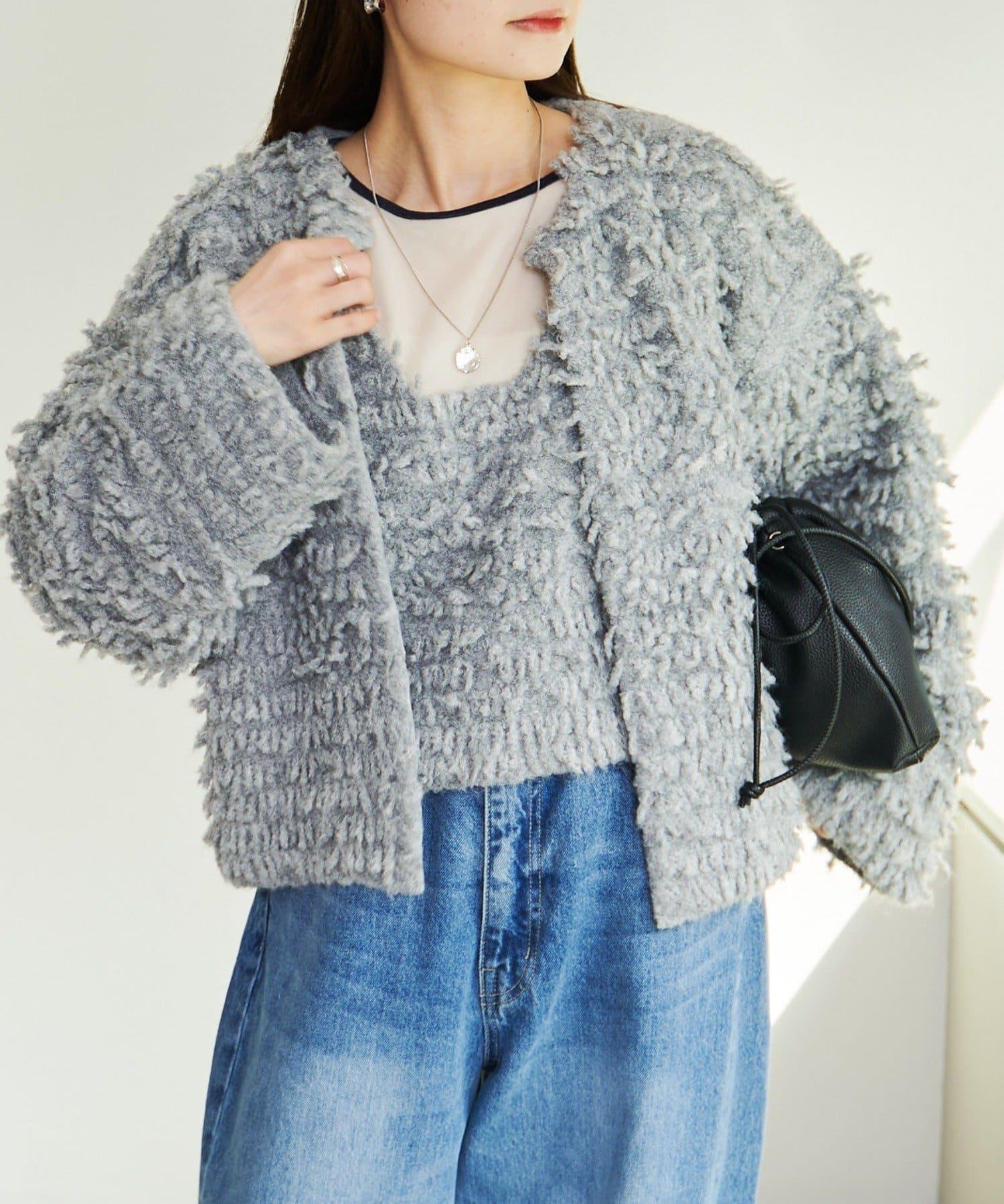 採用具有拉絲感的較粗紗線,蓬鬆的表面使其具有突出的存在感。