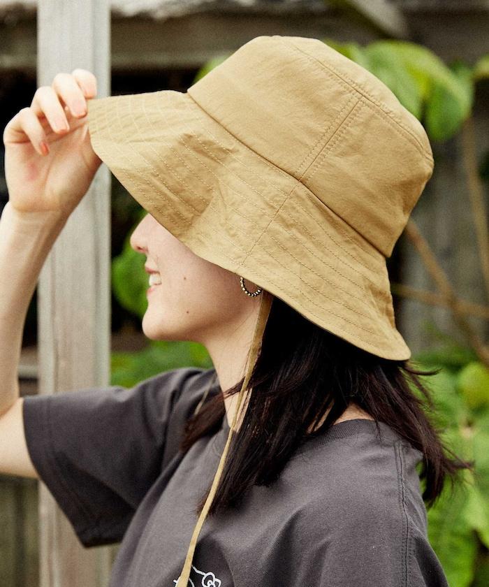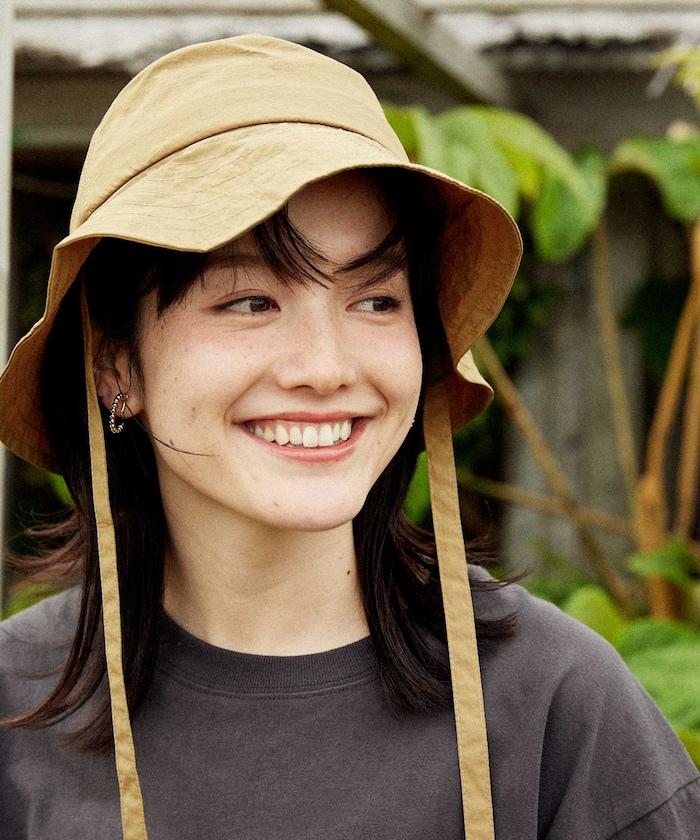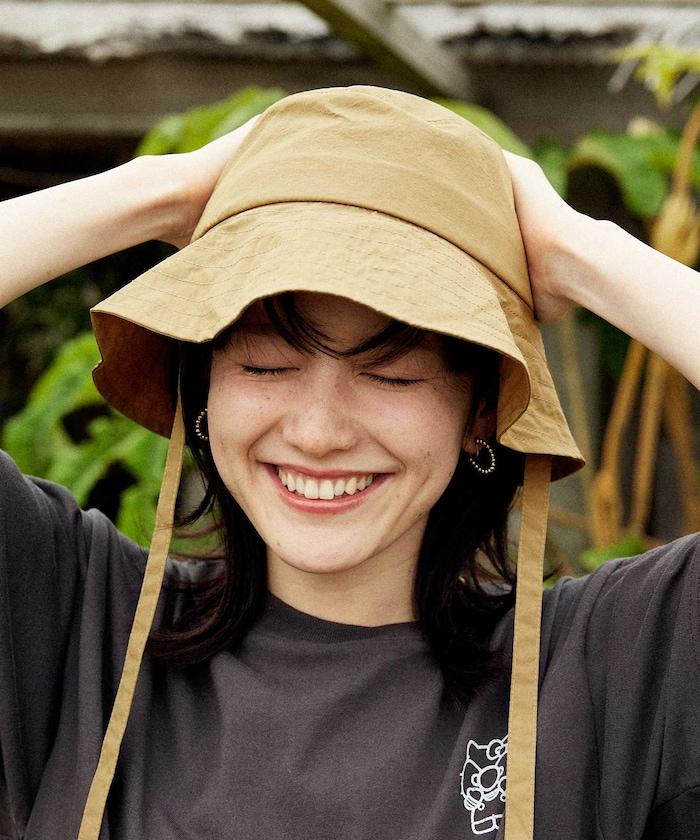帶繩的狩獵帽,具有很好的防紫外線功能。