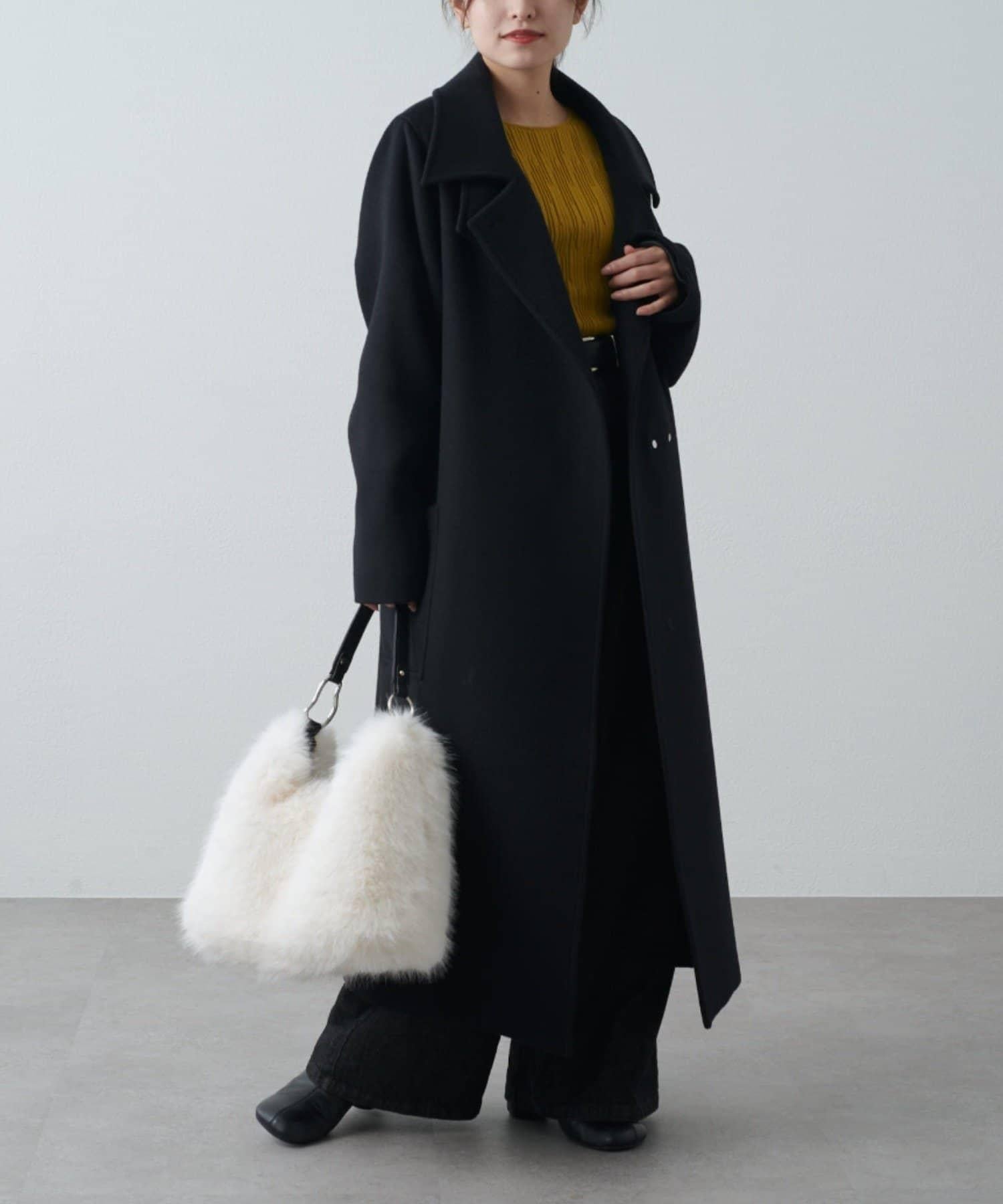 具有體積感和袖子感的長款大衣,可編織出超大、利落的尺寸感,具有其他地方所沒有的出色的奢華感。
