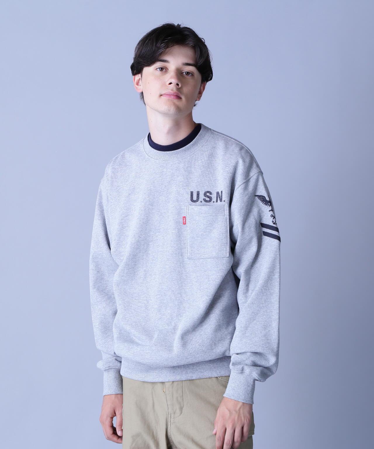 NAVAL CREWNECK SWEAT / AVIREX / AVIREX 產品詳情 - 舒適的100%純棉材質針織衫 - AVIREX流行的美國海軍圖案 - 白色,深藍色,灰色該品牌成立於 1975 年,當時是美國空軍的承包商,通過提供飛行夾克而知名度大增。Avirex 源自軍方,以功能性設計所散發出的獨特美感為基礎。其獨特的外觀曾出現在電影 "諜影重重 "中。