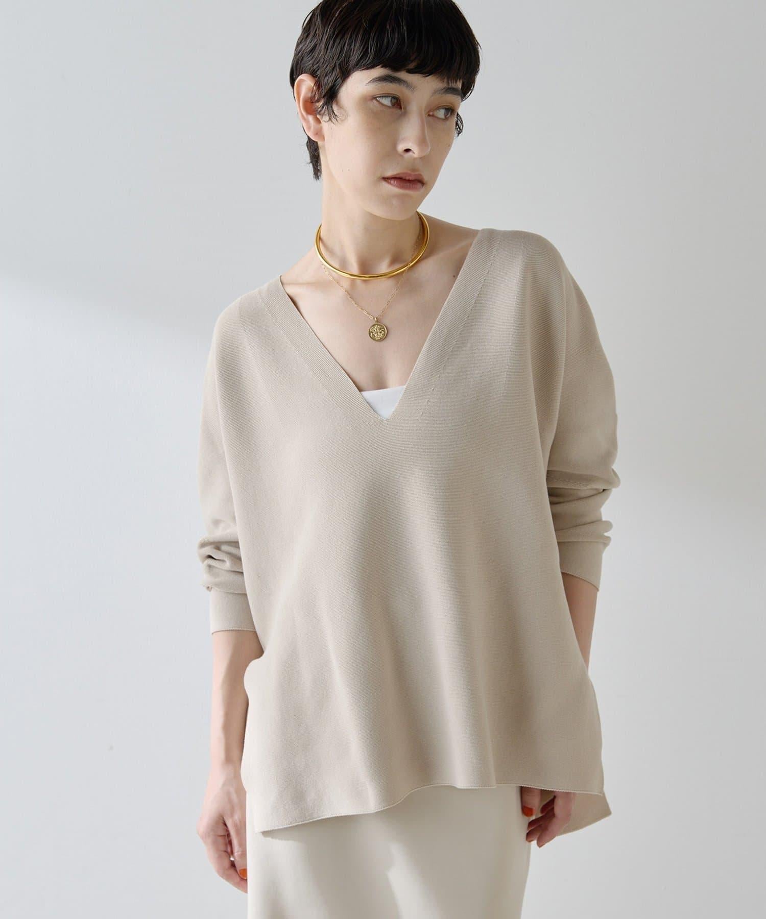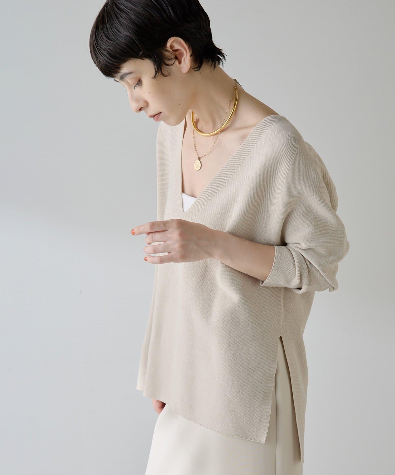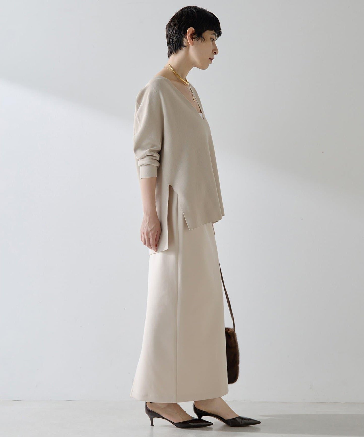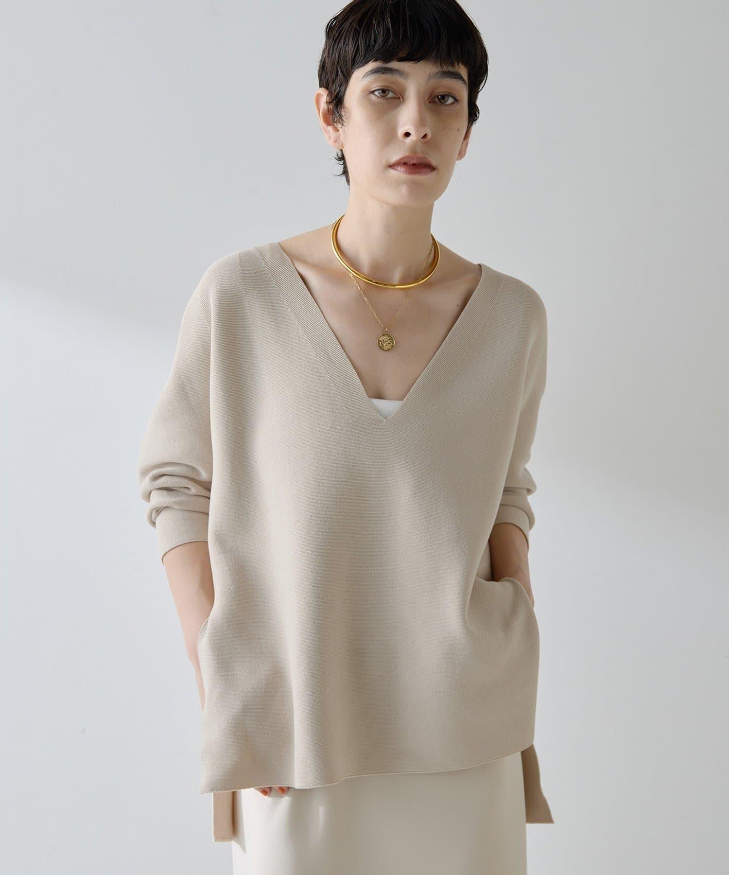 簡約深 V 領針織衫,增添利落氣質。