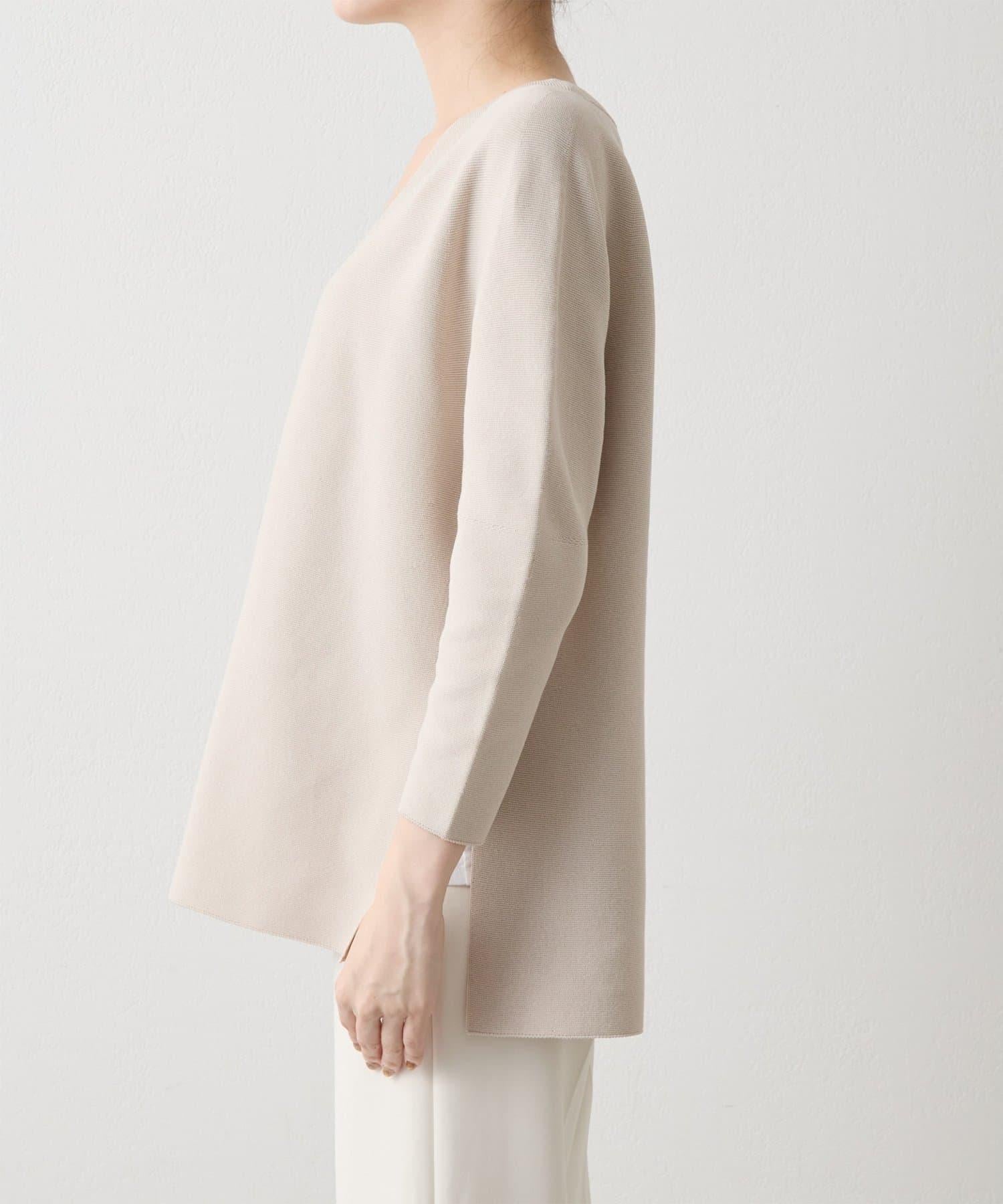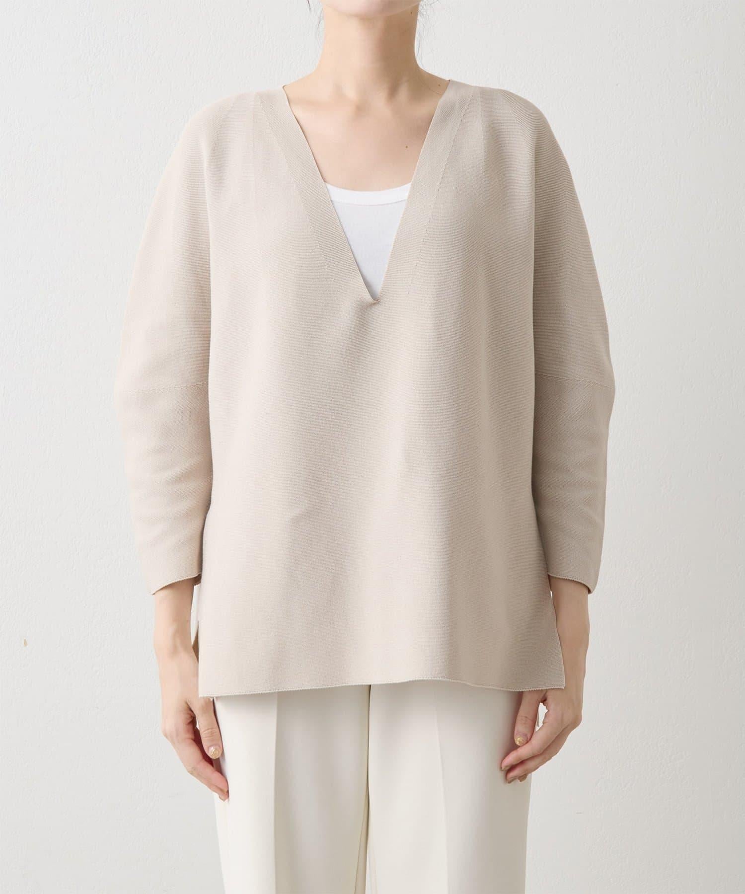 這款針織套頭衫採用深 V 領設計。