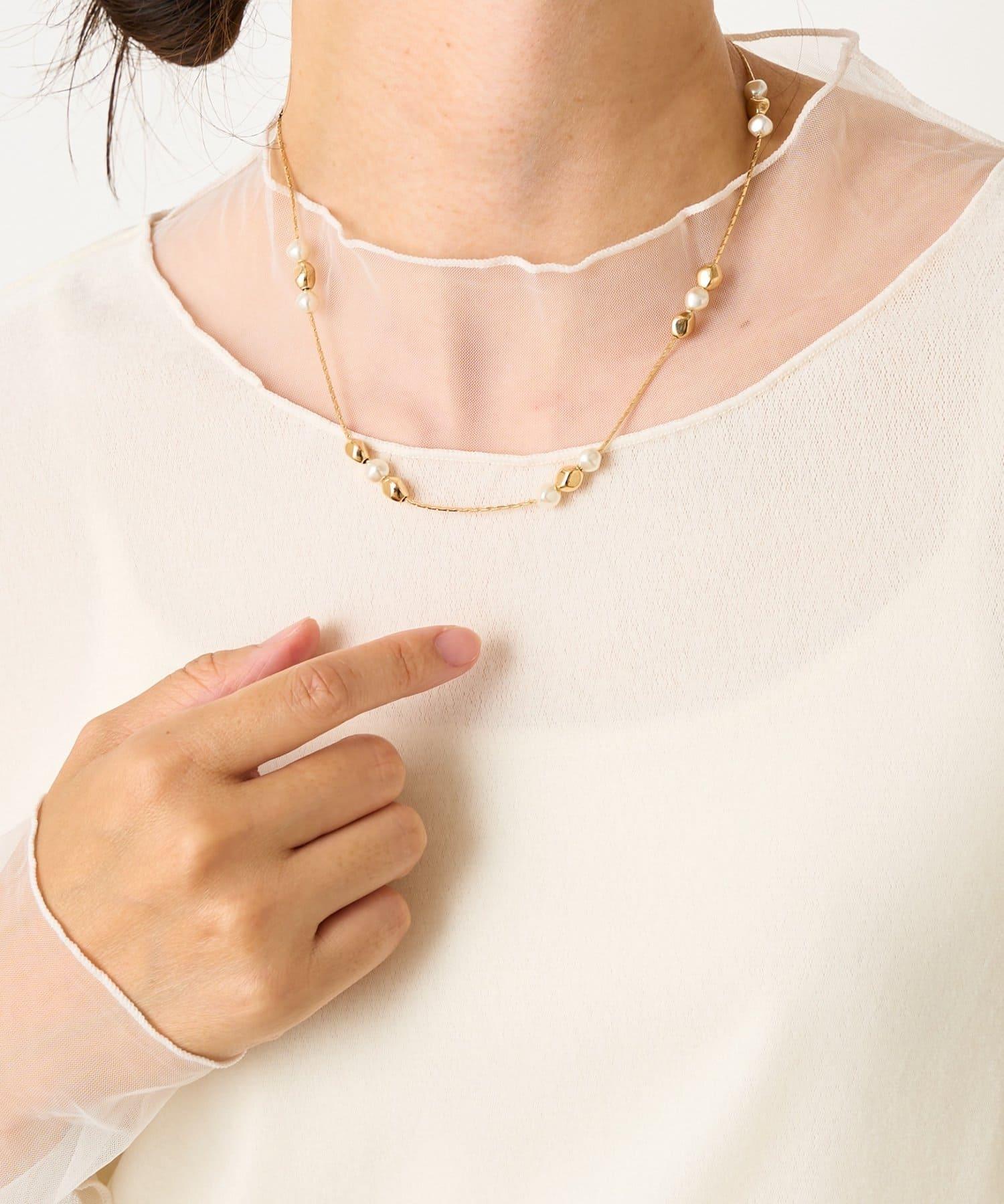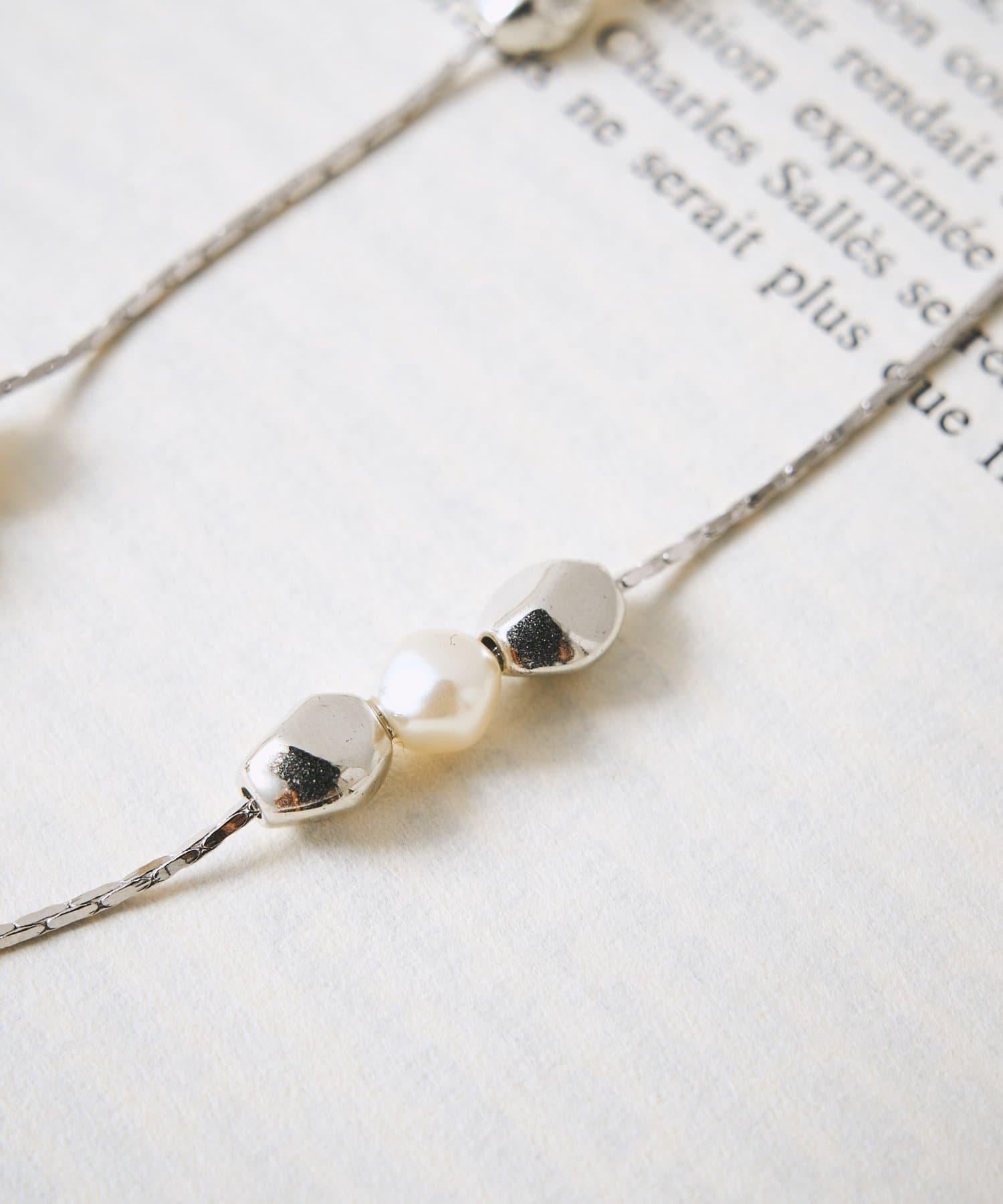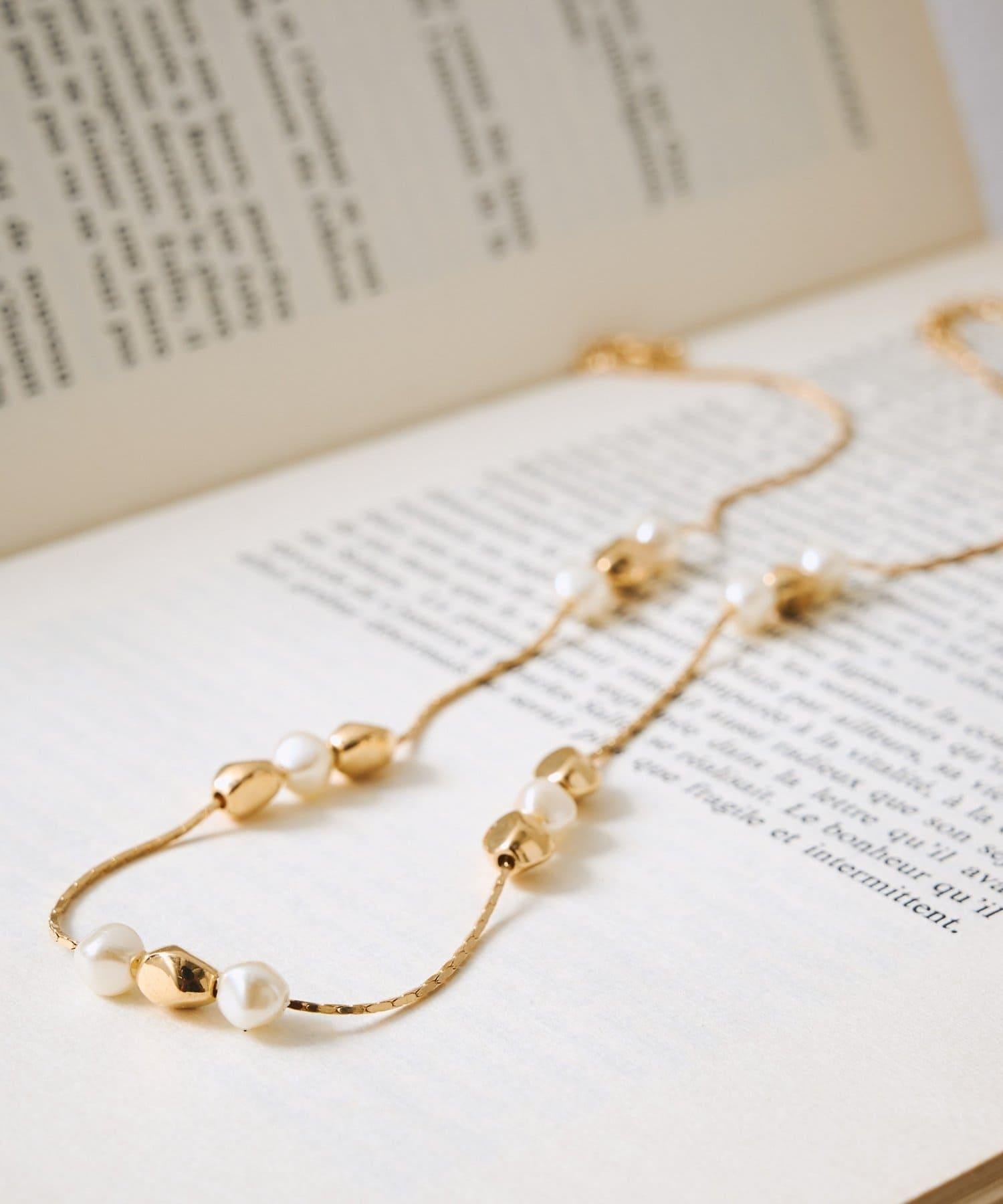 這是一款精緻的成人項鍊,上面散落著珍珠。